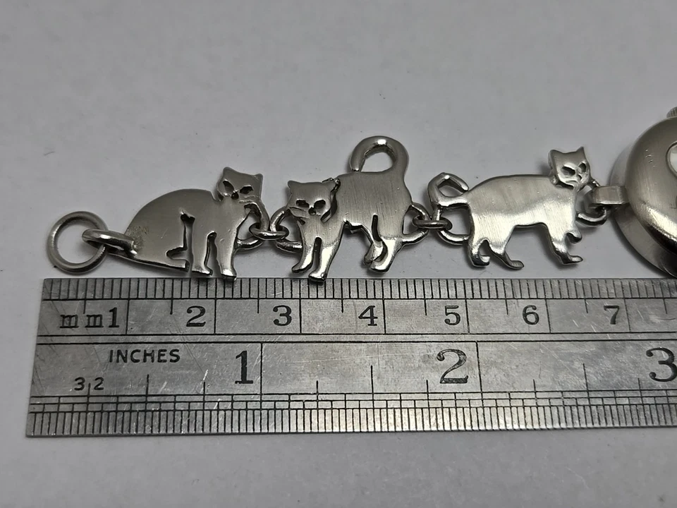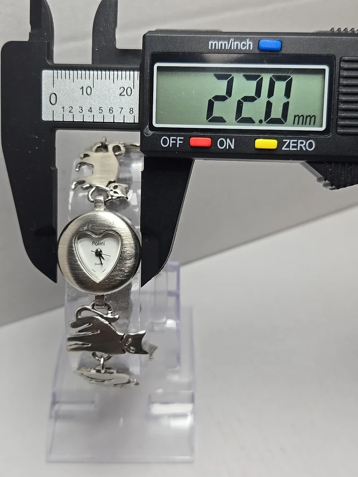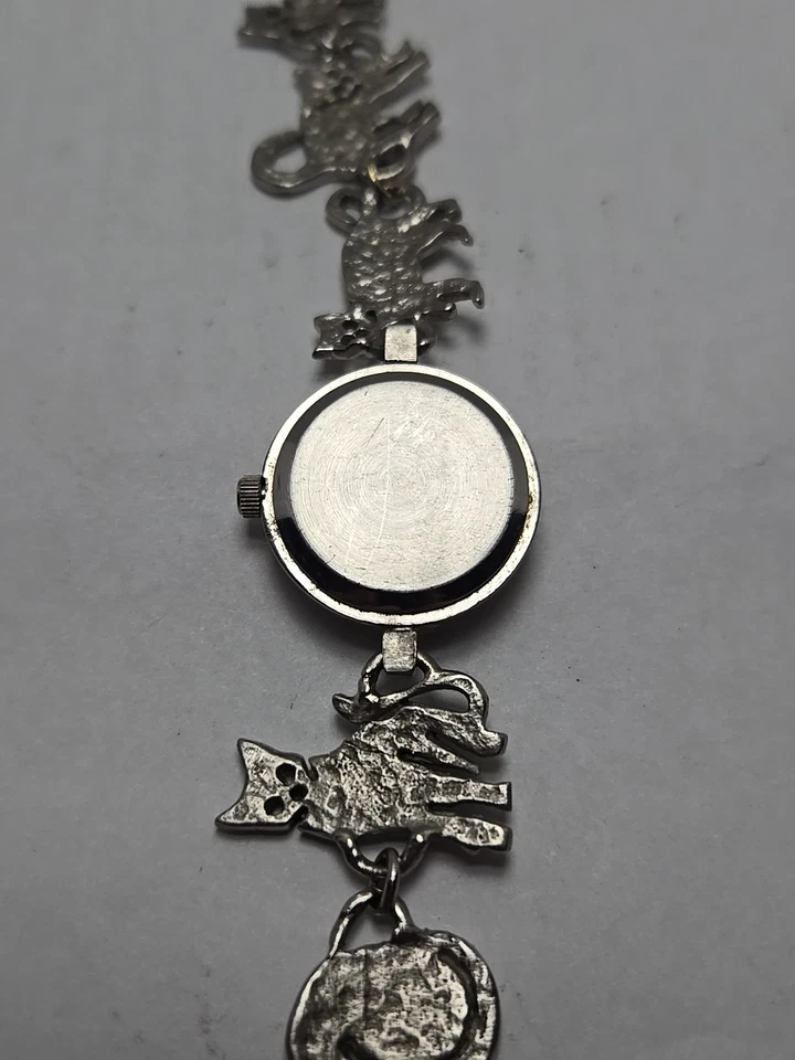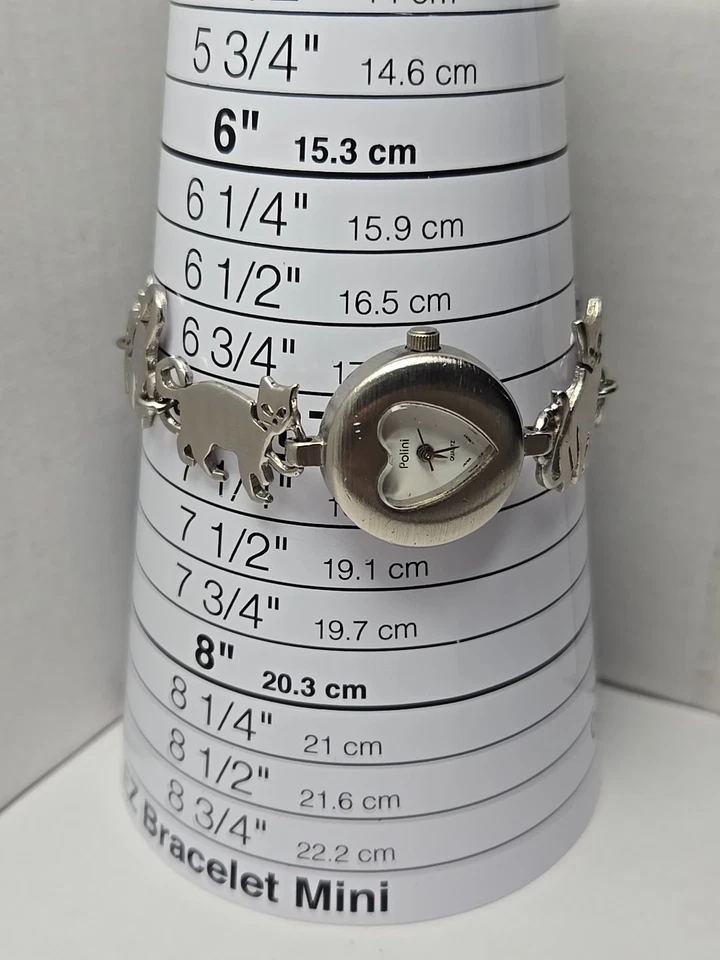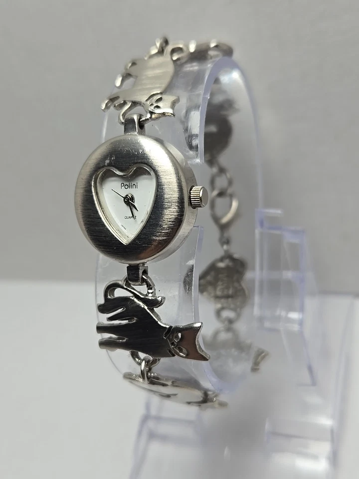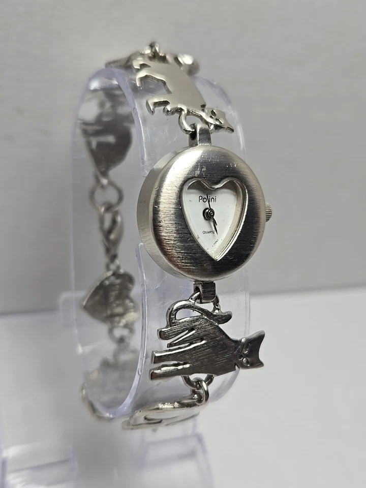 Womens Polini Heart Cats Watch Silver Tone Charm Band Bracelet New Battery