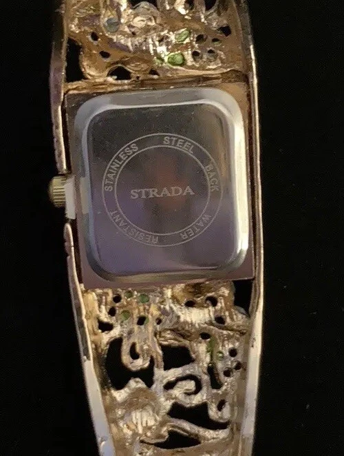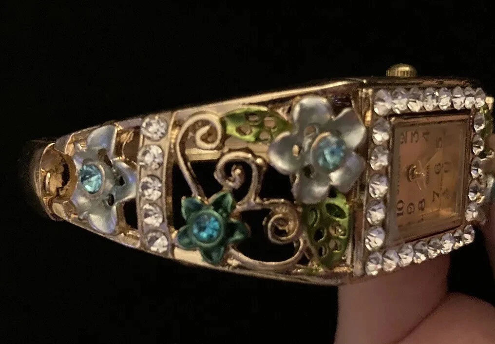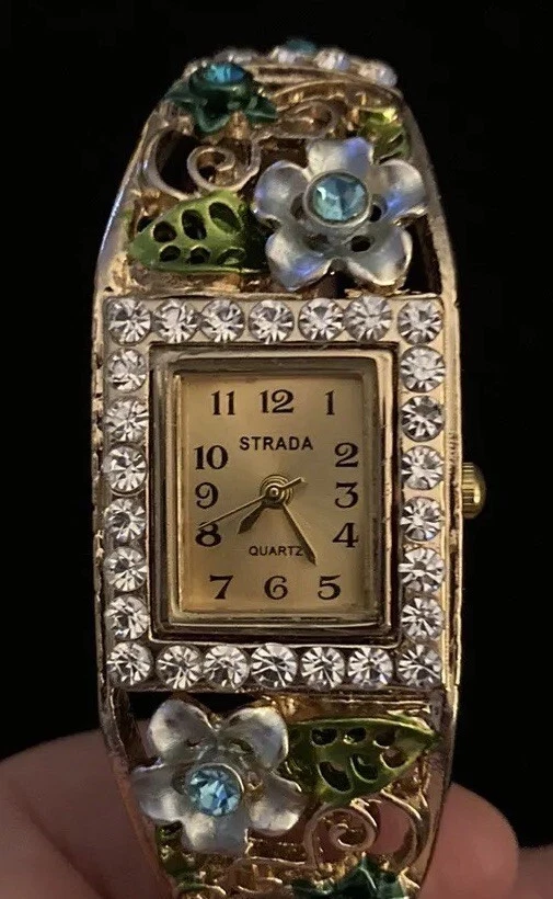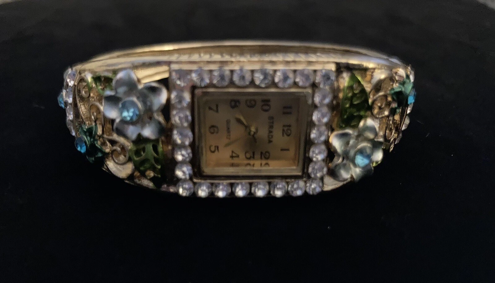 Gorgeous Gold Tone and Floral Strada Watch Bracelet Cuff
