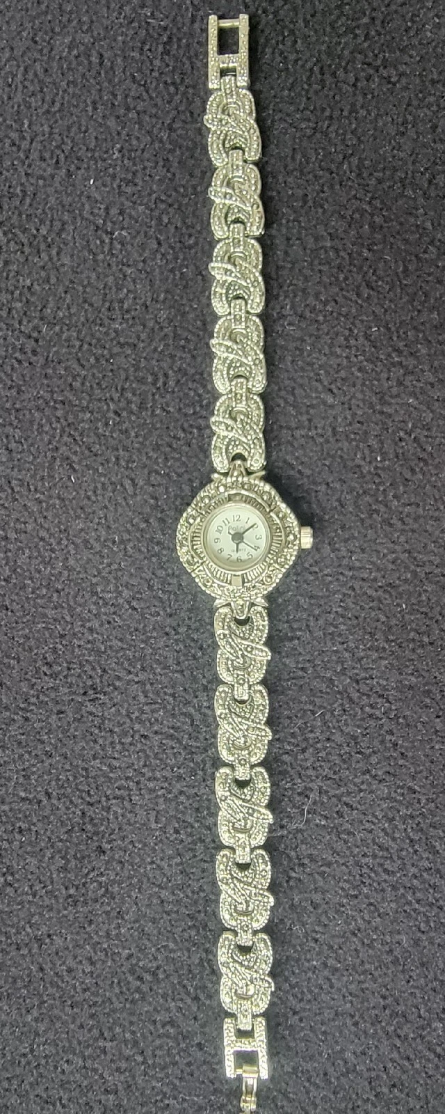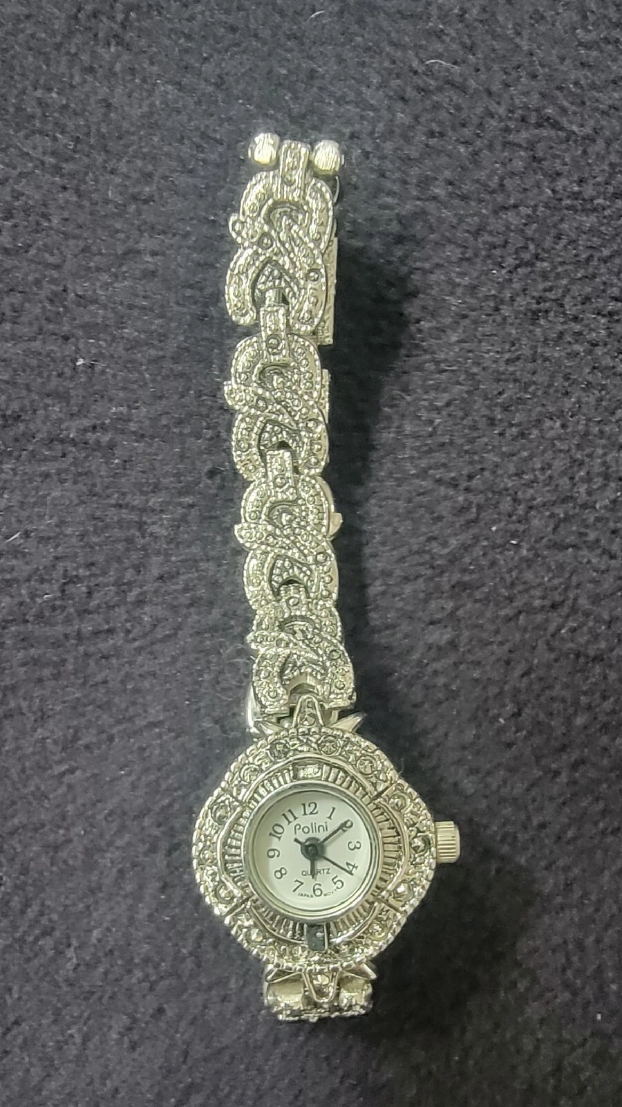 Vintage Polini Ladies Quartz Marcasite Art Deco Watch