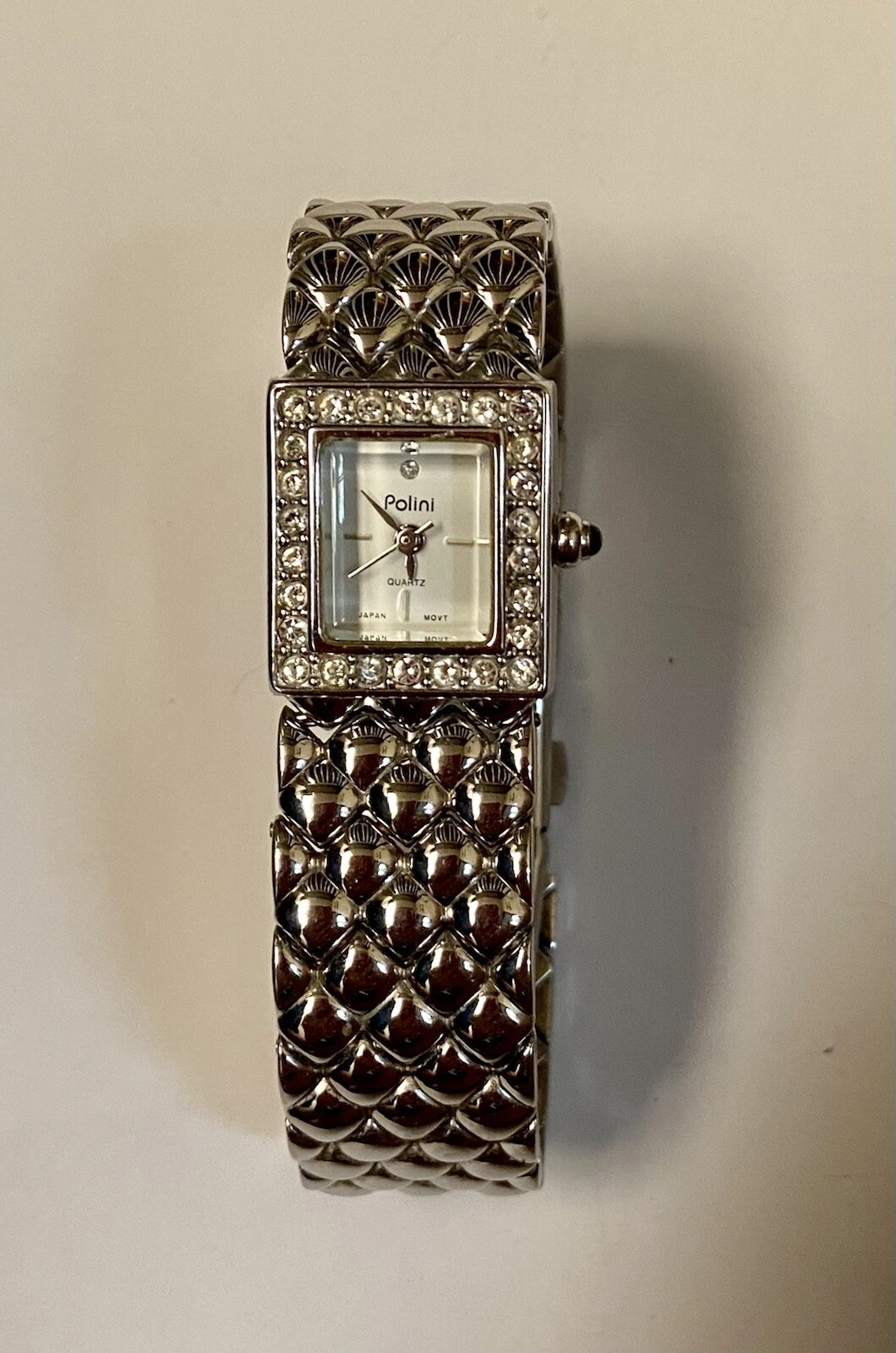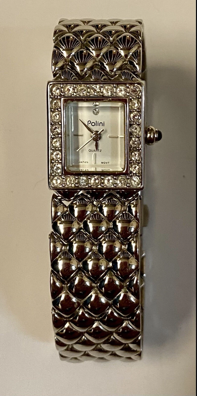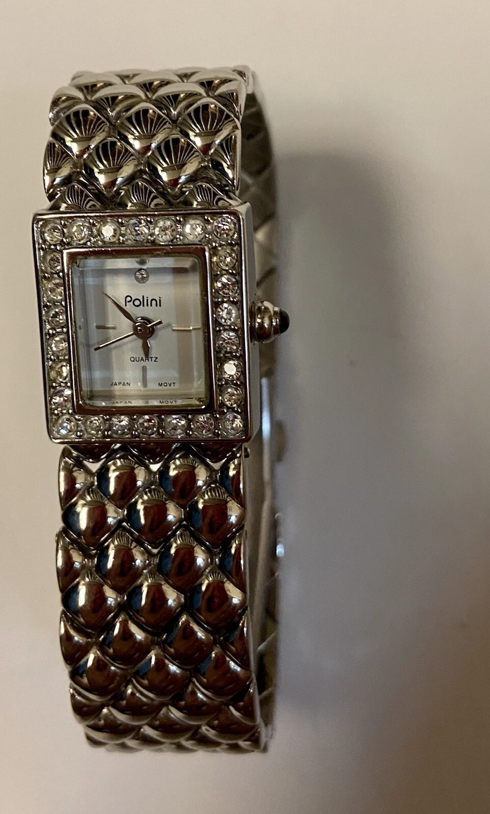 POLINI Ladies Watch Crystal Iced Silver Band New Battery Fits To 7-1/2” Wrists