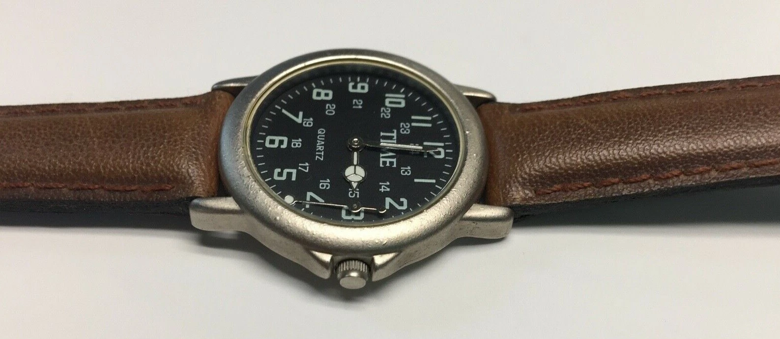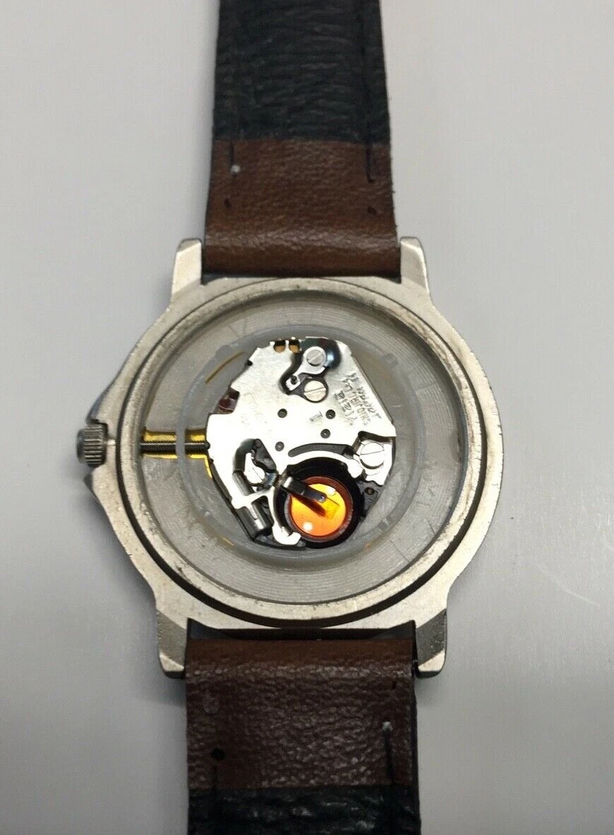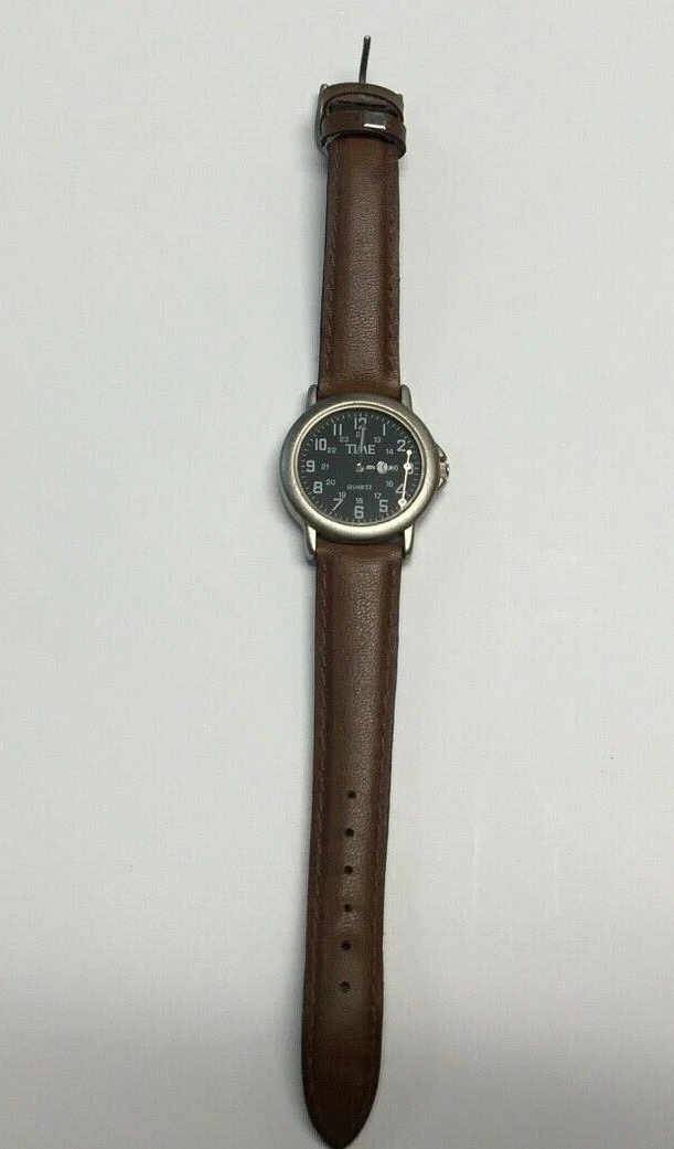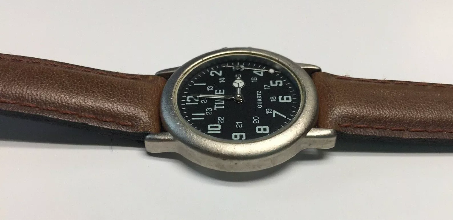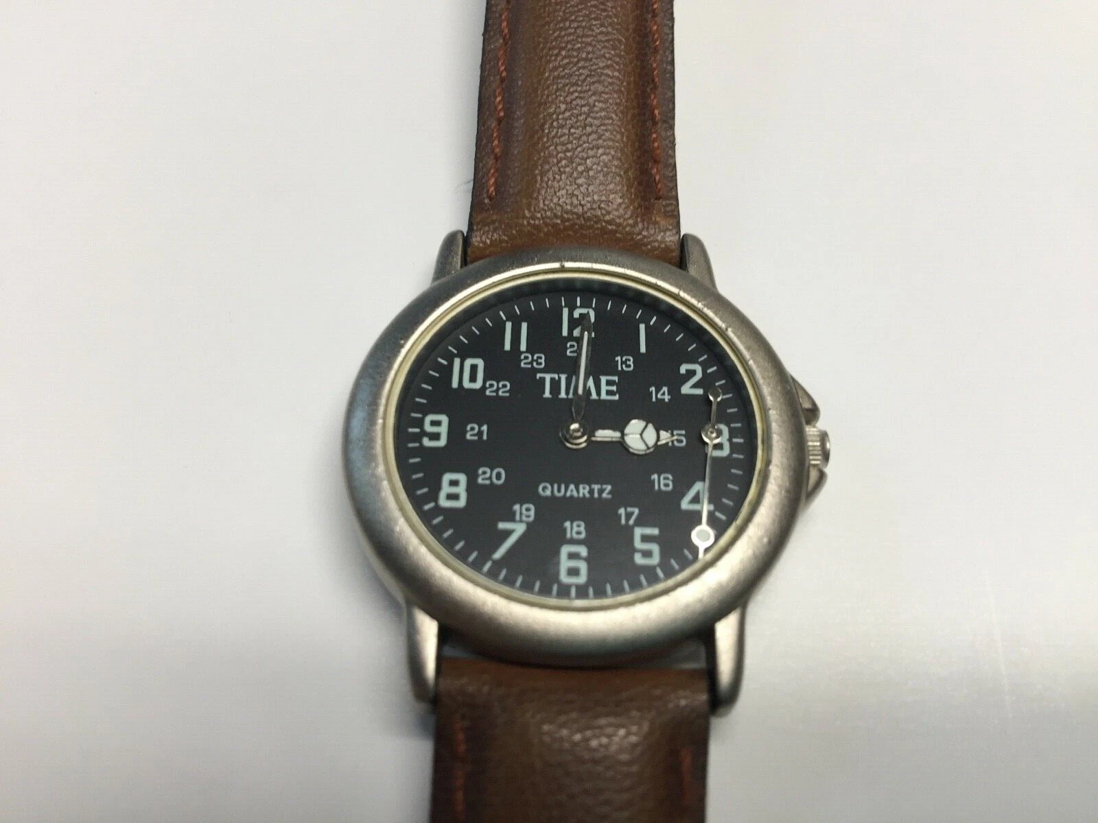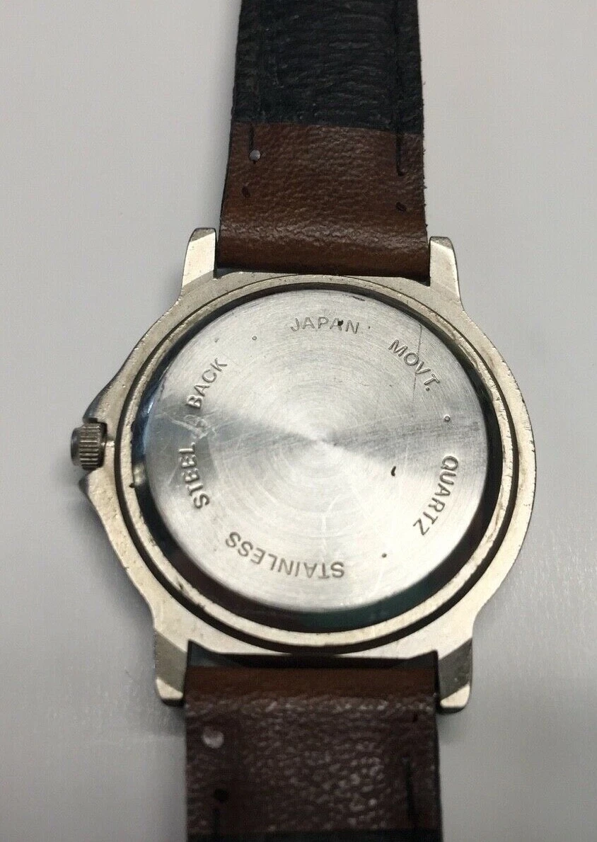 TIME QUARTS WATCH JAPAN MOVT. STAINLESS STEEL LEATHER BAND AS IS PARTS REPAIR