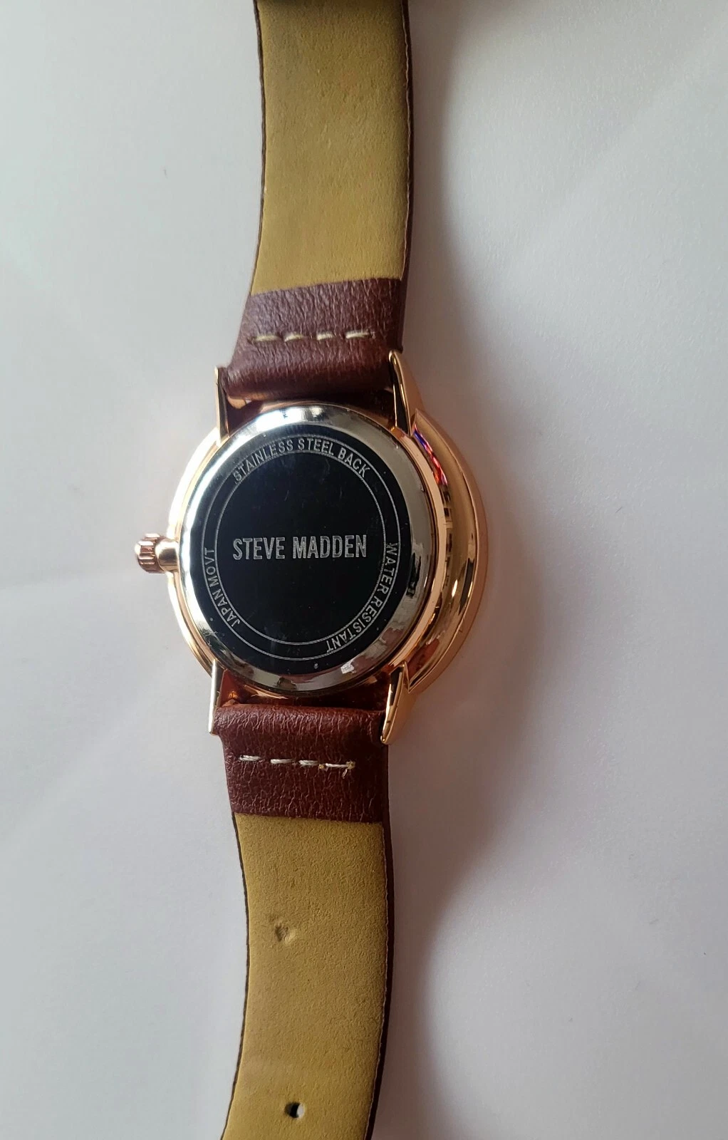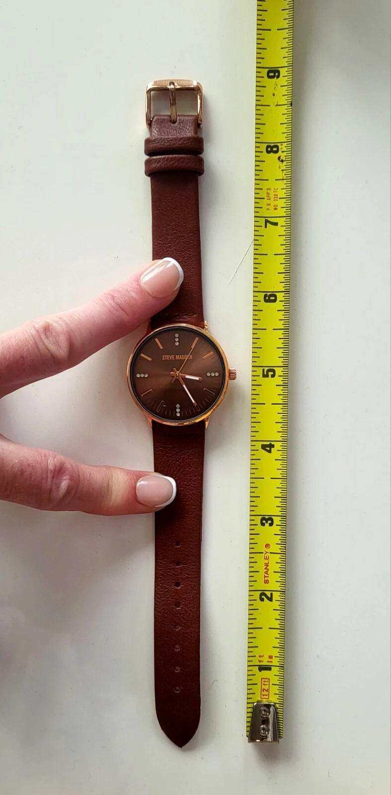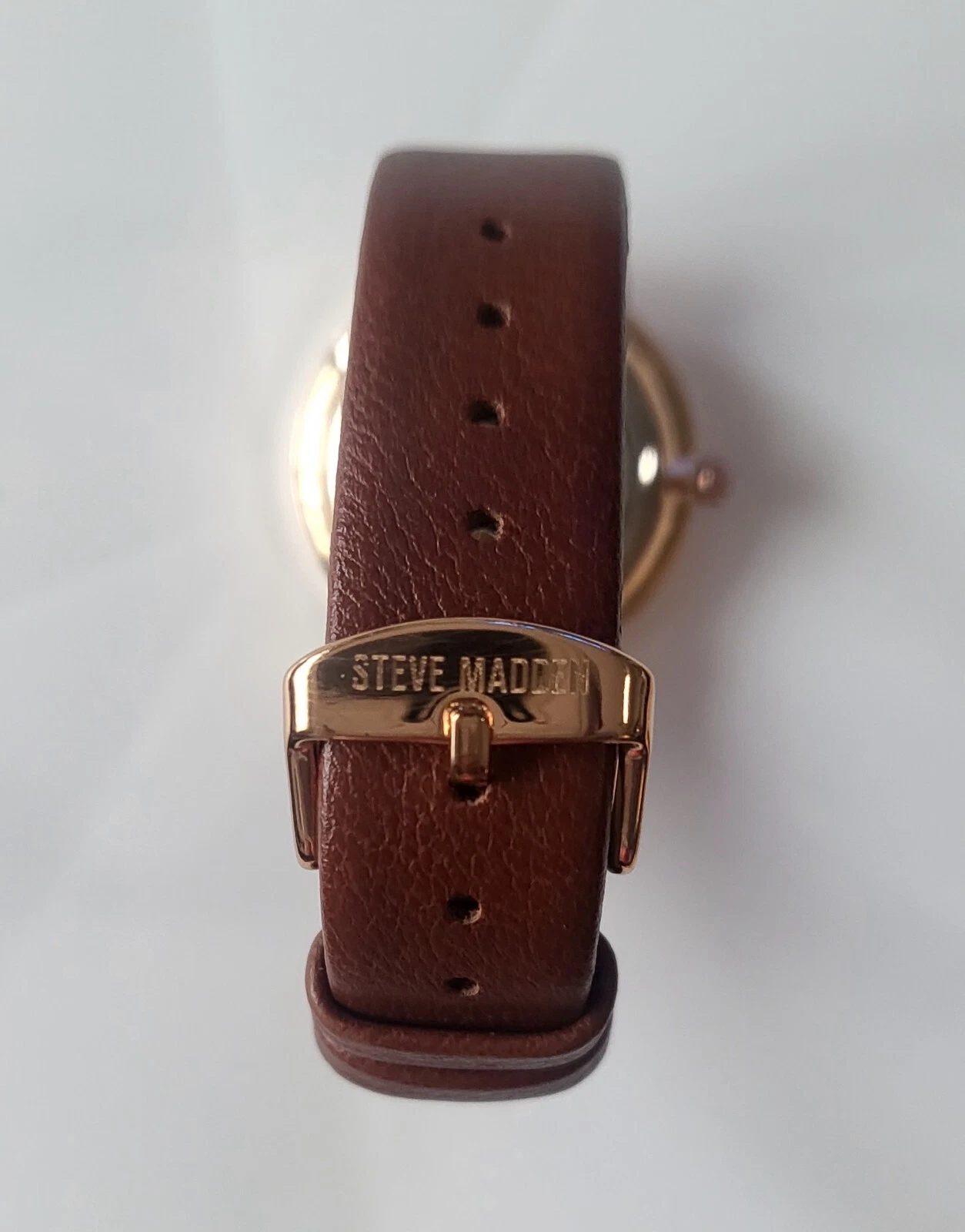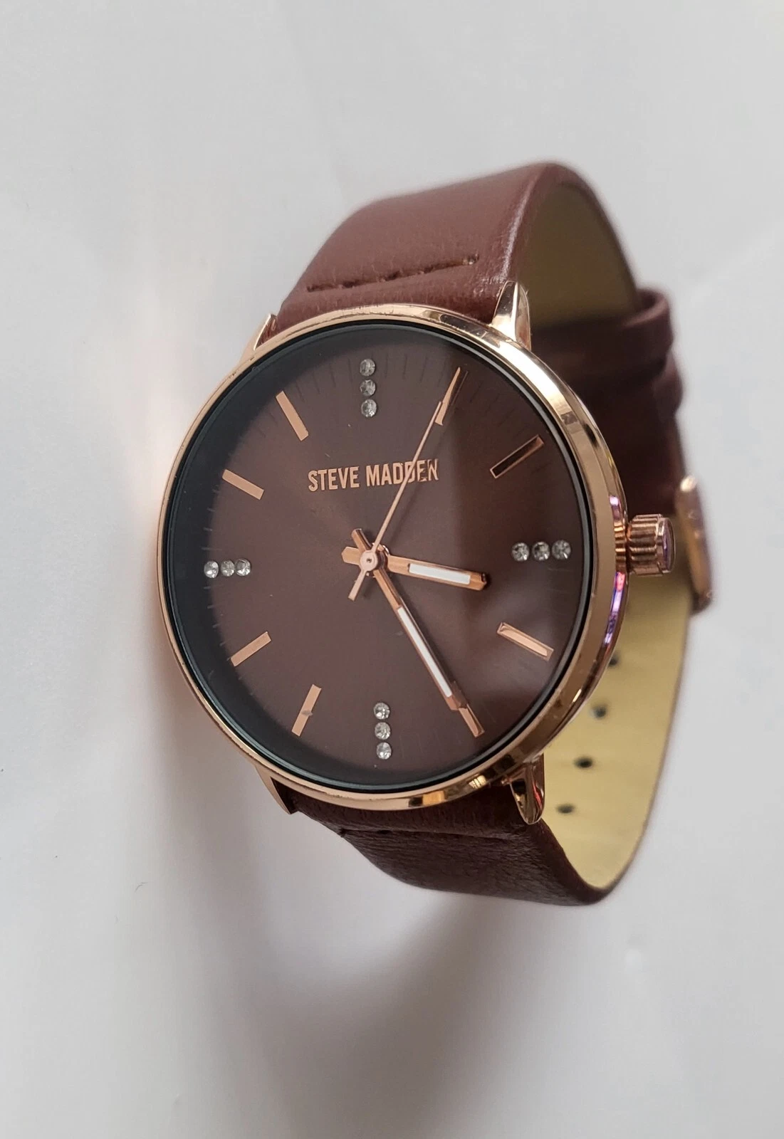 Steve Madden Women's Quartz Watch Rose Gold Case Brown Band