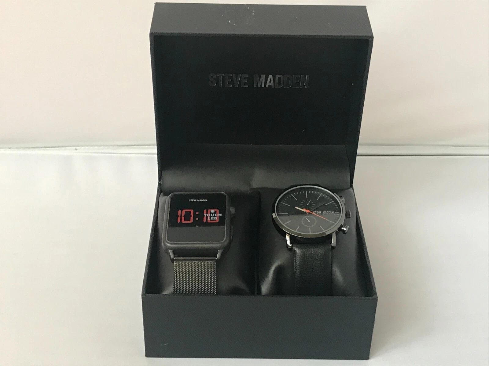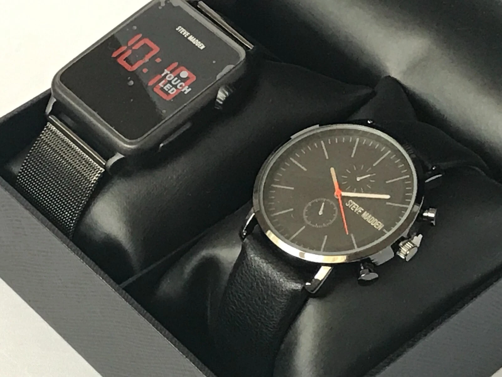 Steve Madden Men's Black 2 style  Analog and Digital Watch set