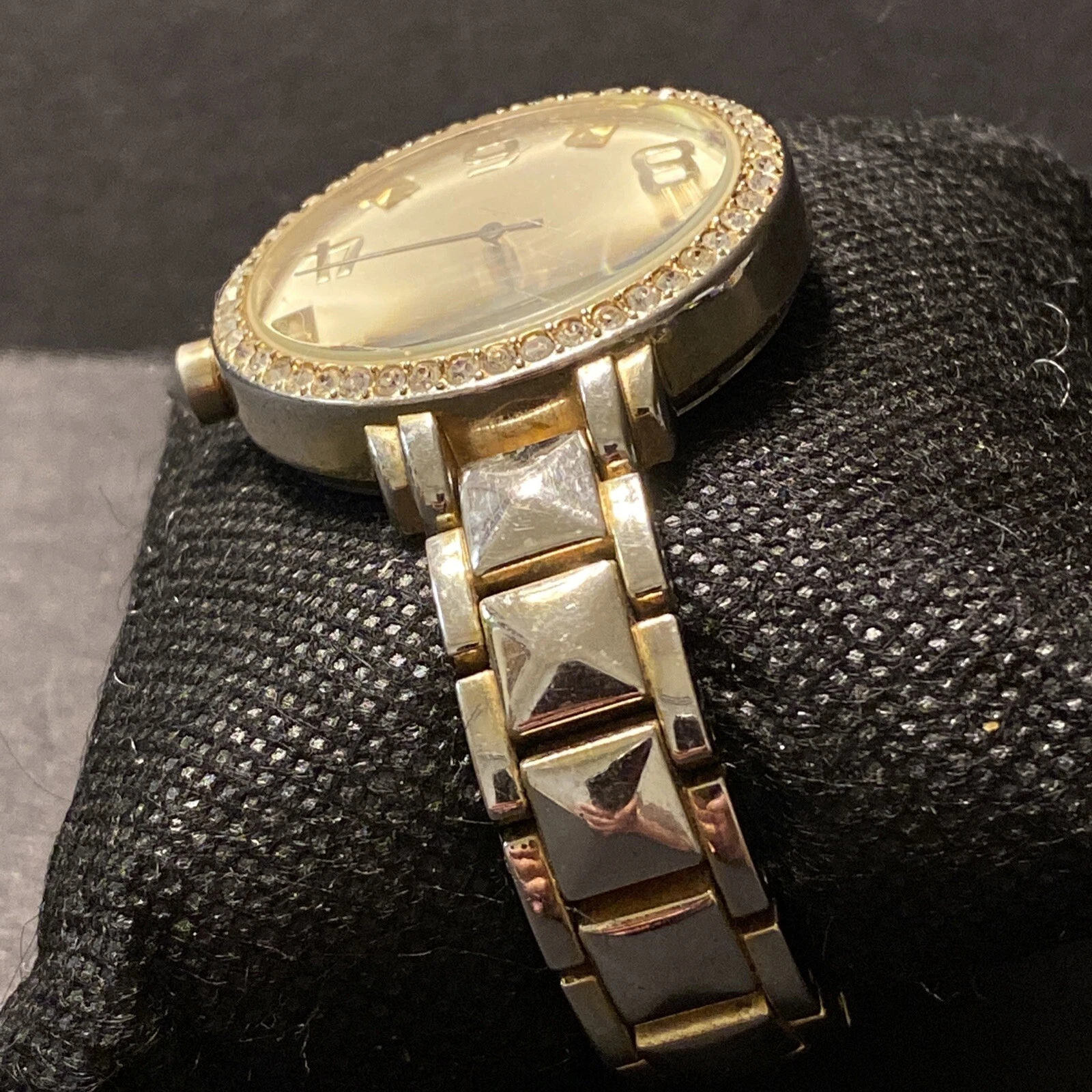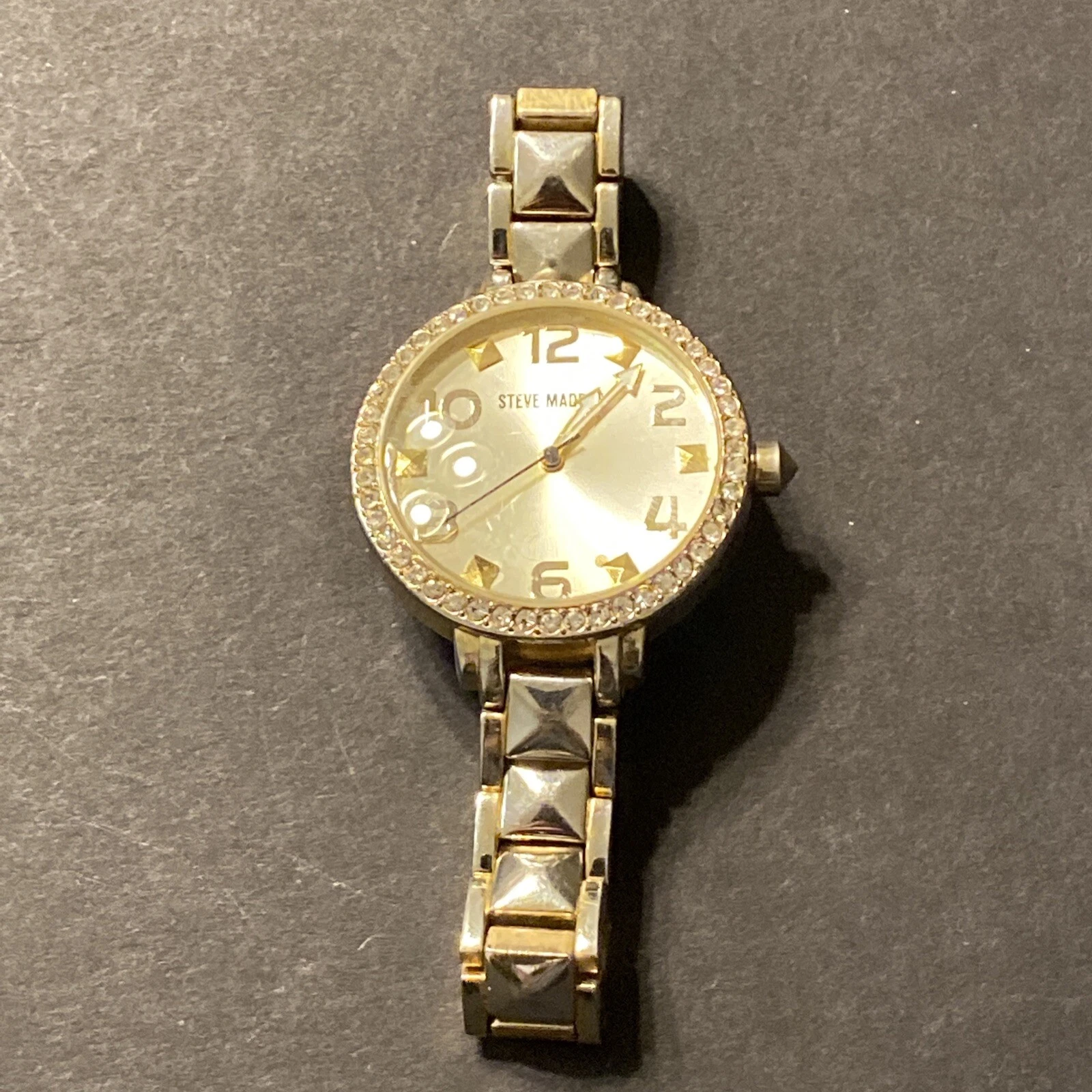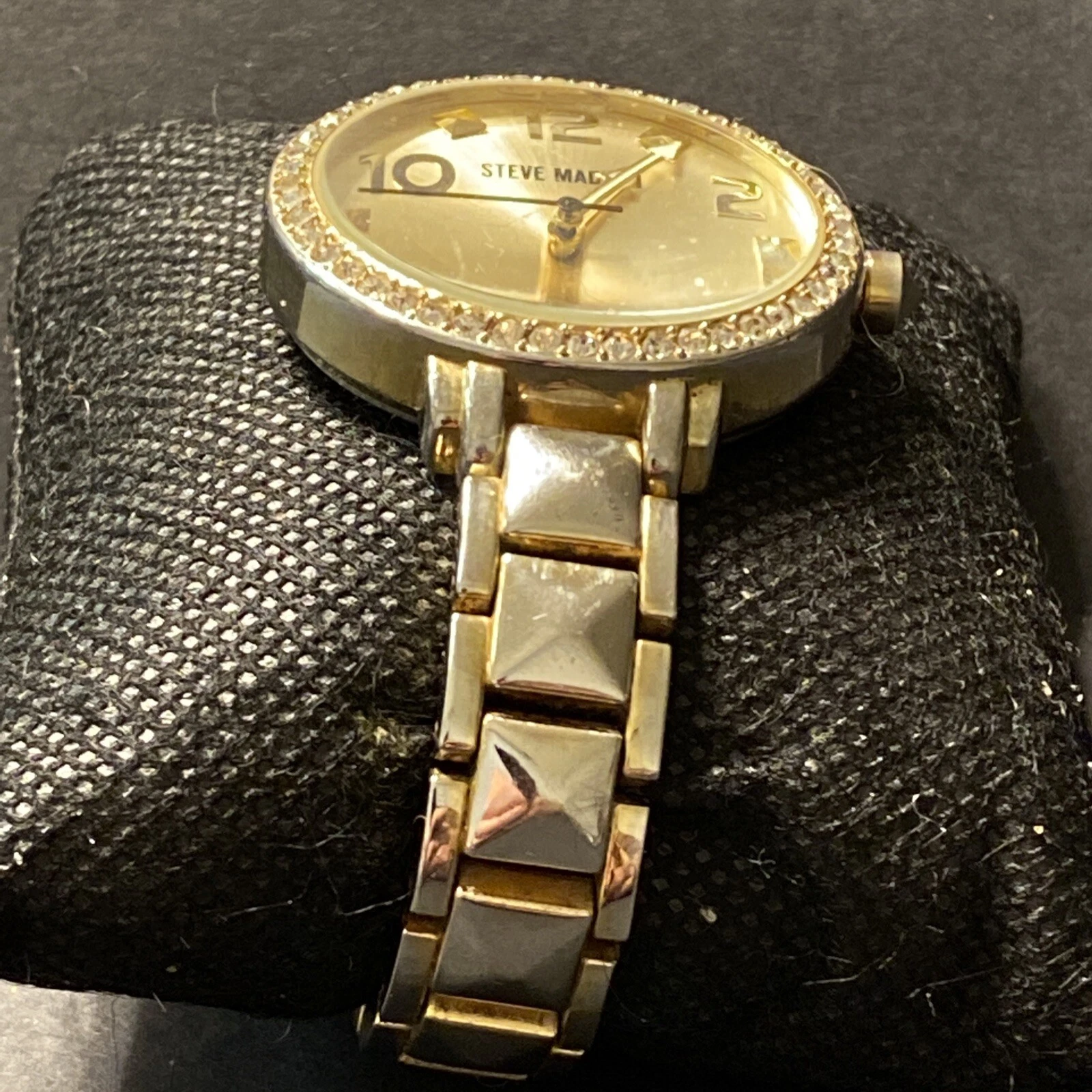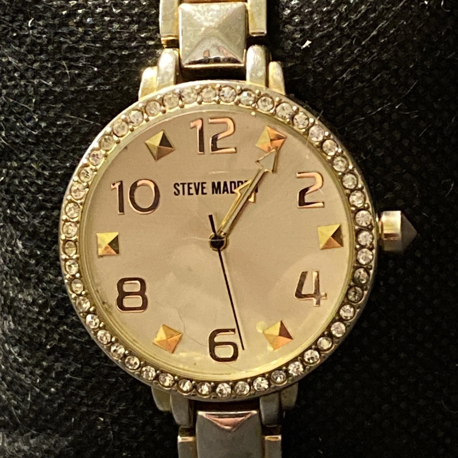 Steve Madden Ladies Wrist Watch Rhinestone Face White Gold Tone Stainless Steel