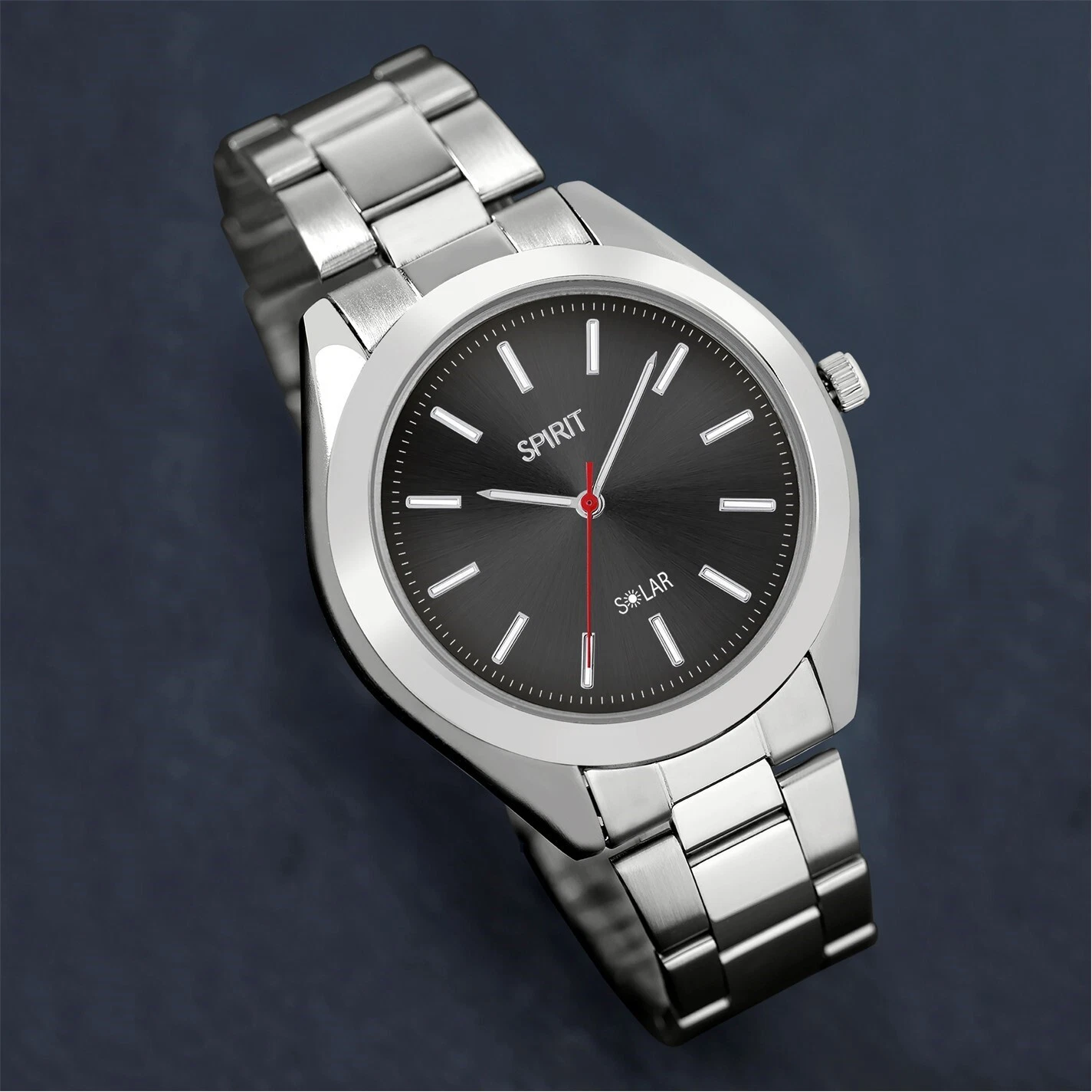Spirit Gents Silver Bracelet Black Sunray Dial Watch Analogue Quartz