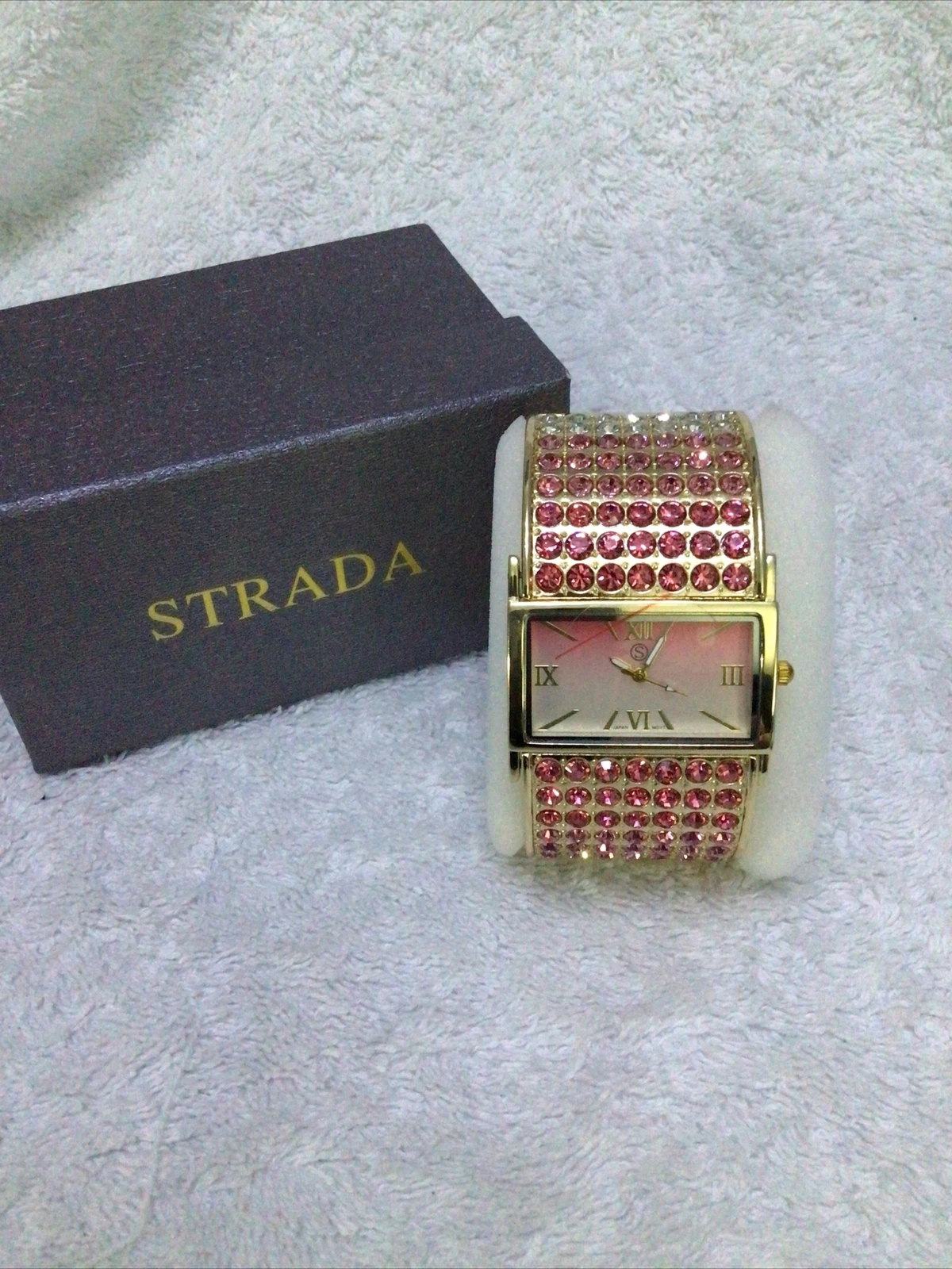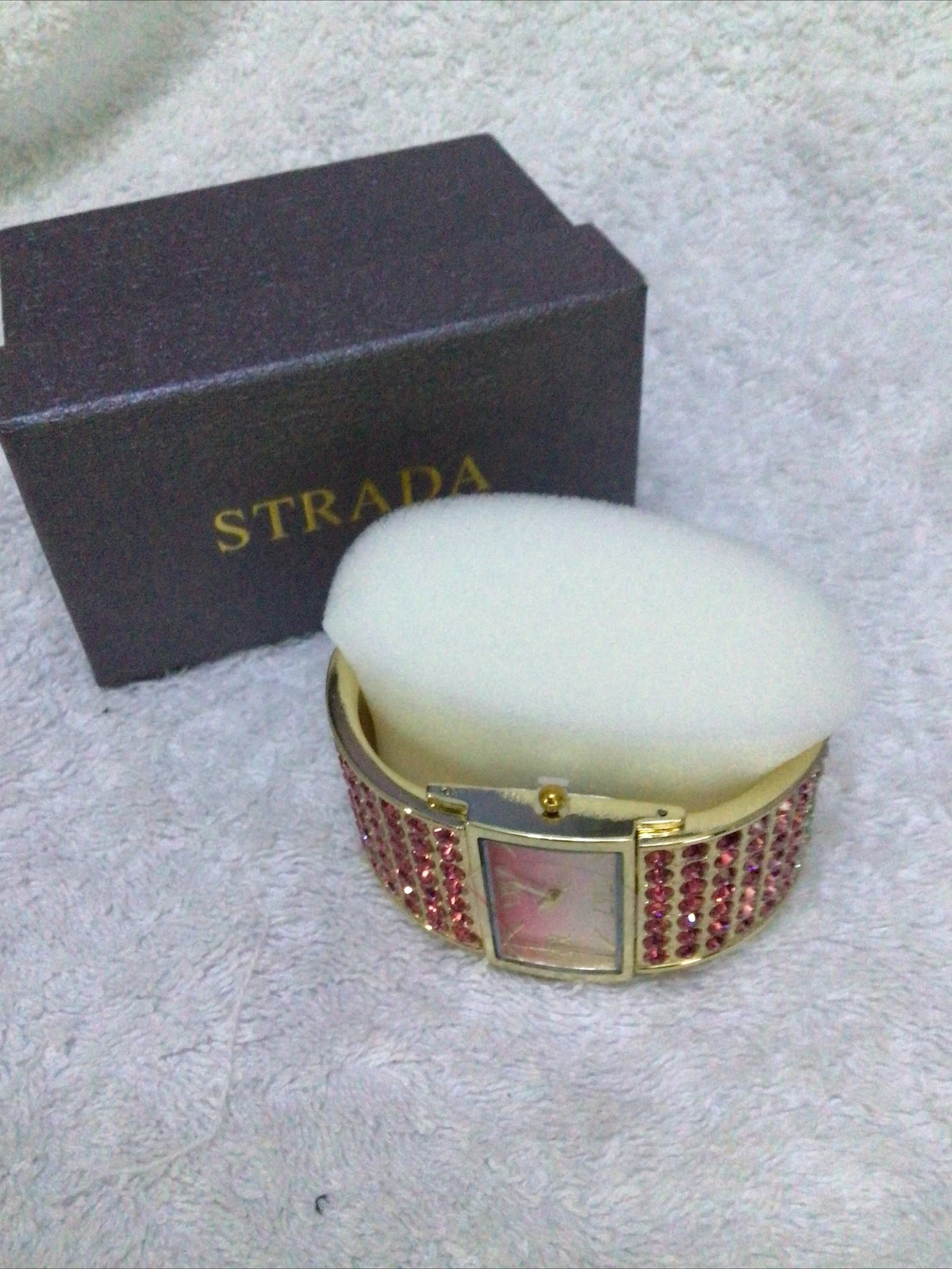 Strada Japanese Movement Pink Crystal Bangle Watch New Size 6.5/7”