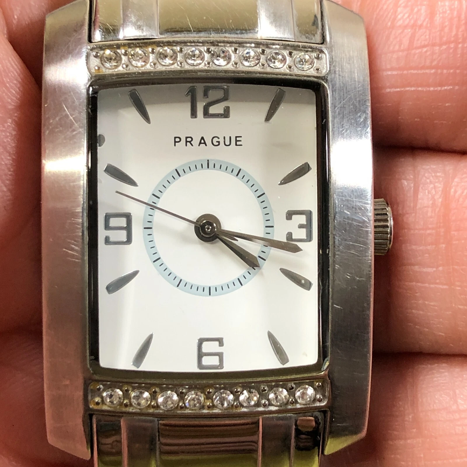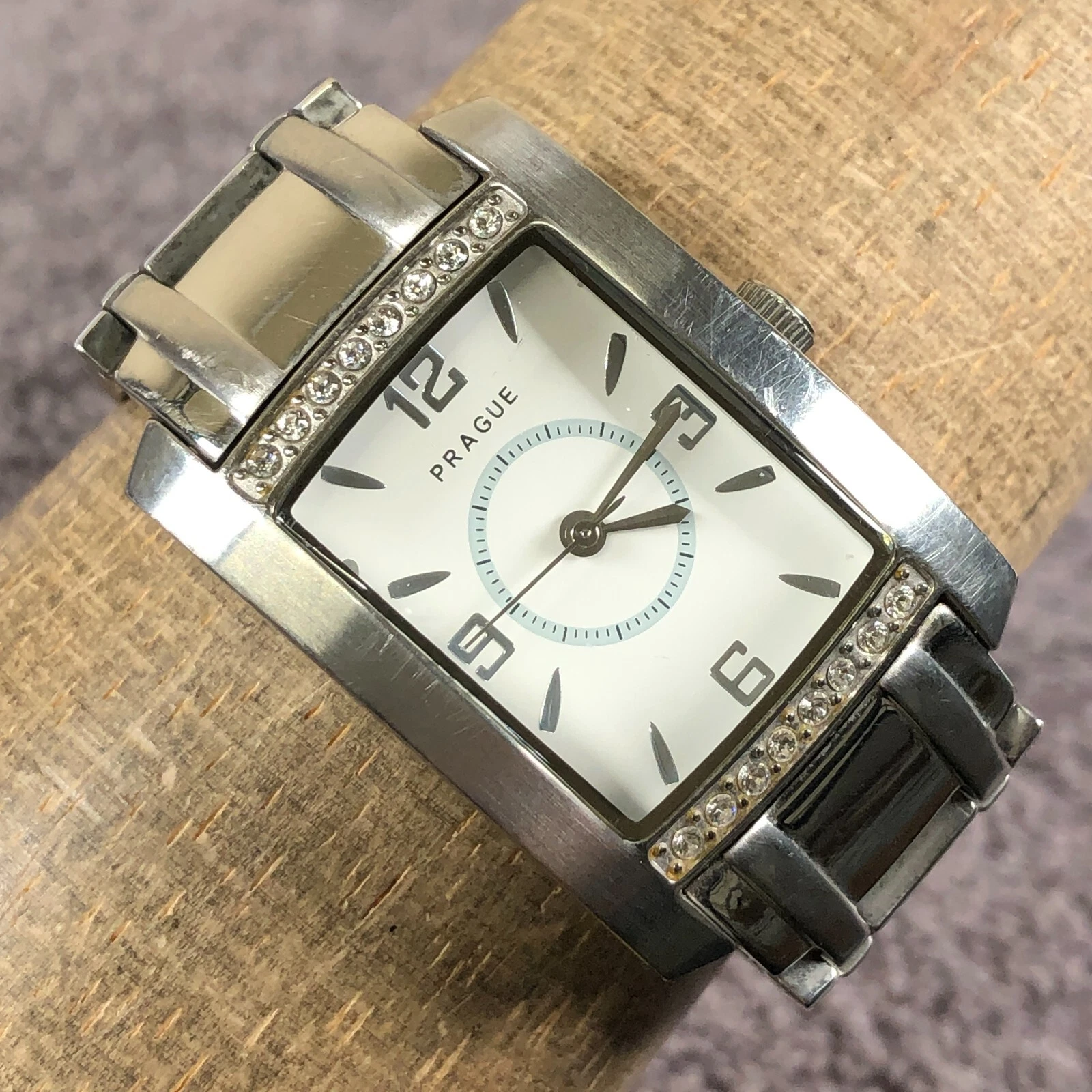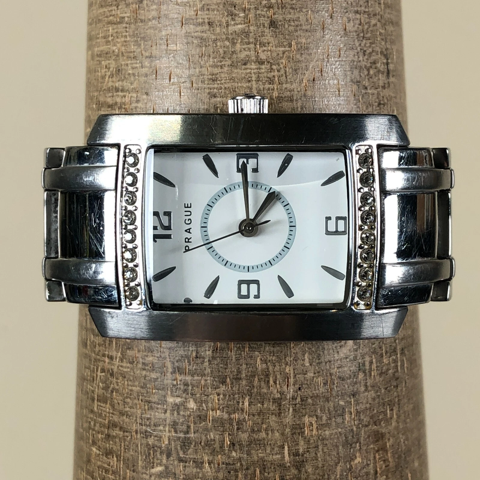 Prague Women D5778-02B Dress Diamond Bezel Silver Tone 25mm Quartz Analog Watch
