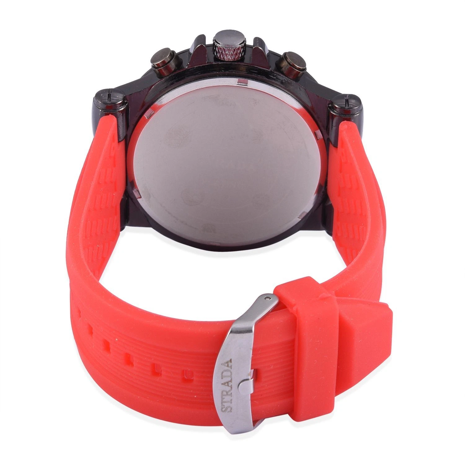 STRADA Japanese Movement Watch w/Red Silicone Band & Stainless Steel Back W028