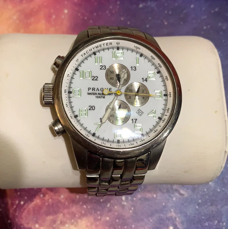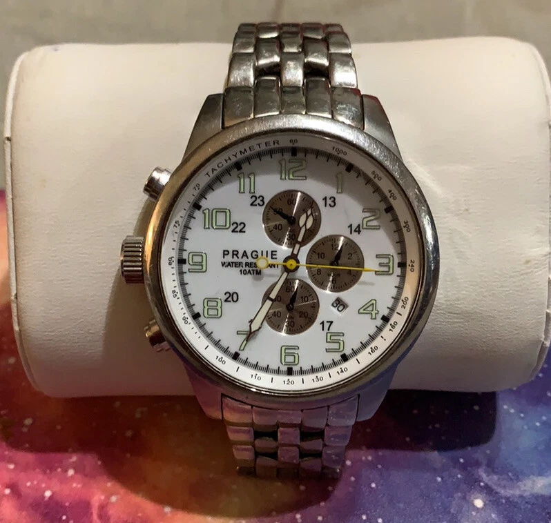 PRAGUE Tachymeter Men’s Watch, Water Resistance, Stainless Steel
