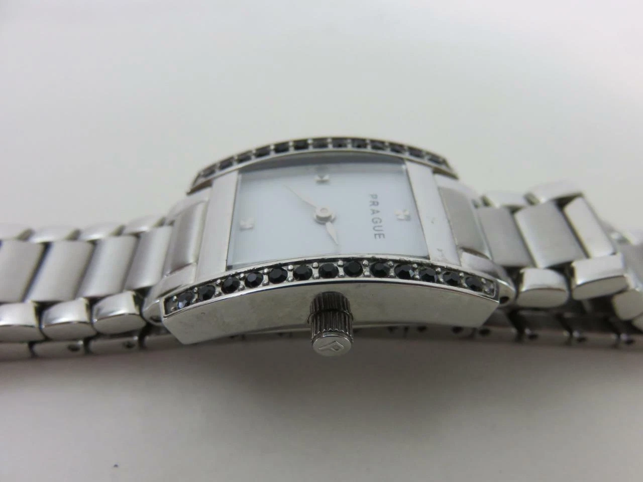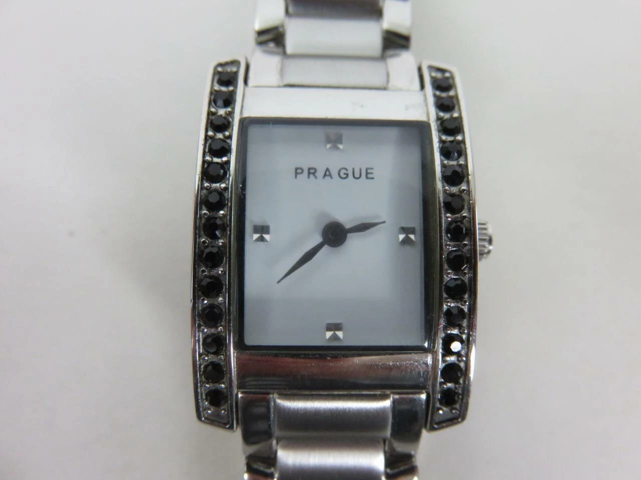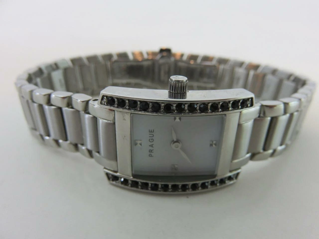 Ladies Prague Quartz Watch Black Crystal Bezel Stainless Steel Bracelet 7 1/2"