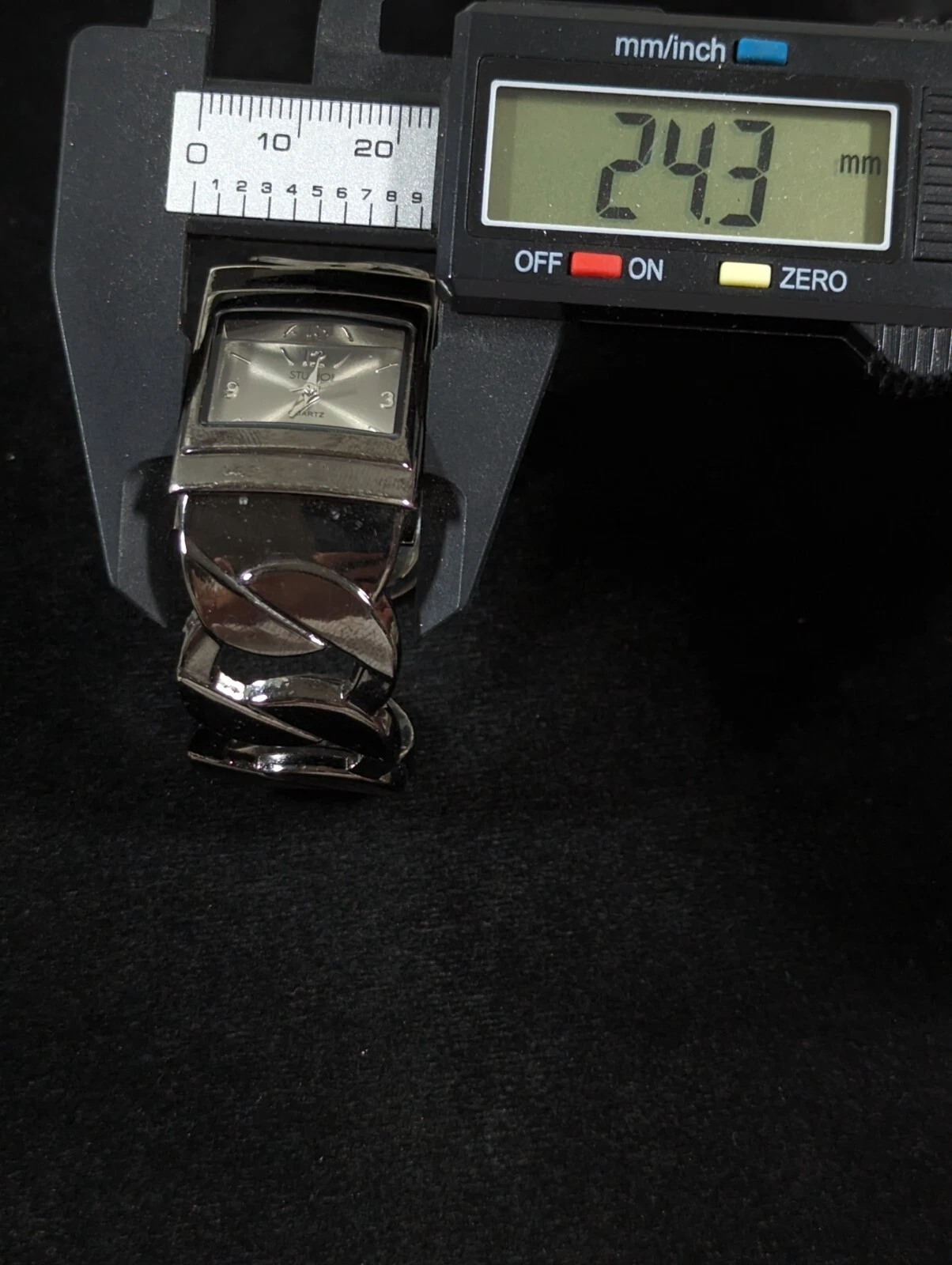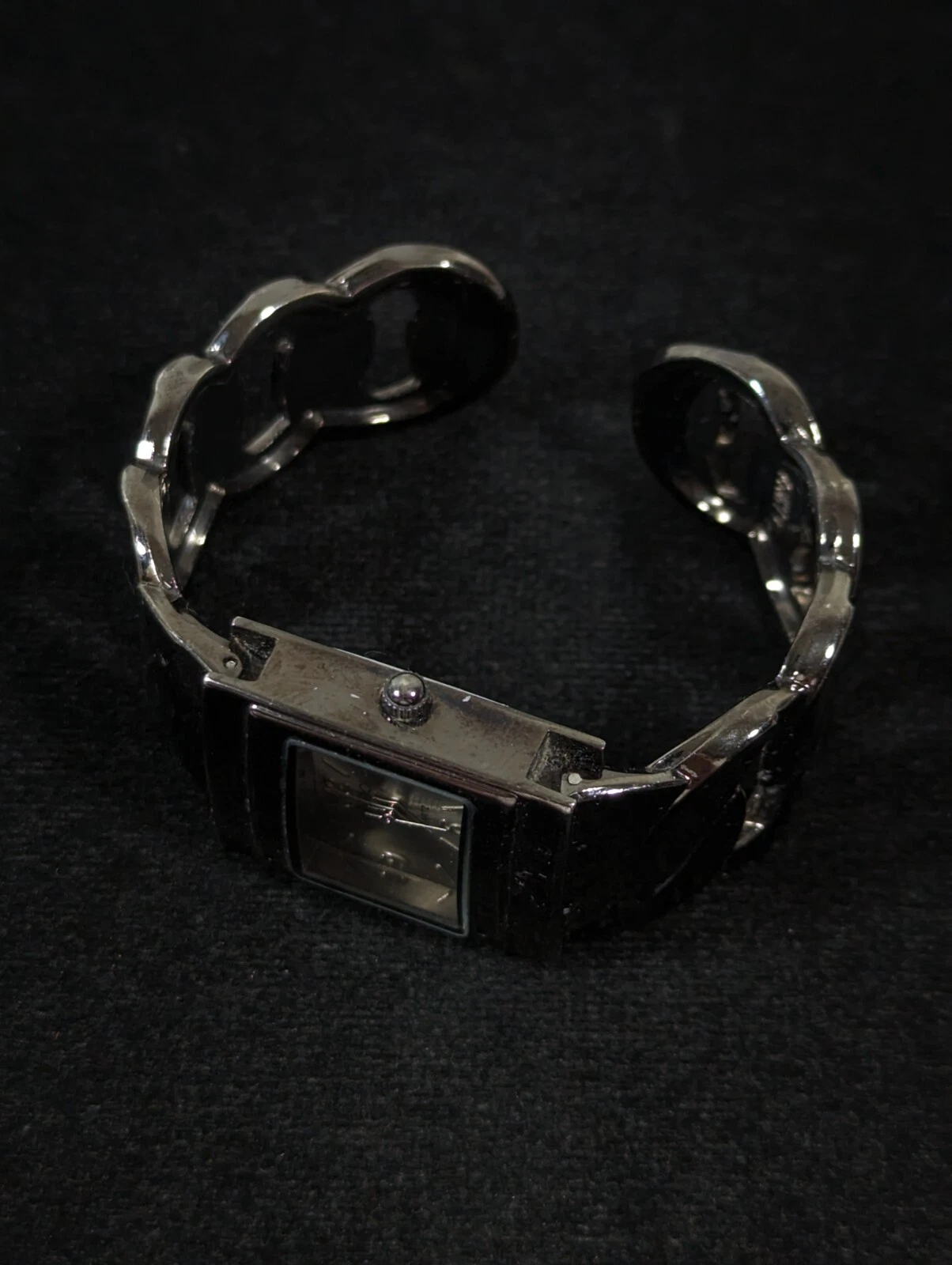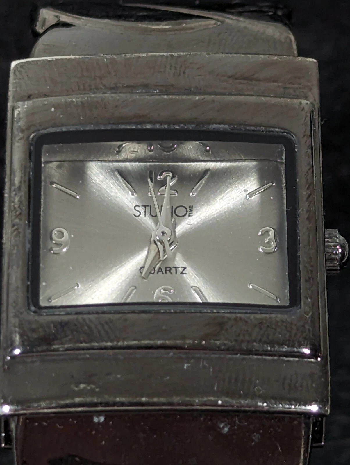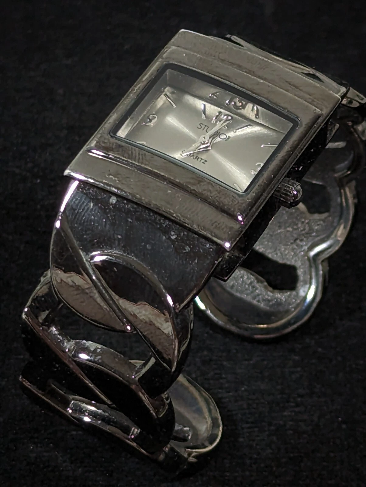 Studio Silver Tone Dial Black Case Hinge Open Cuff Bracelet Band Watch 6.5 Inch
