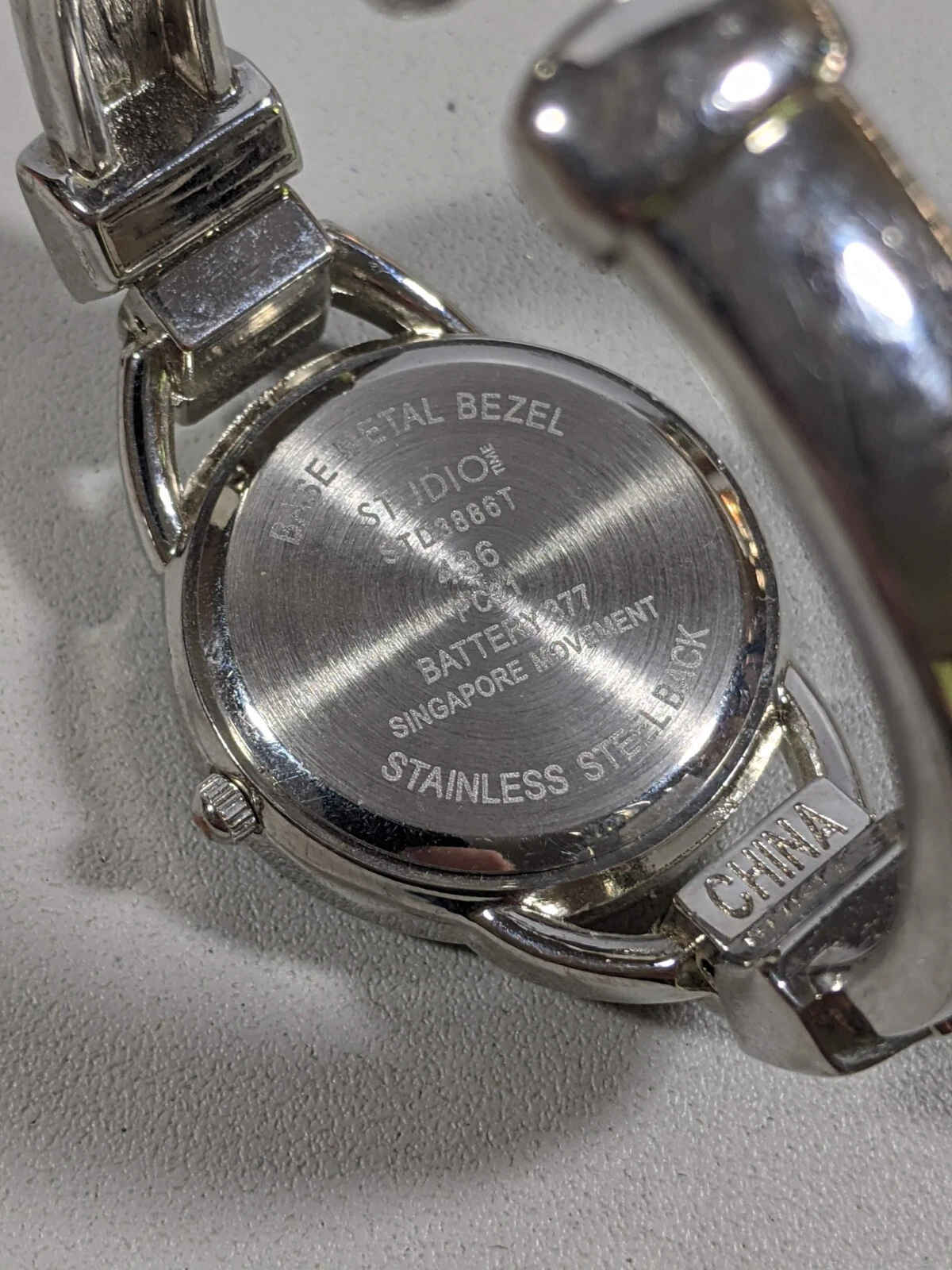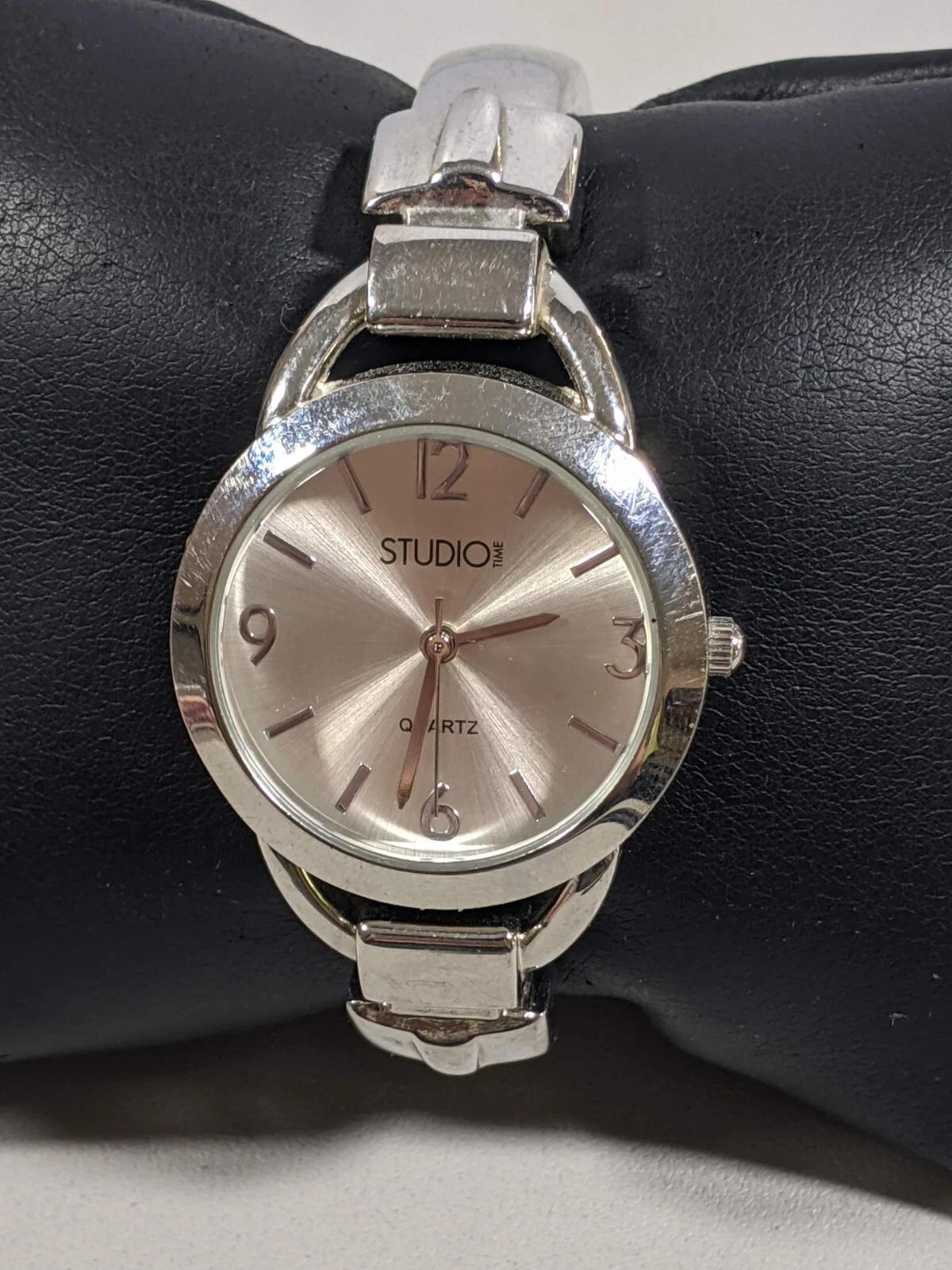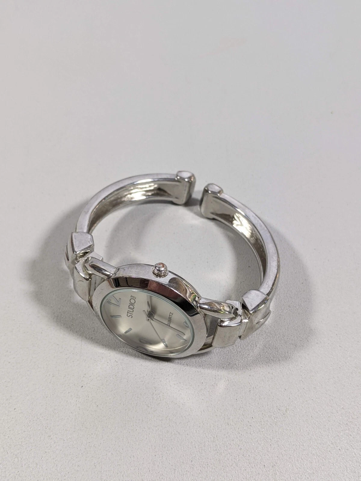 Studio Silver Tone Dial Round Case 32 mm Open Cuff Hinge Bracelet Band Watch 6in