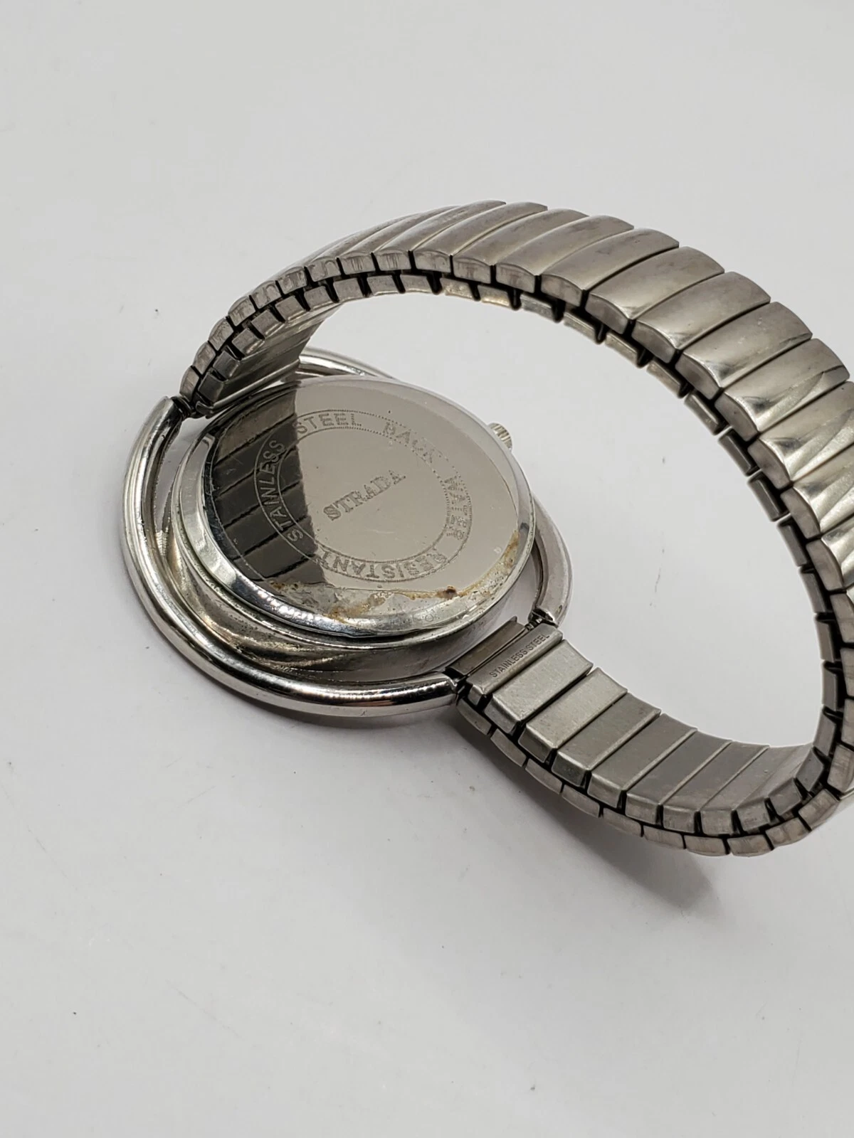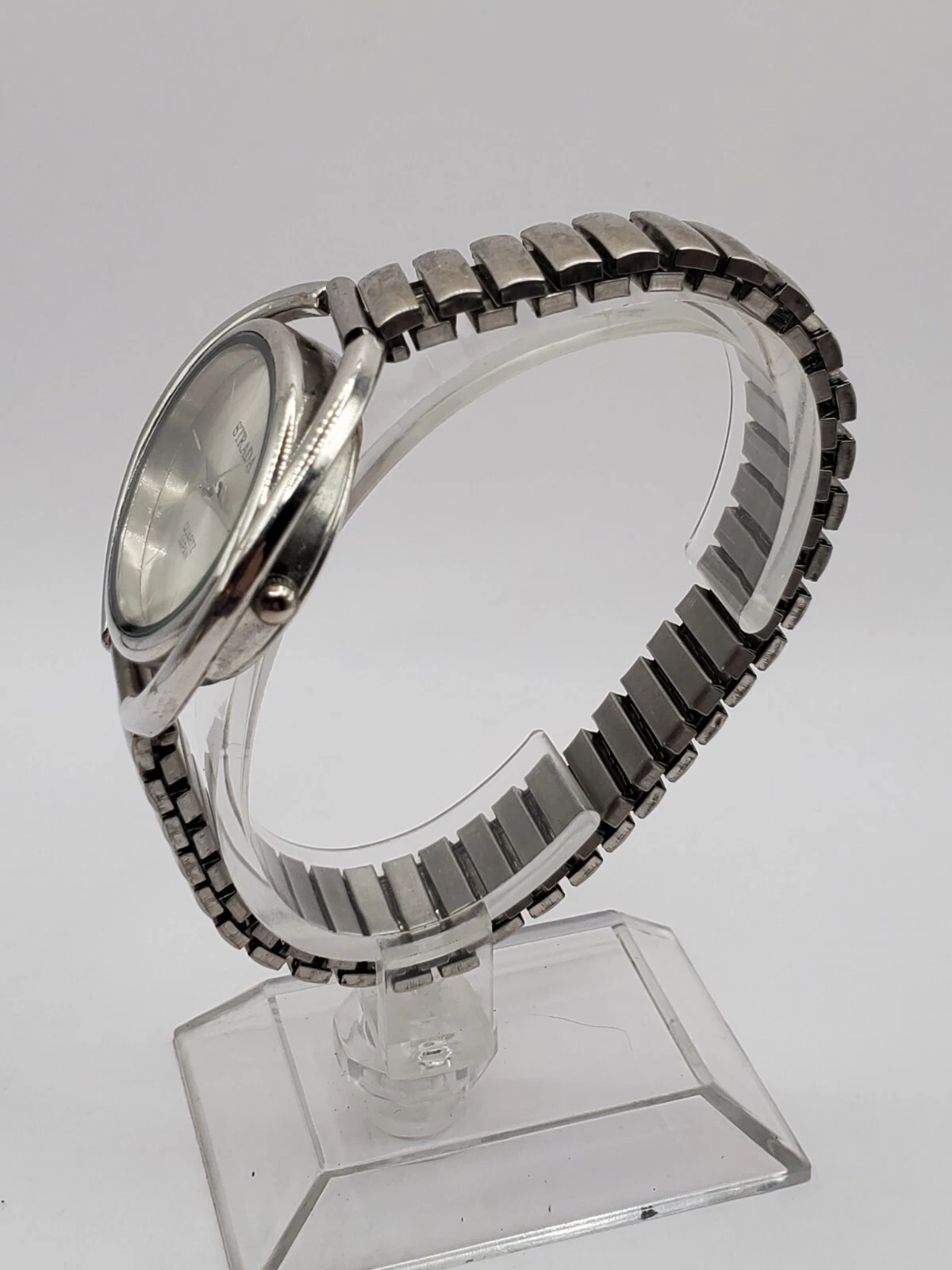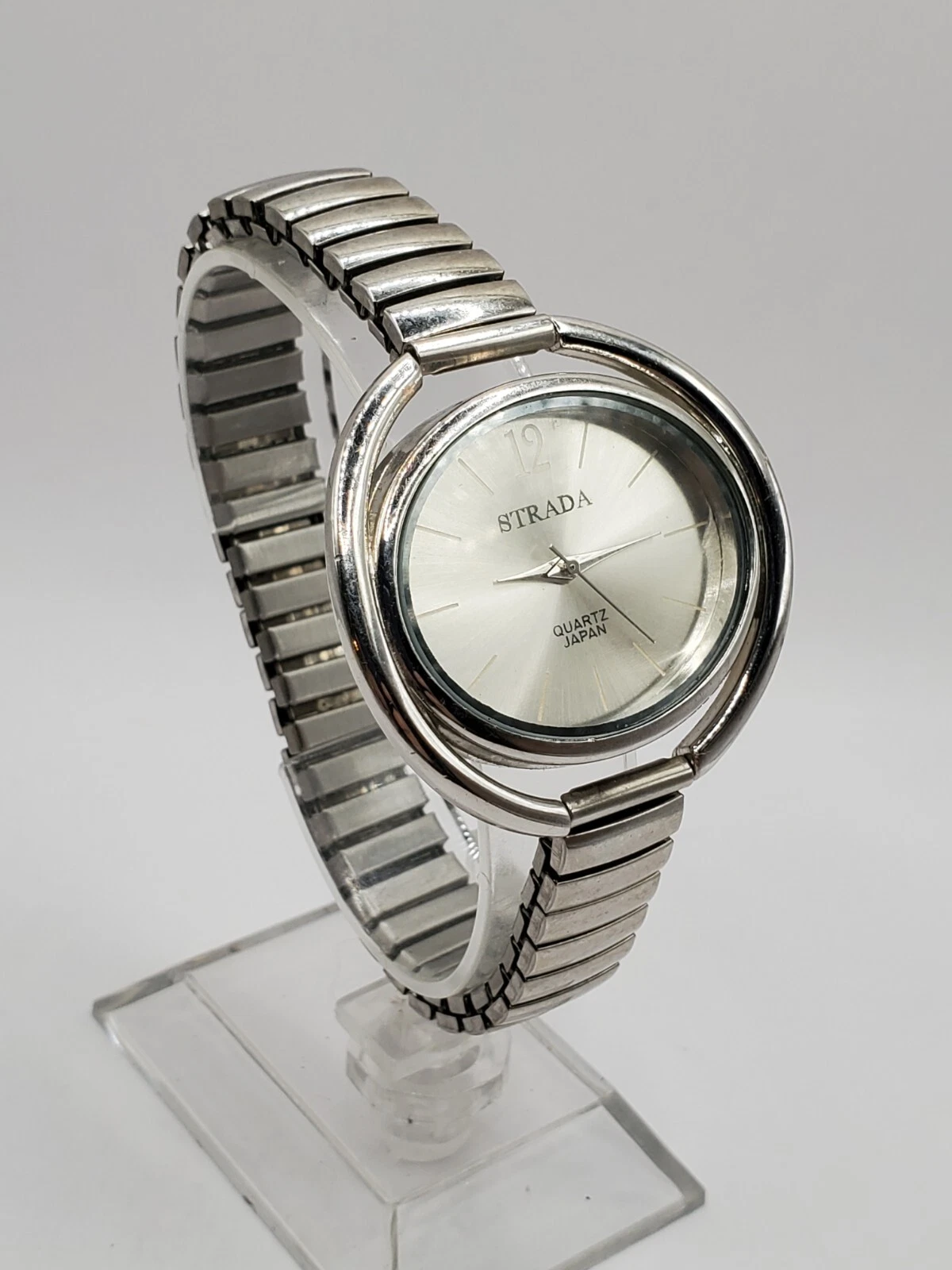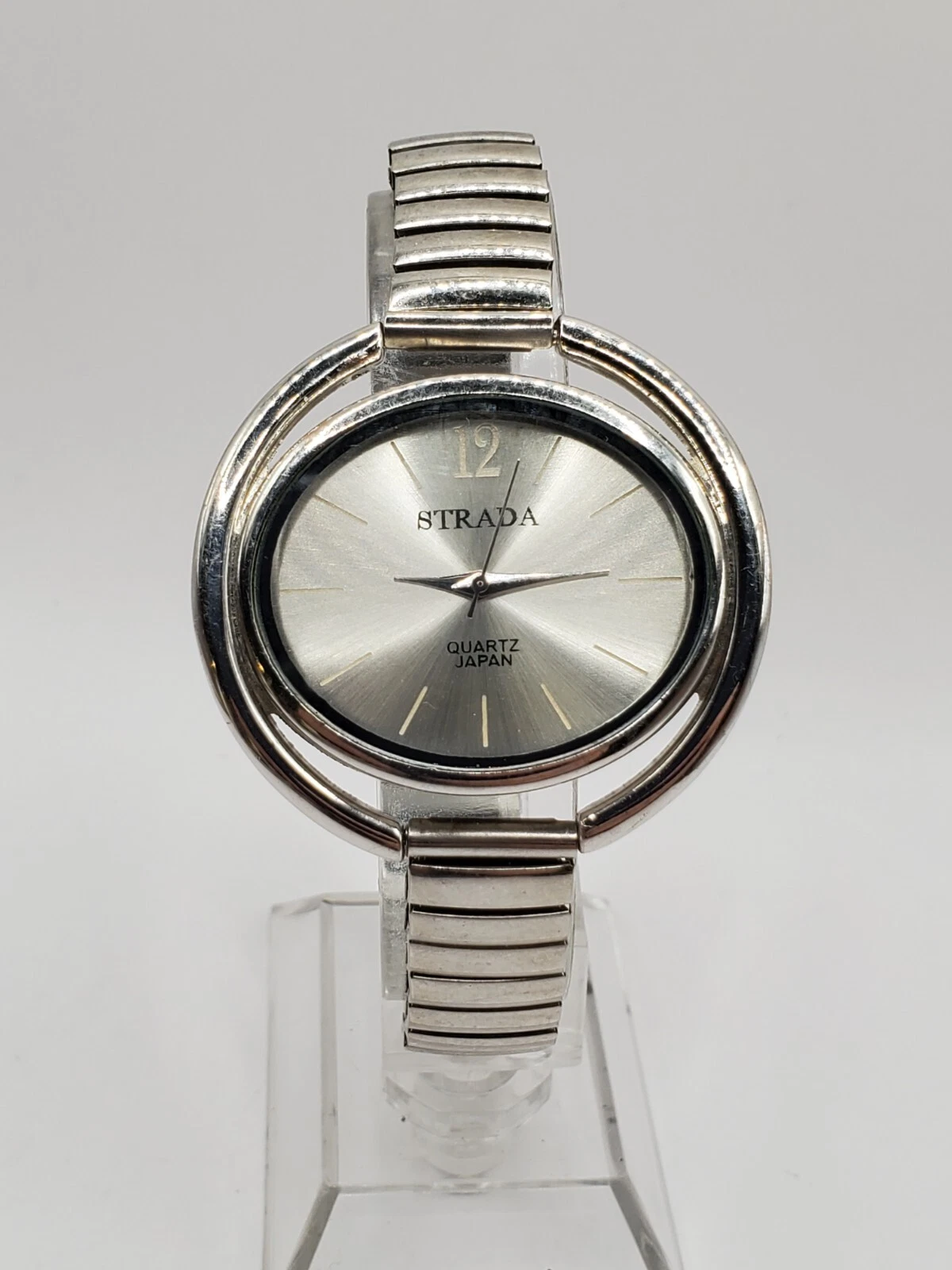 Strada Ladies Fashion Quartz Watch 40mm Oval Silver Tone Stretch Bracelet