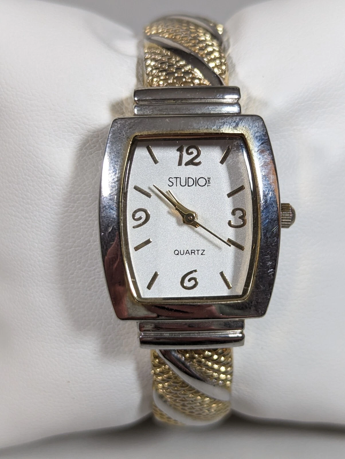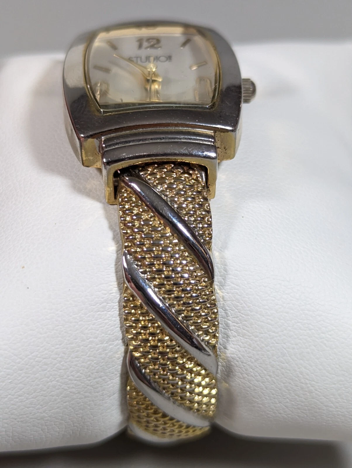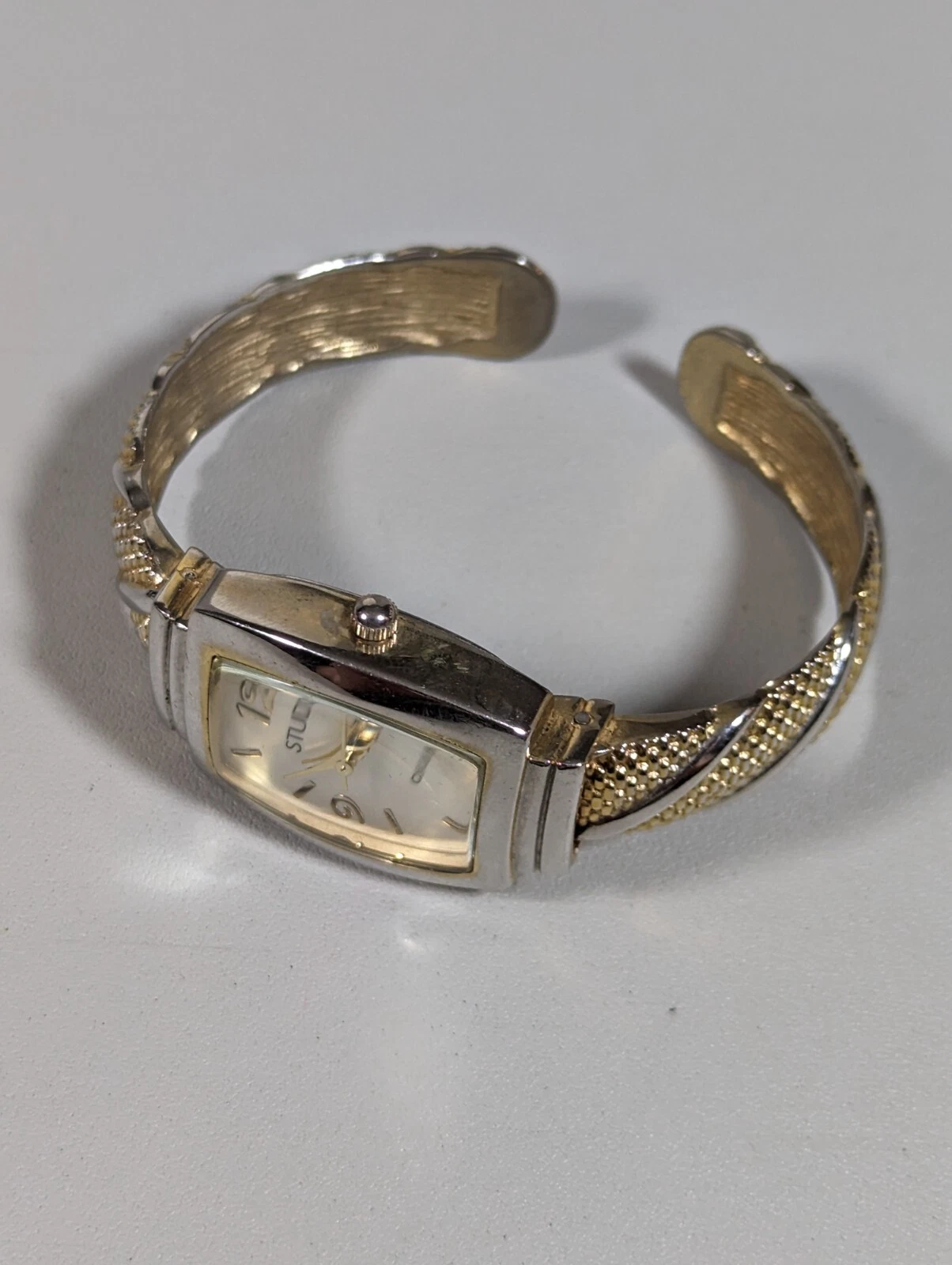 Studio Silver Tone Dial Gold Tone Case Hinge Open Cuff Bracelet Band Watch