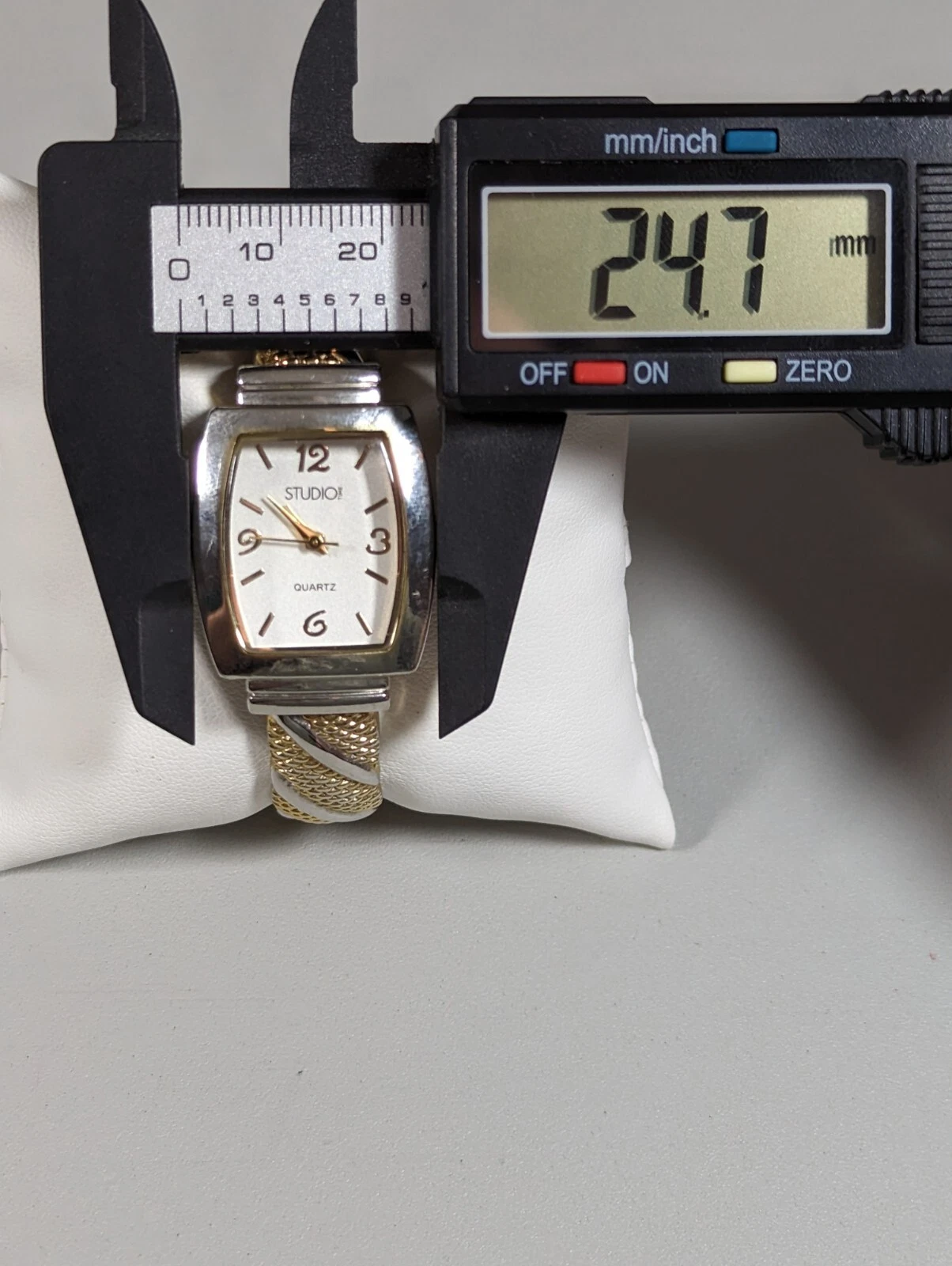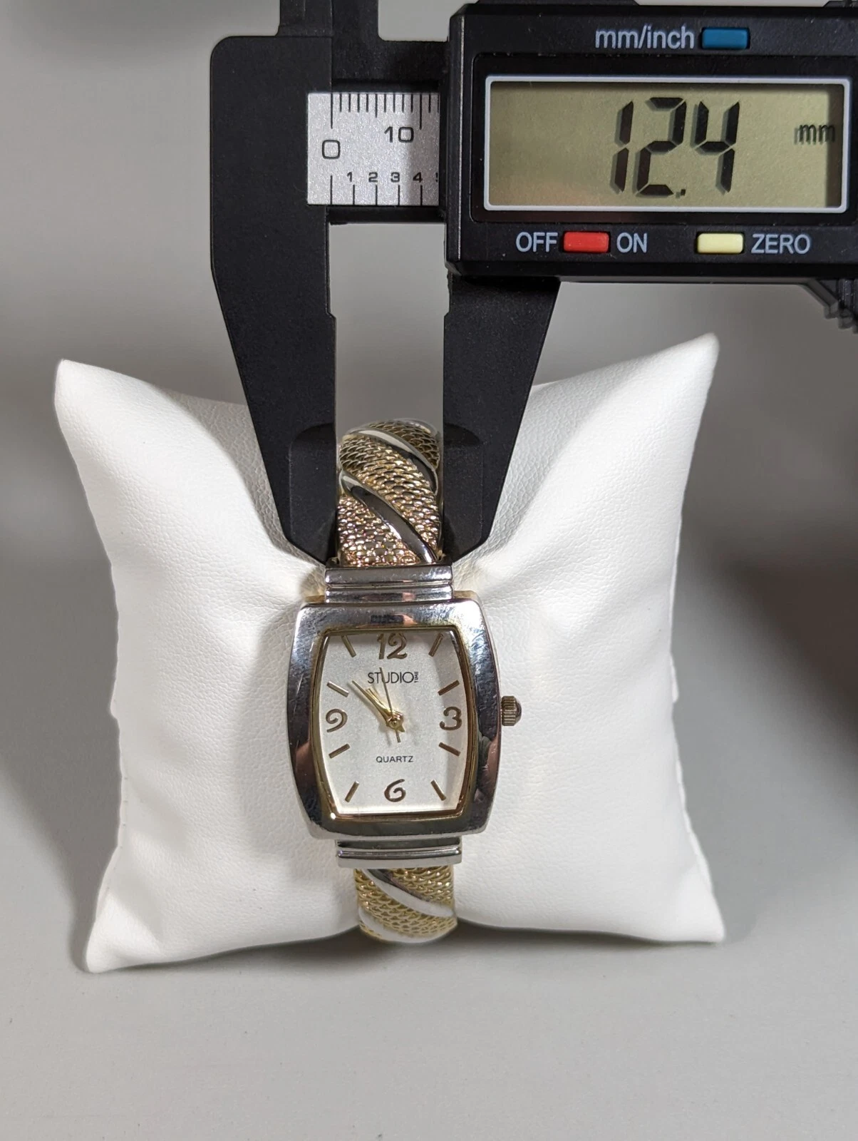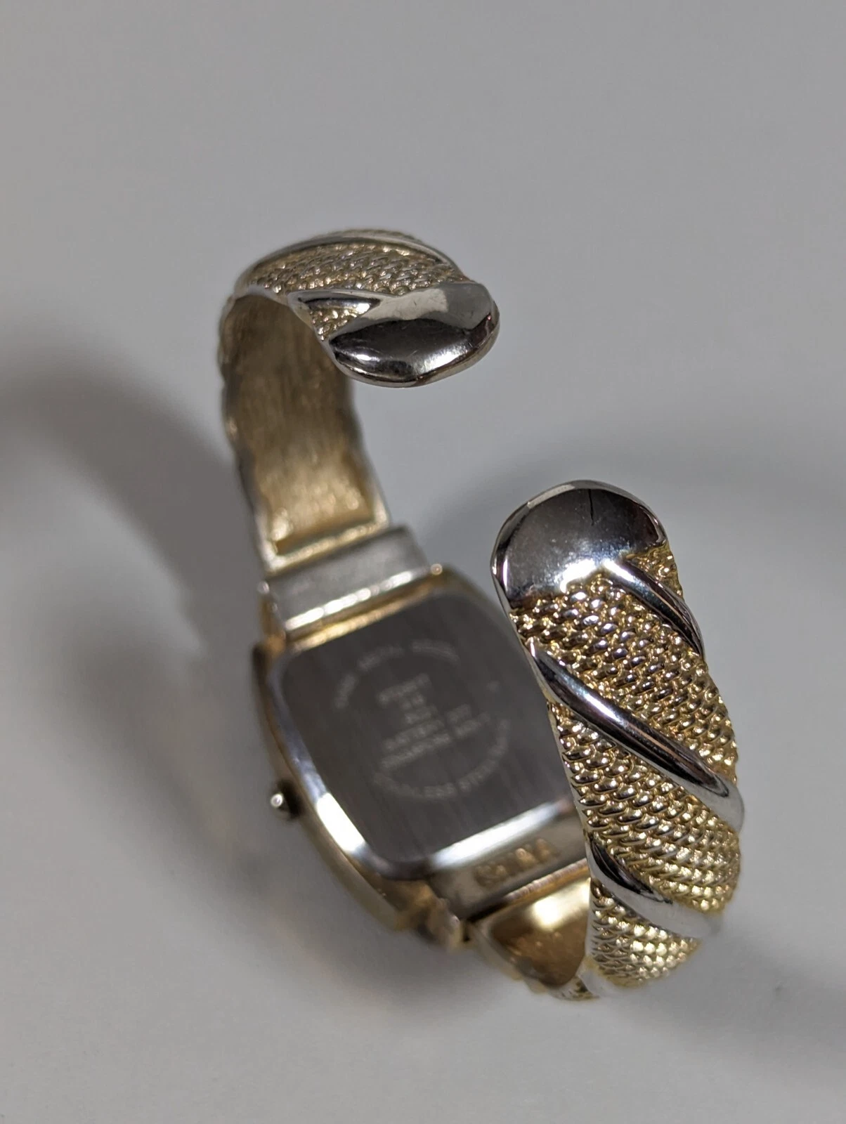 Studio Silver Tone Dial Gold Tone Case Hinge Open Cuff Bracelet Band Watch