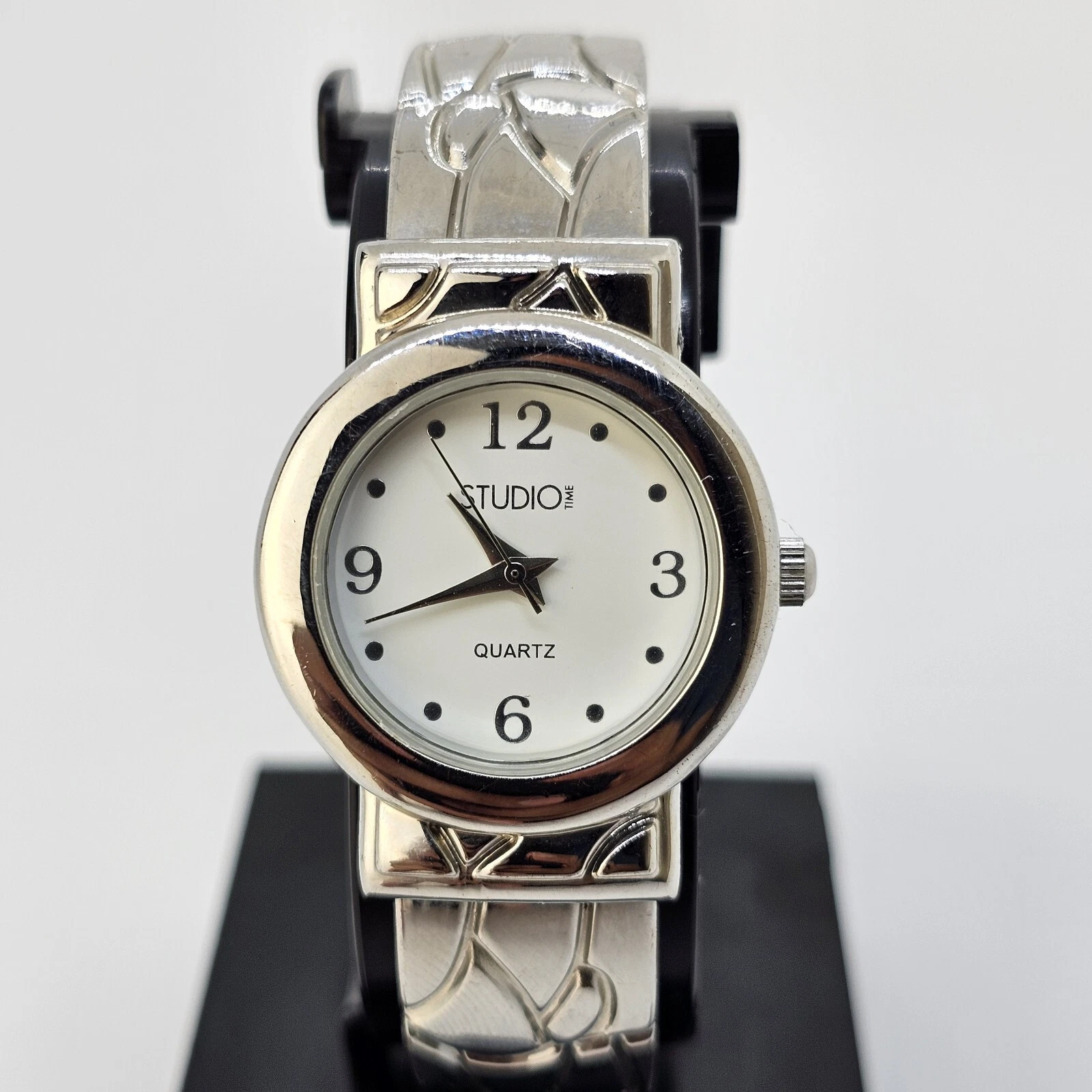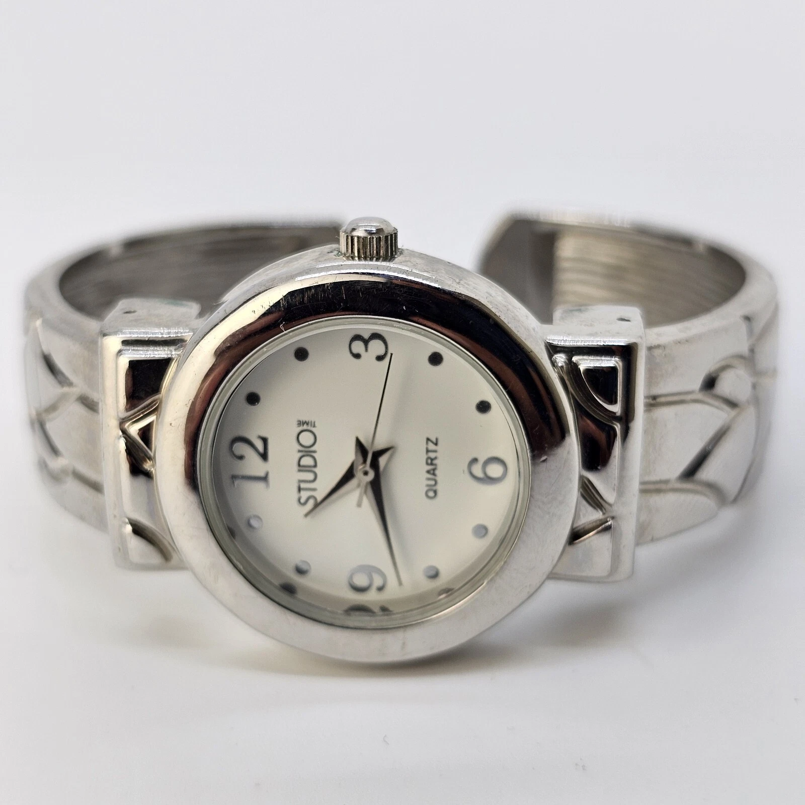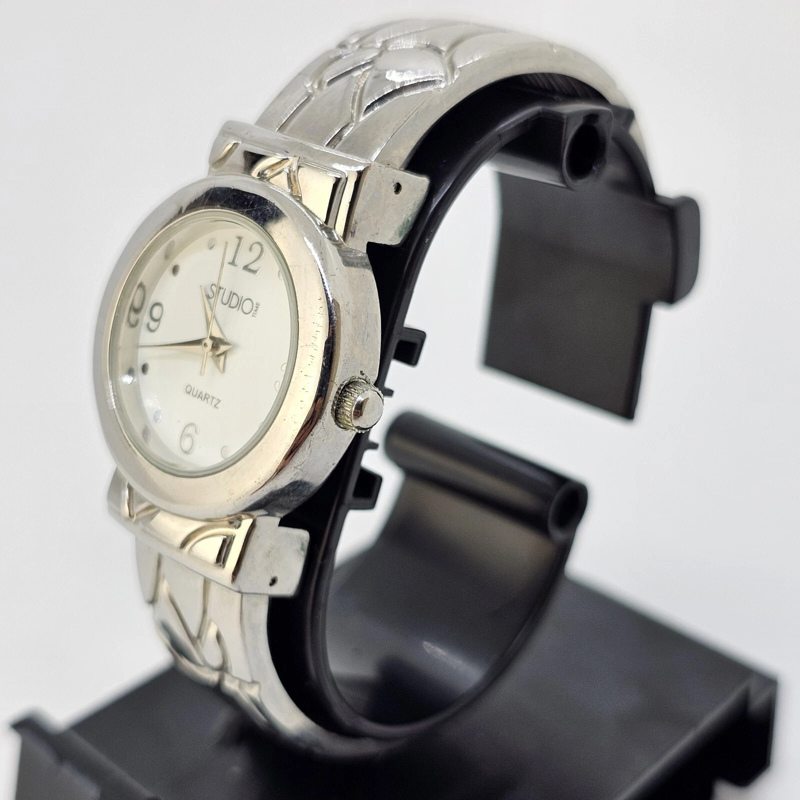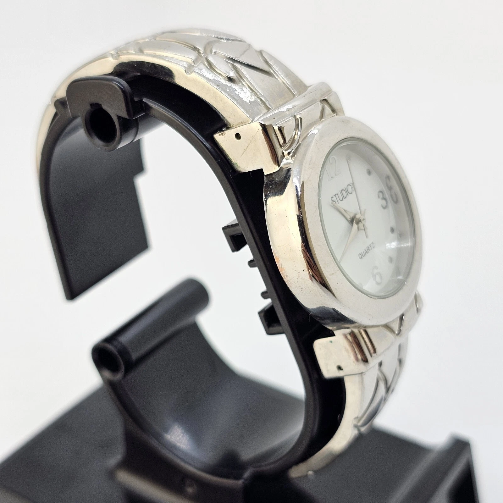 Studio Women Bracelet Watch 30MM White Dial Gray Bands 5.5" Wrist New Battery