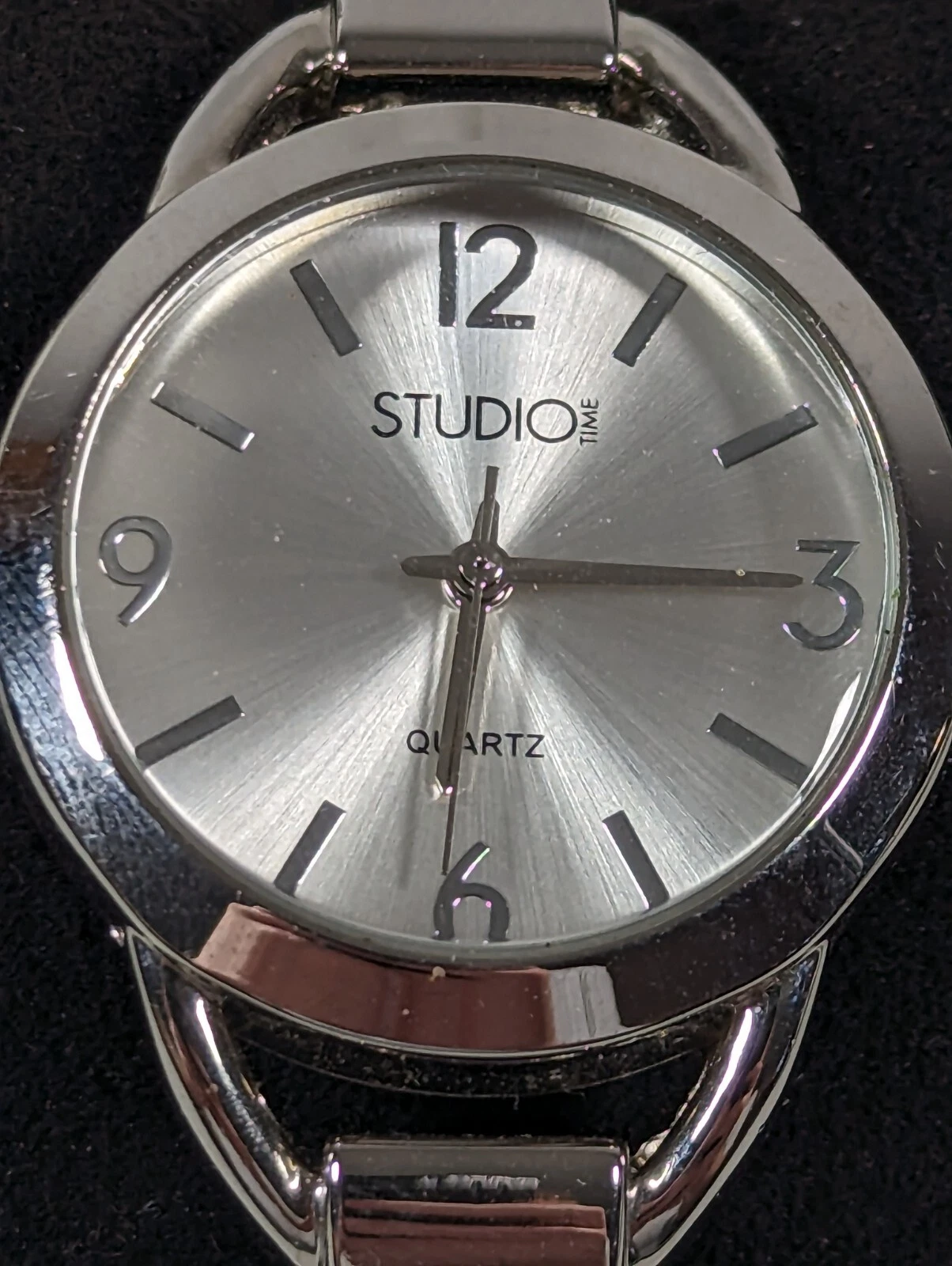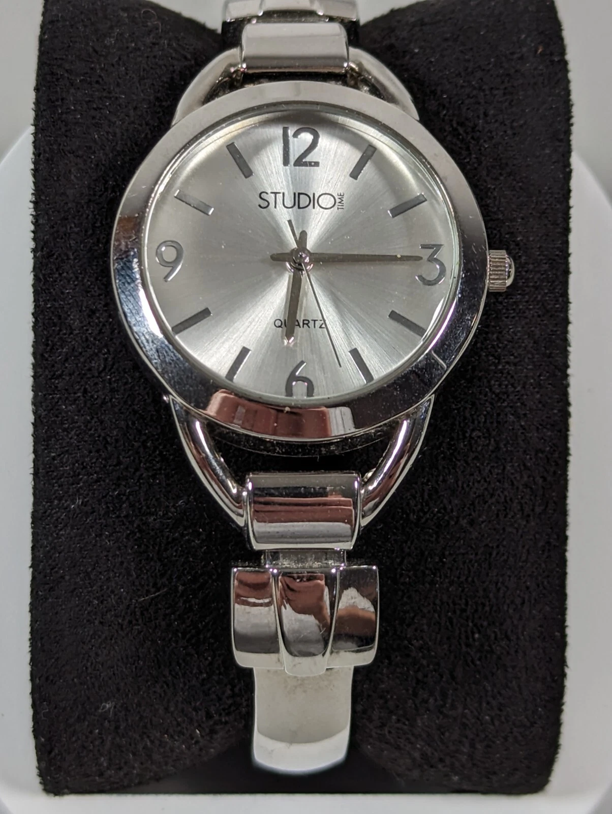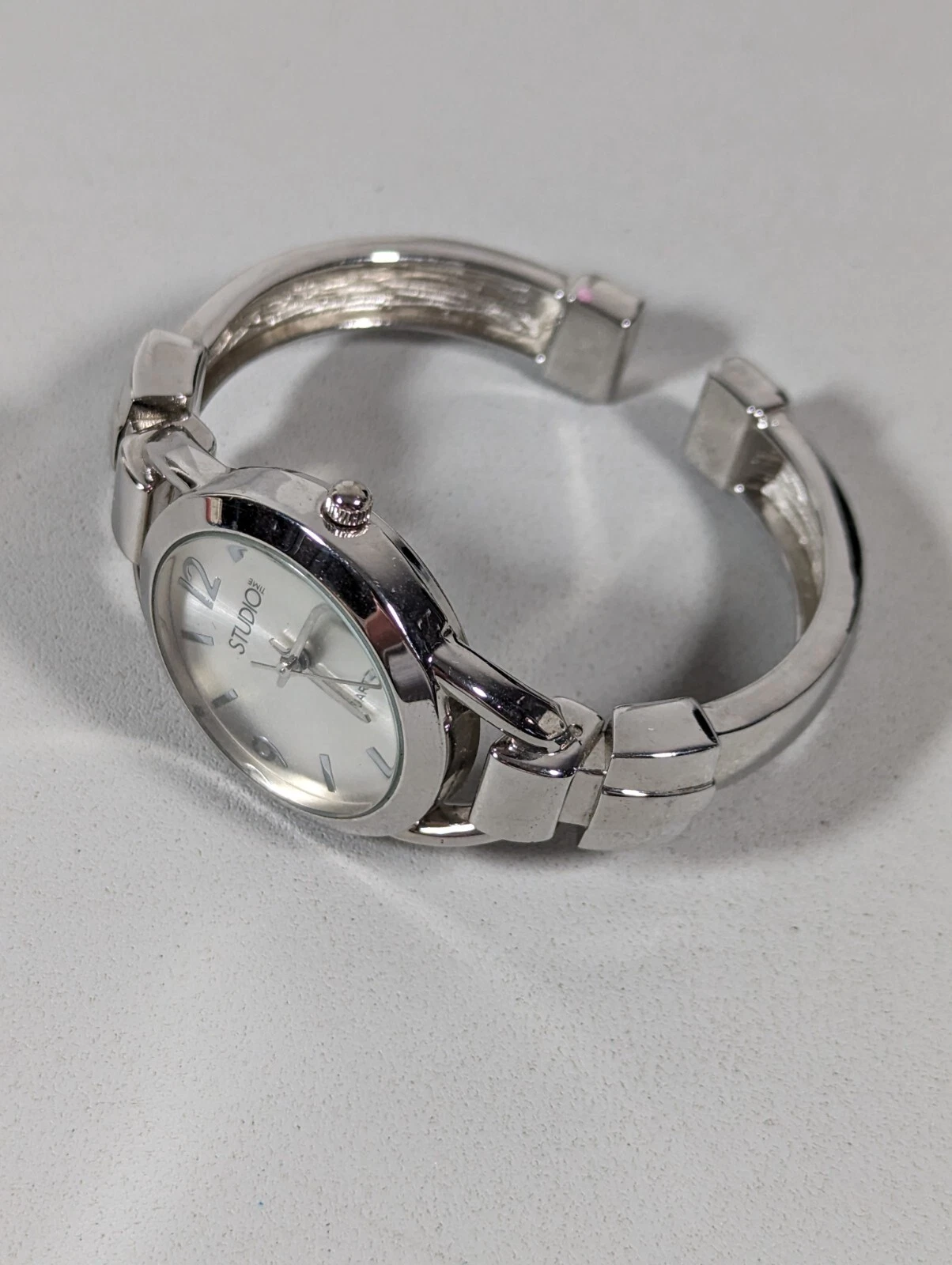 Studio Silver Tone Dial Round Case Open Cuff Hinge Bracelet Band Watch