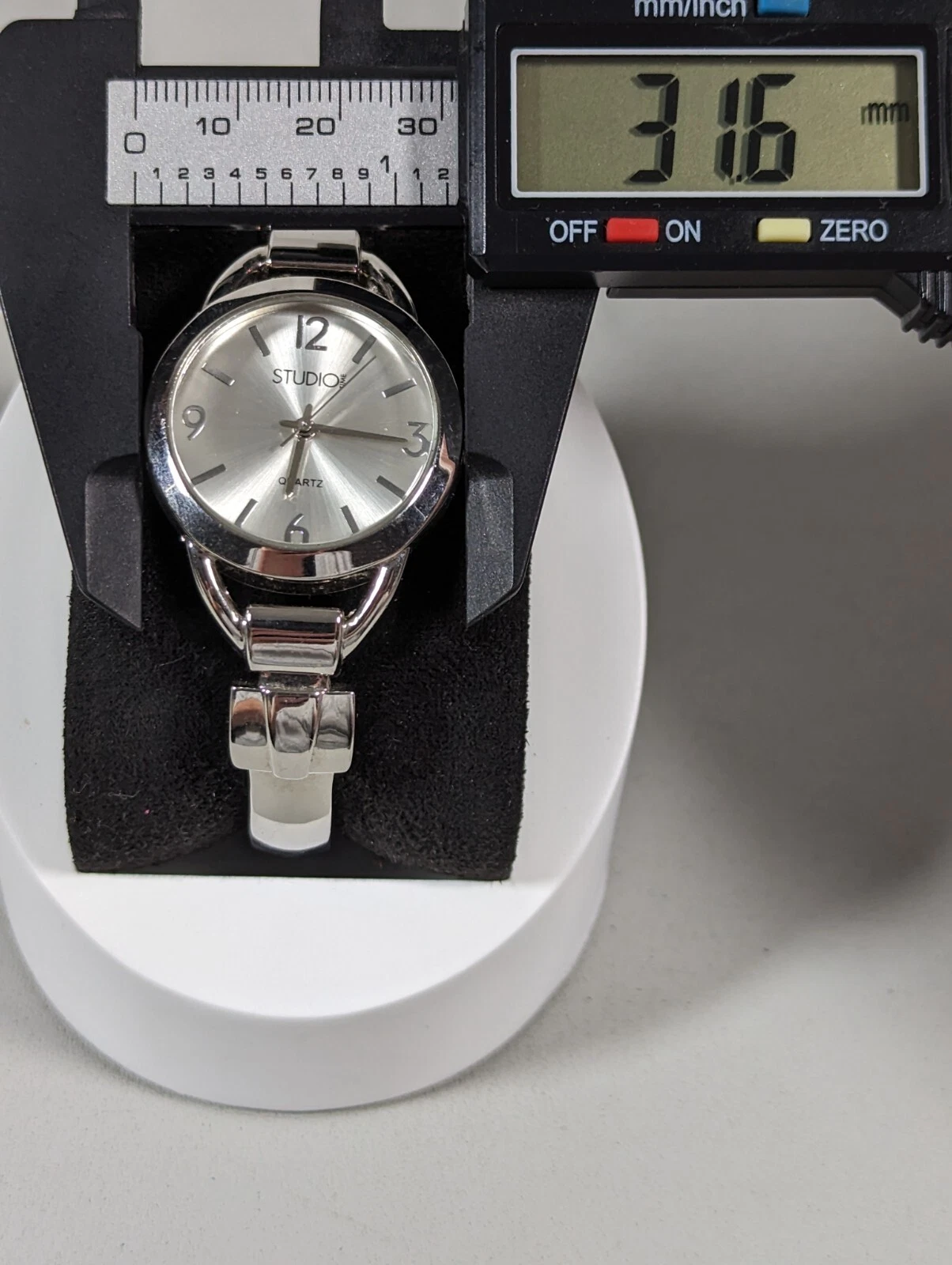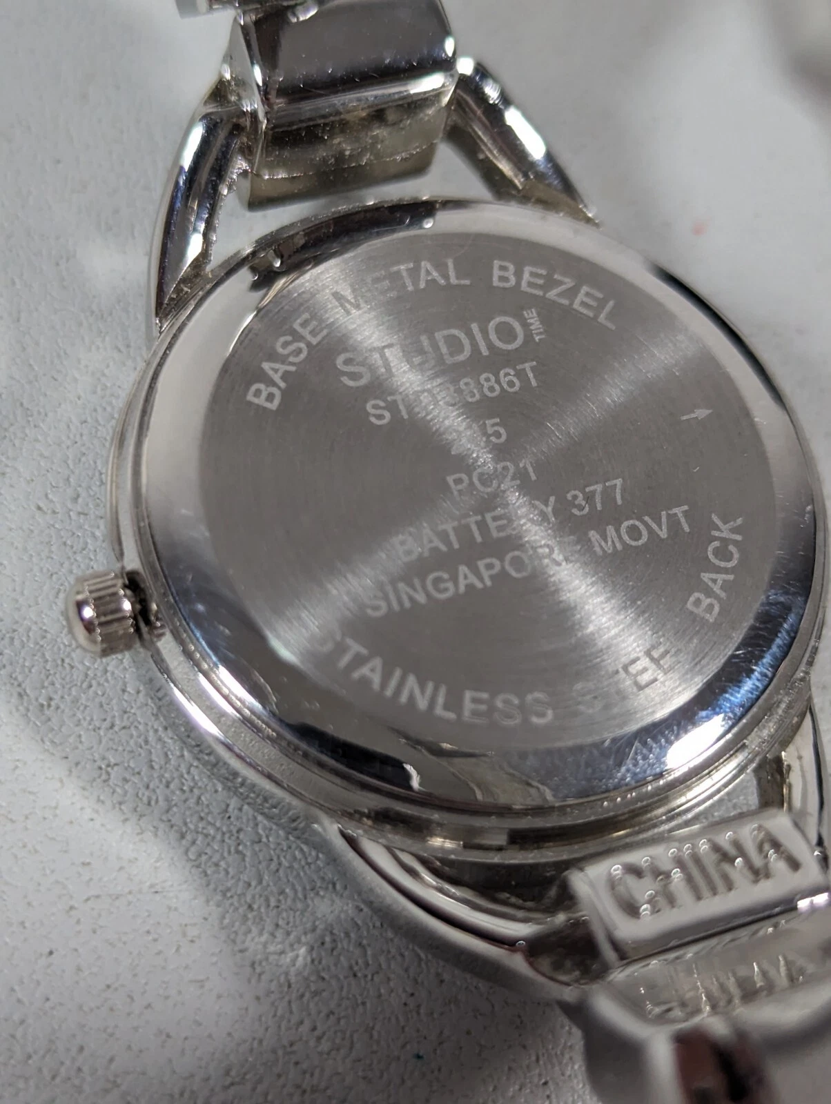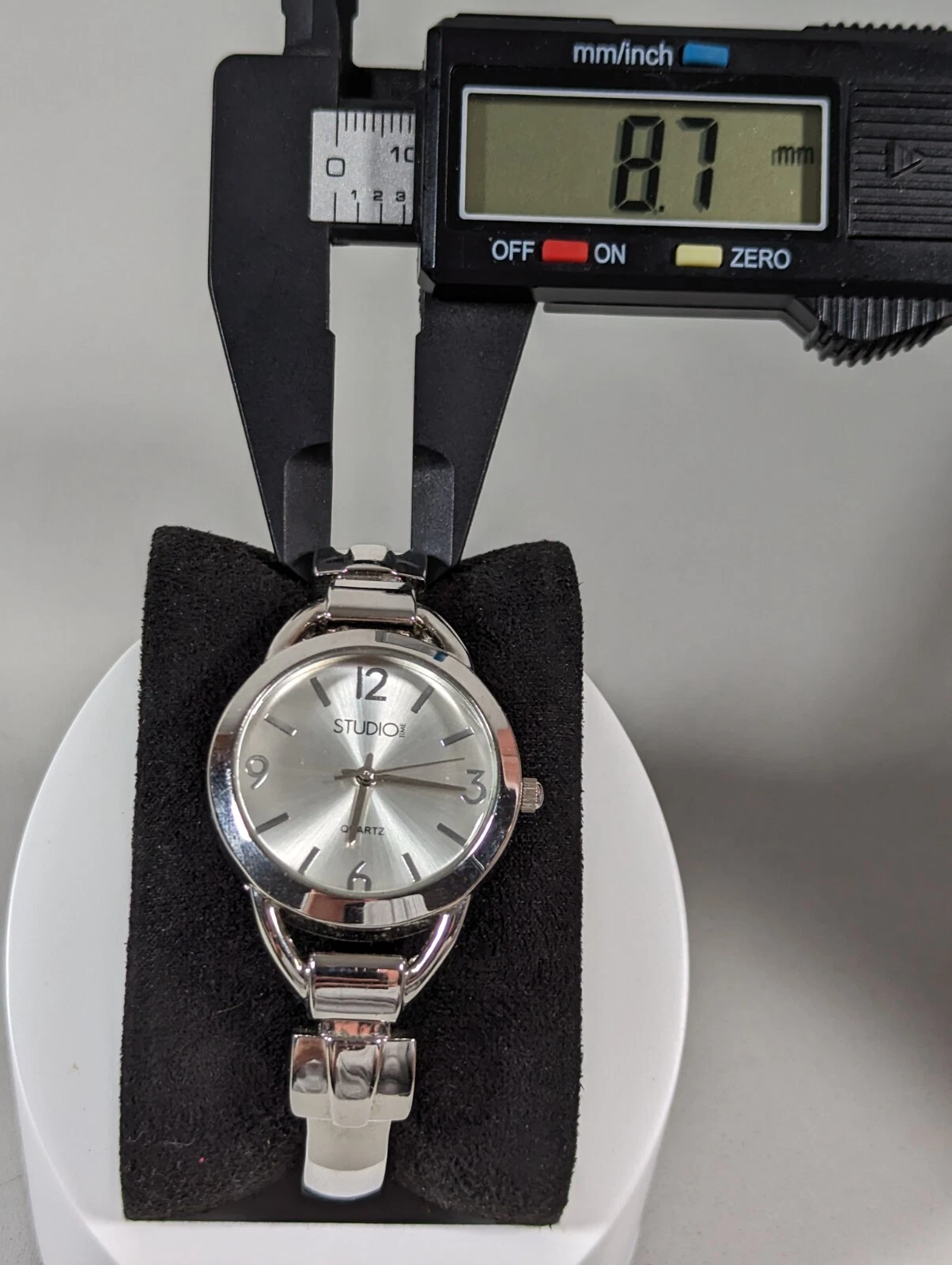 Studio Silver Tone Dial Round Case Open Cuff Hinge Bracelet Band Watch