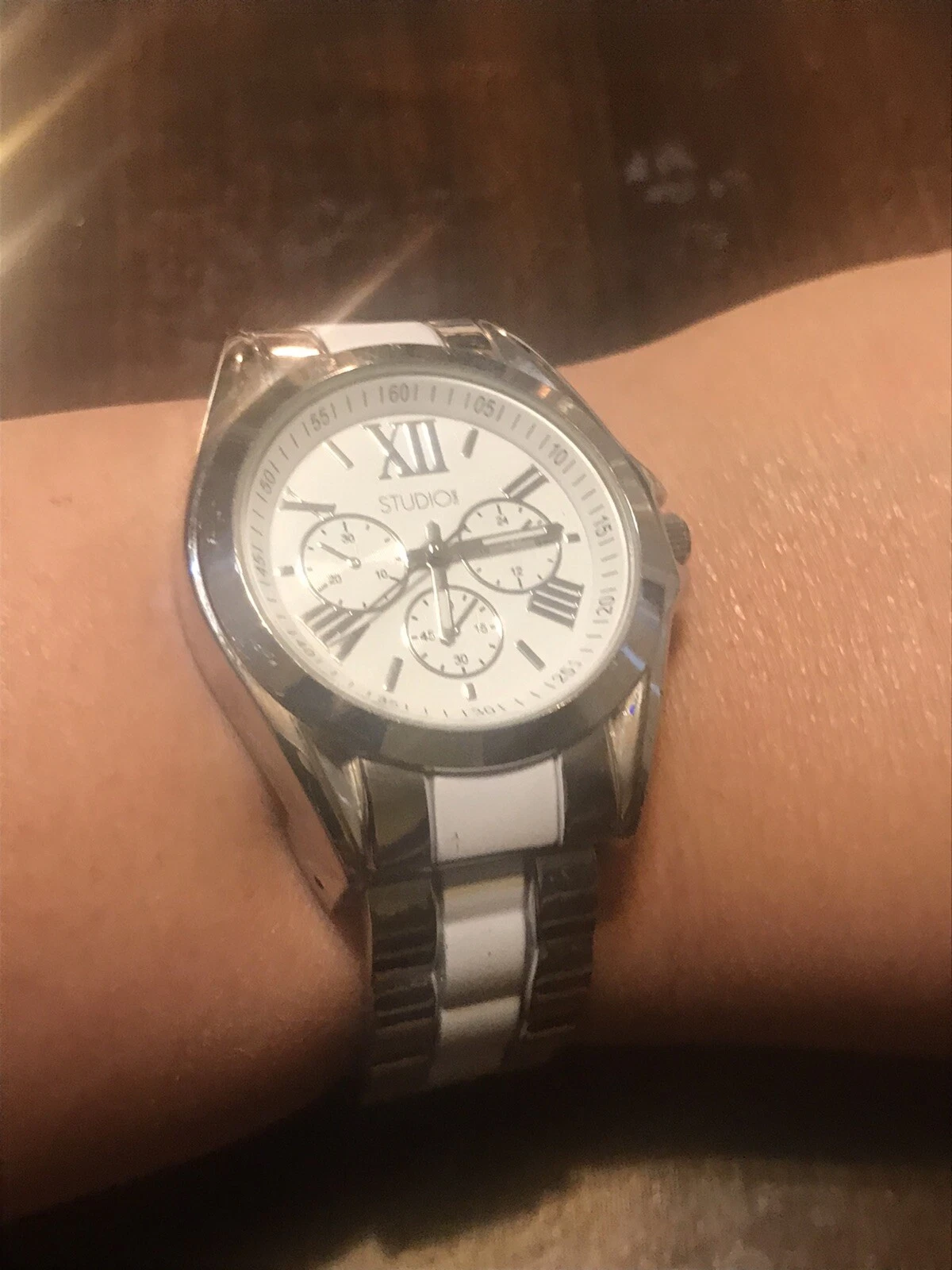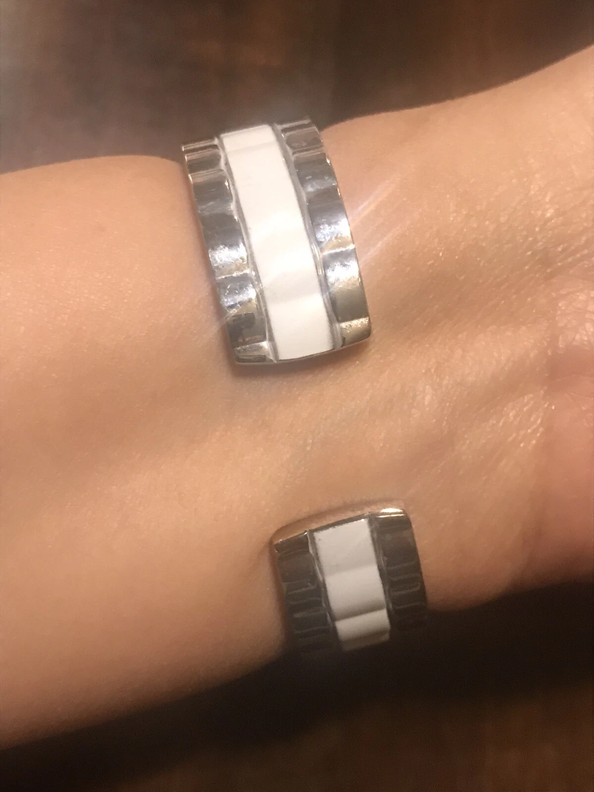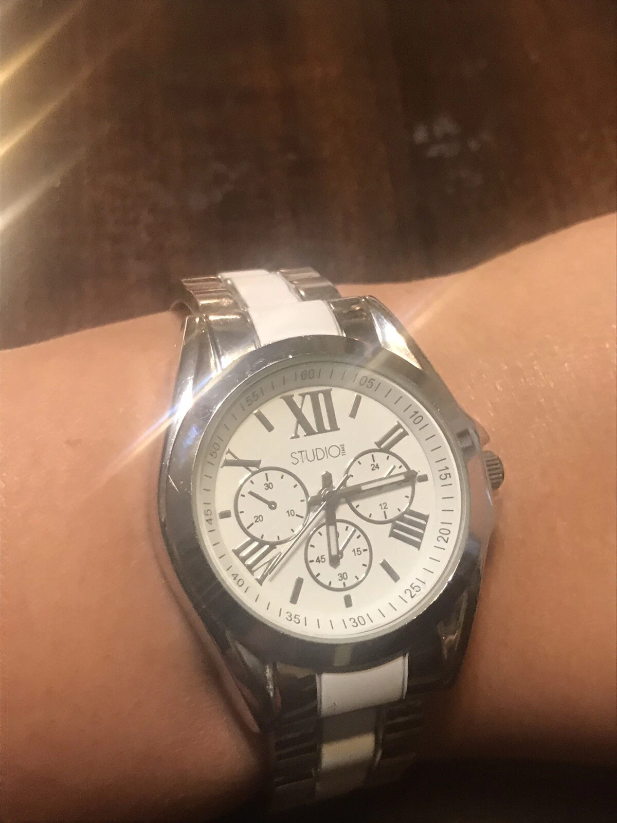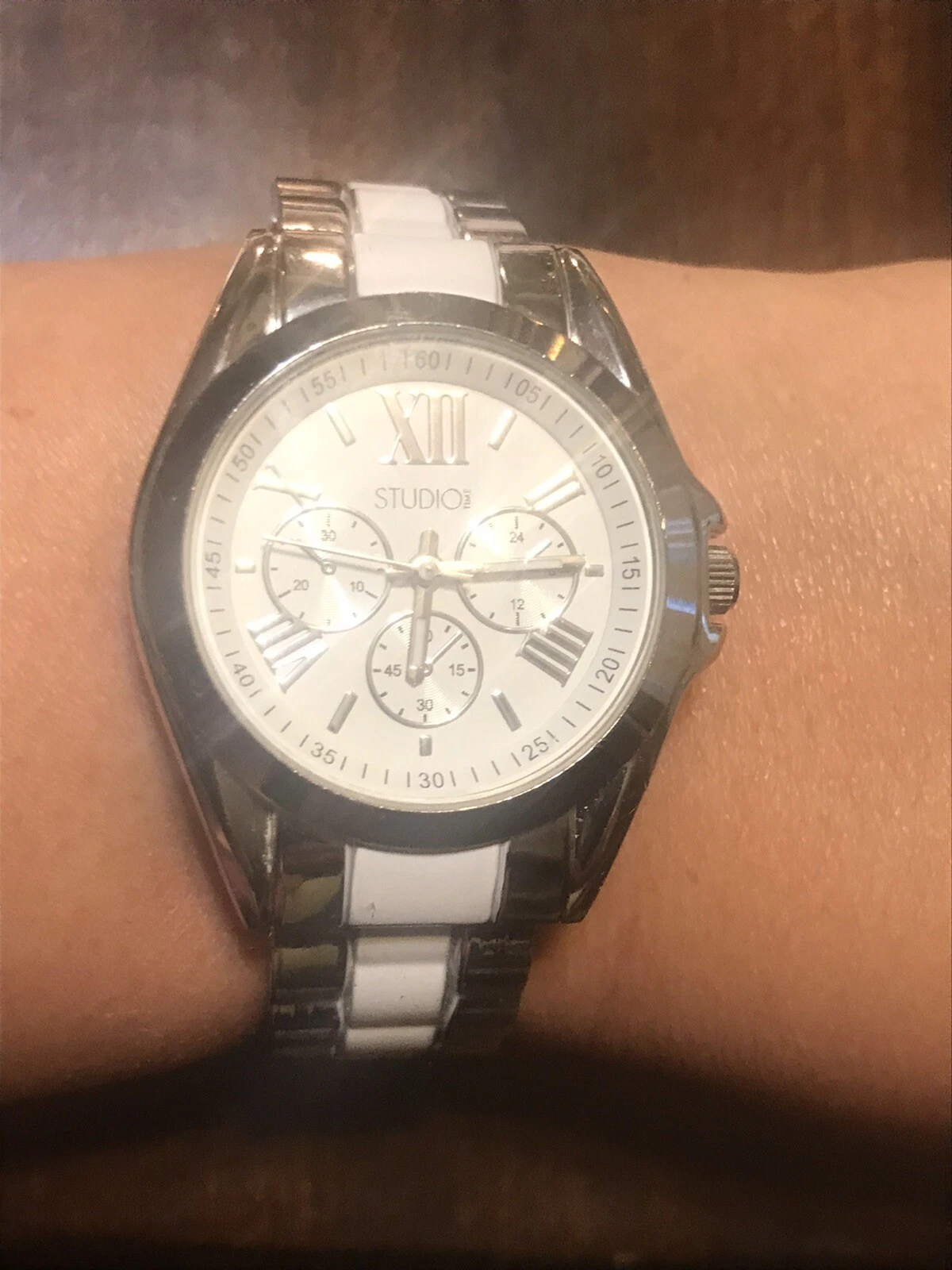 STUDIO WOMENS SILVERTONE FILIGREE CUFF WATCH White Singapore Movement’s