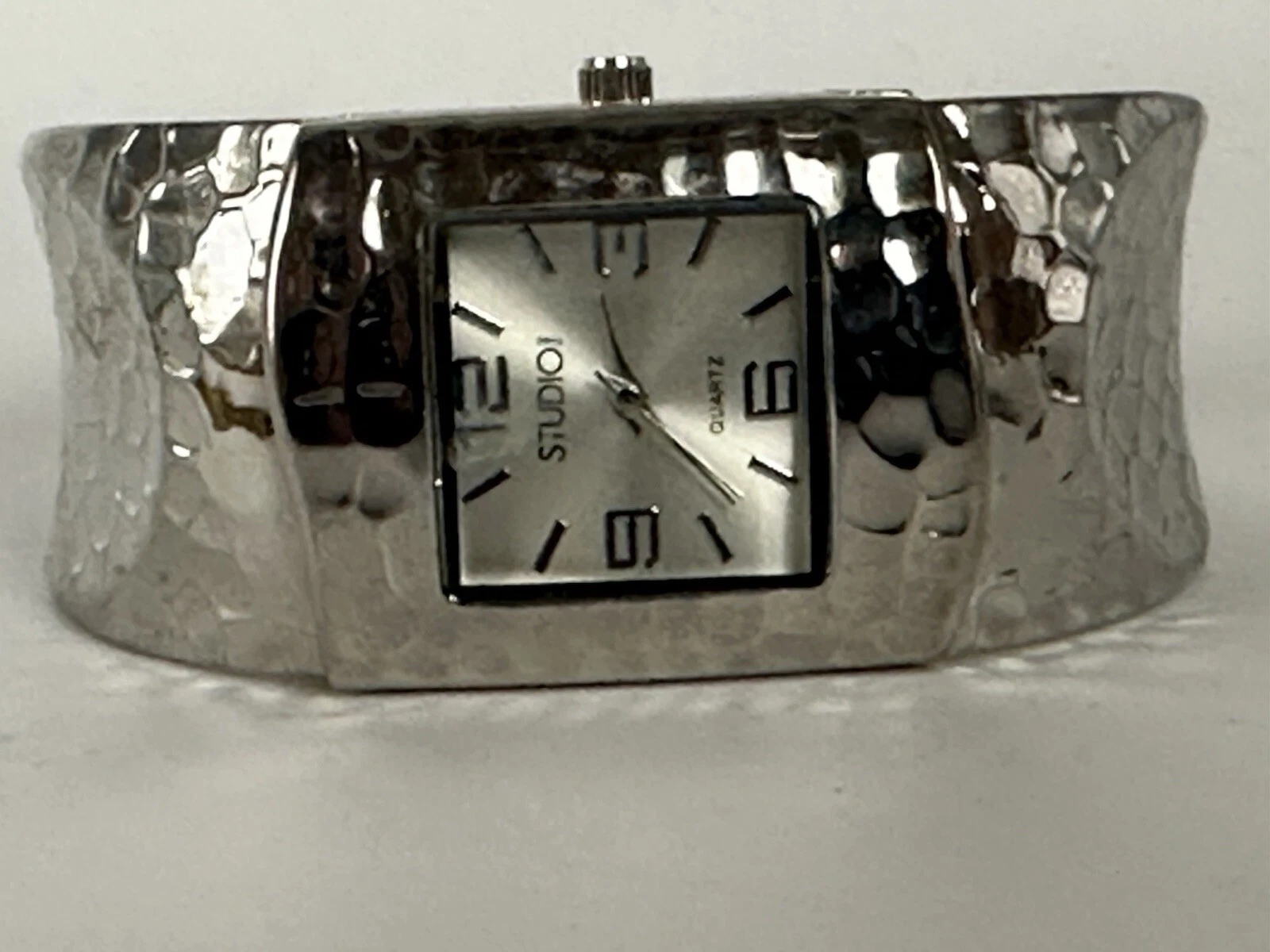 Studio Watch Women Silver Tone Clamper Cuff Bling