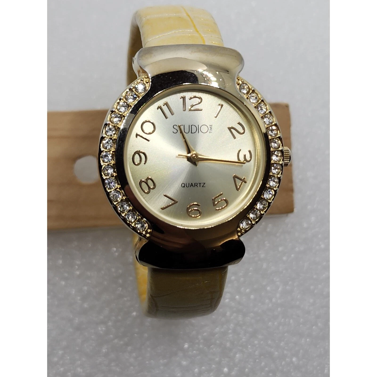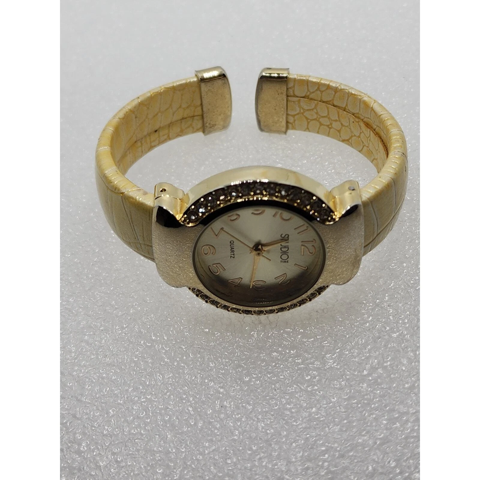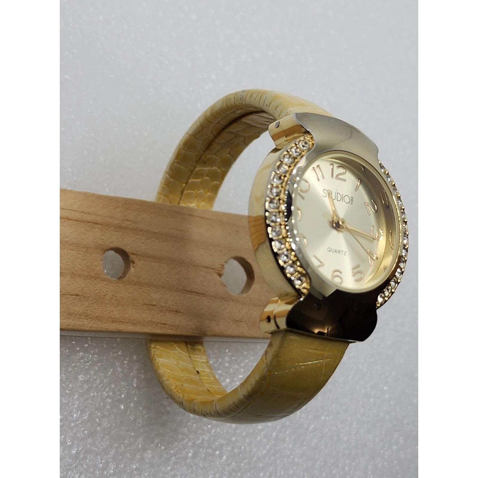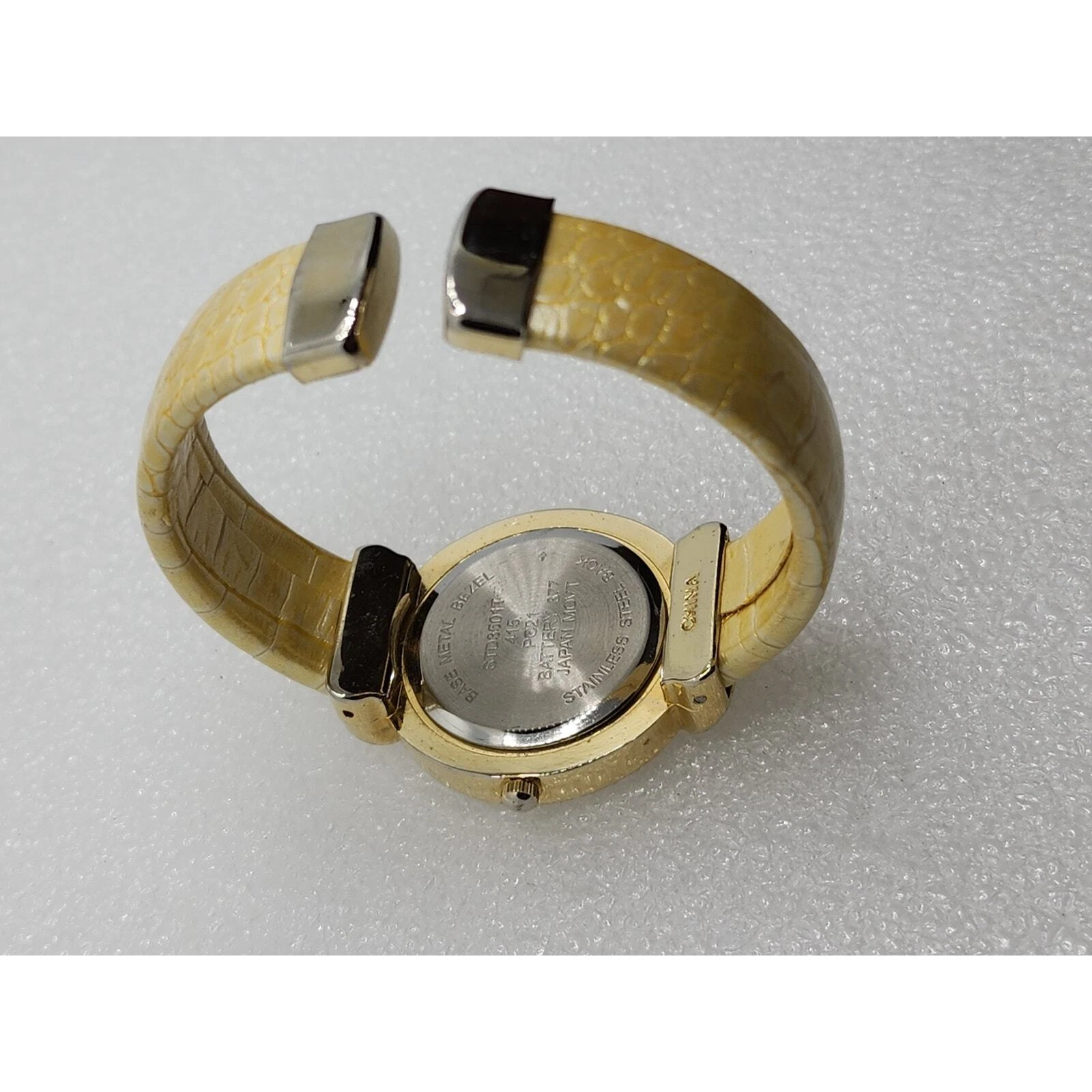 Studio Gold French Mustard Yellow Crystal Gemmed Accent Cuff Bangle Hinged Watch