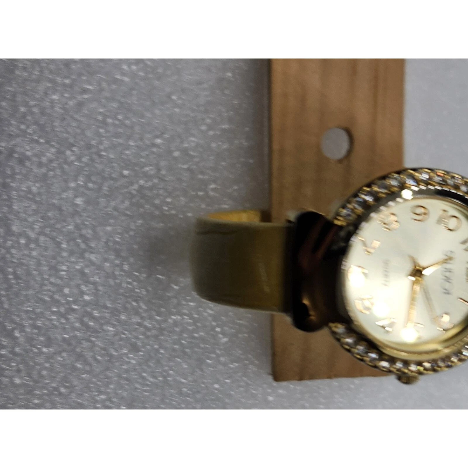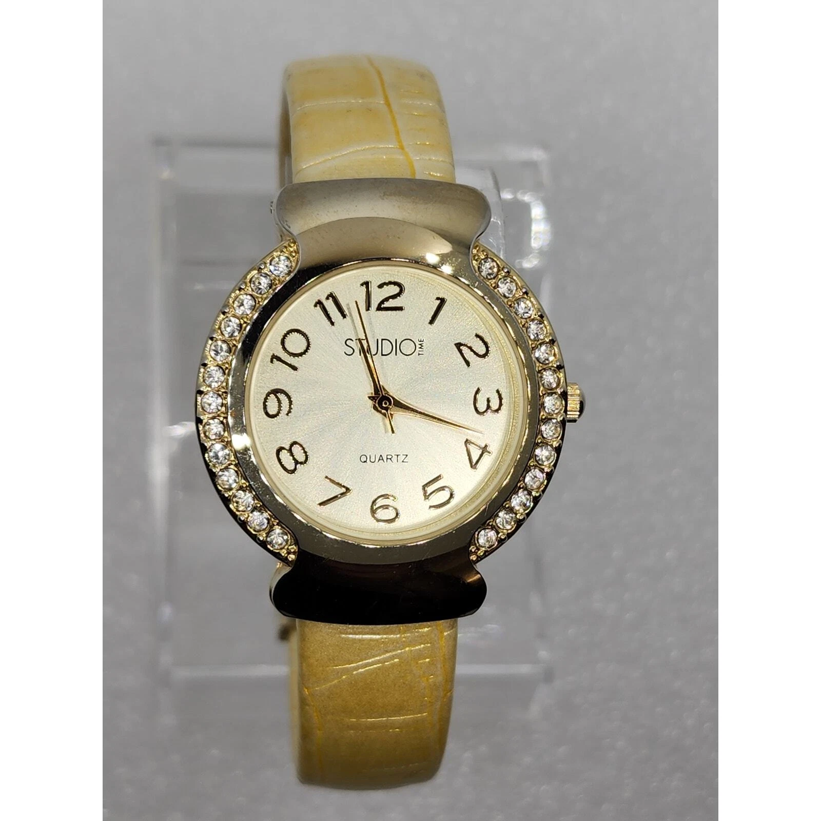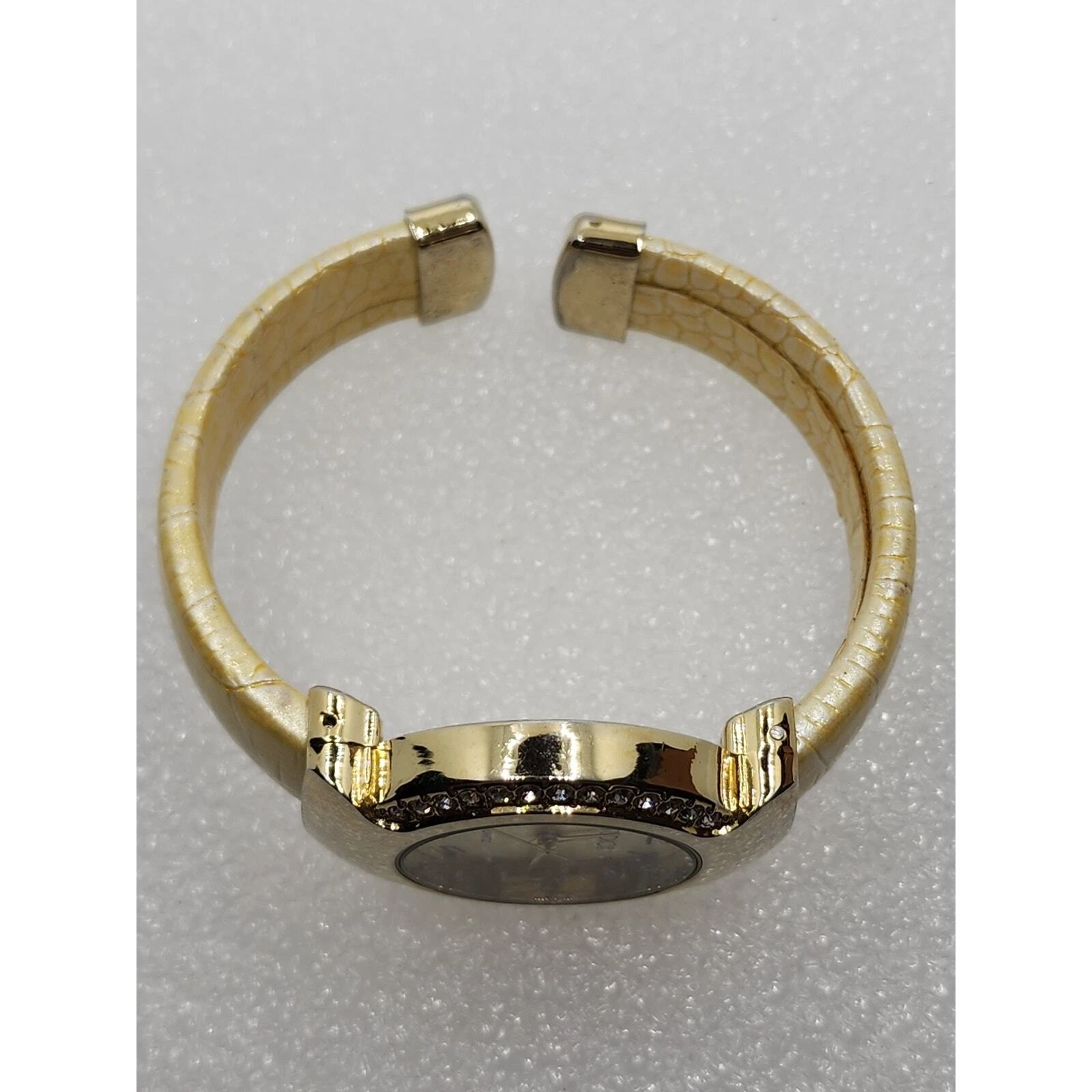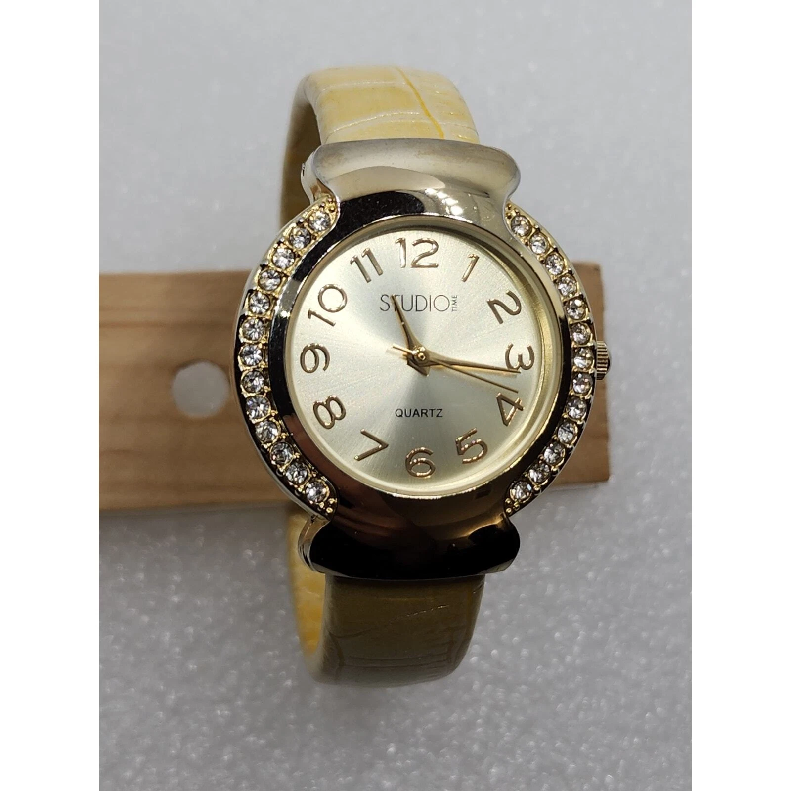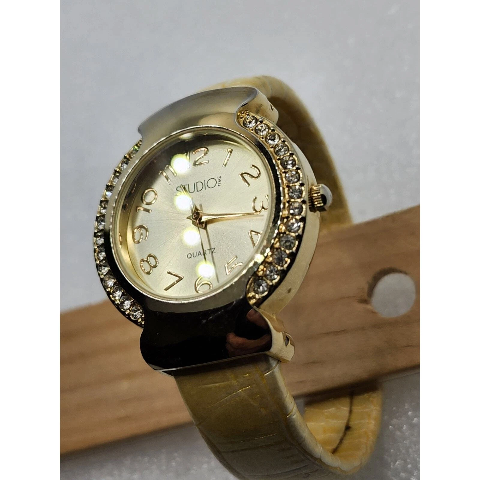 Studio Gold French Mustard Yellow Crystal Gemmed Accent Cuff Bangle Hinged Watch