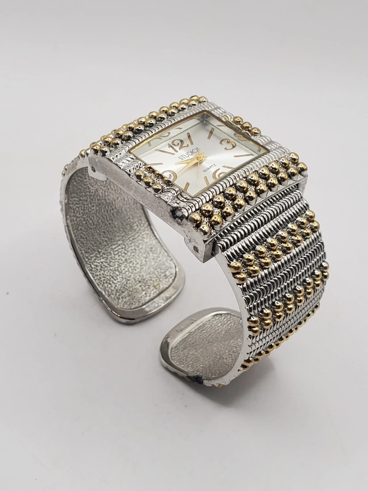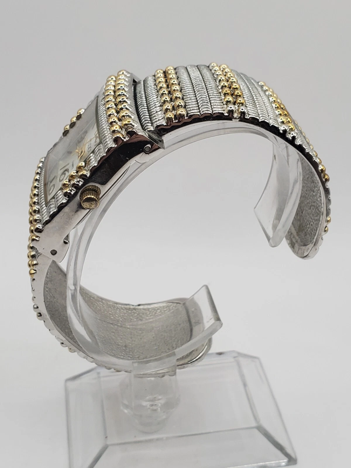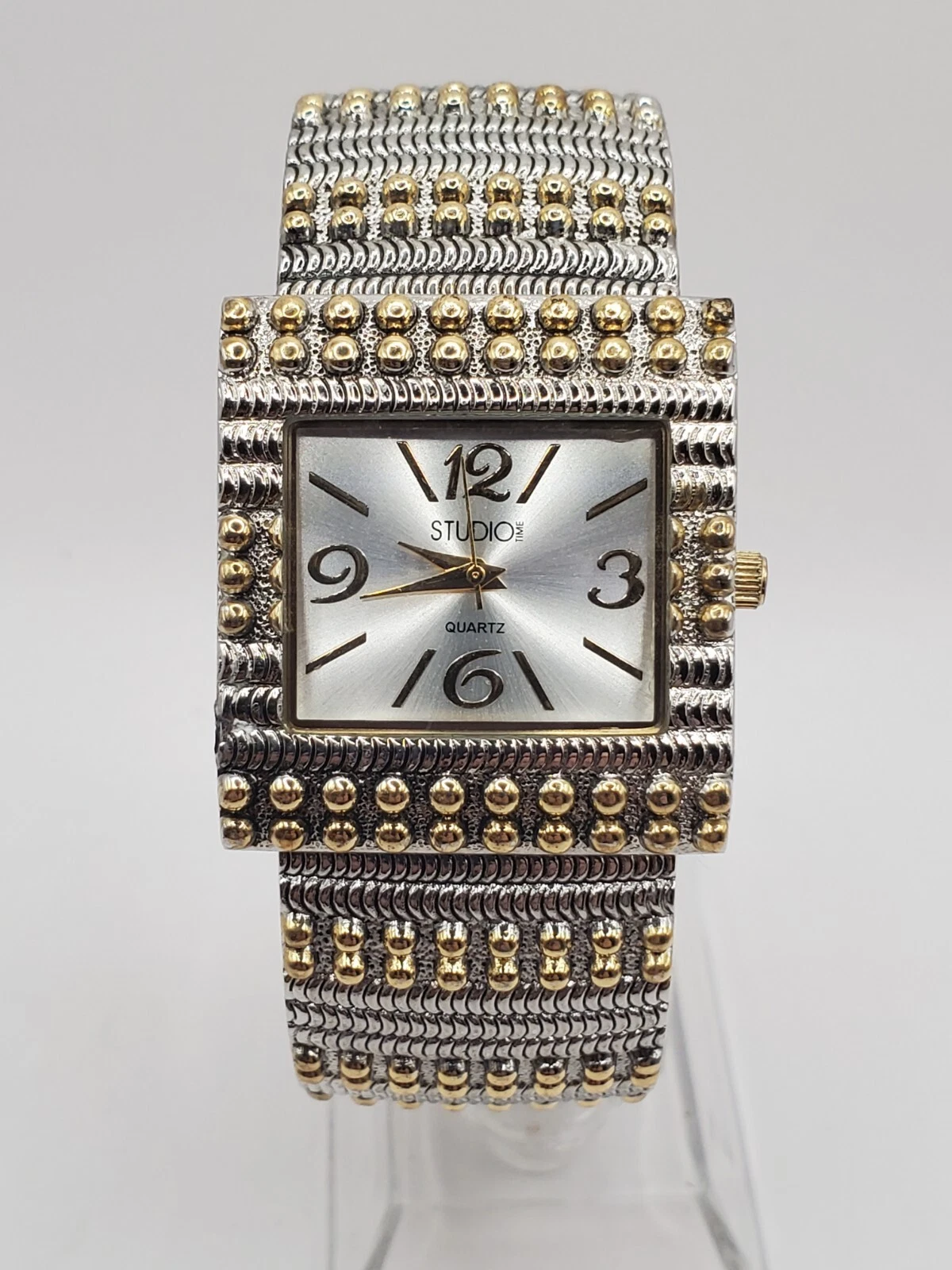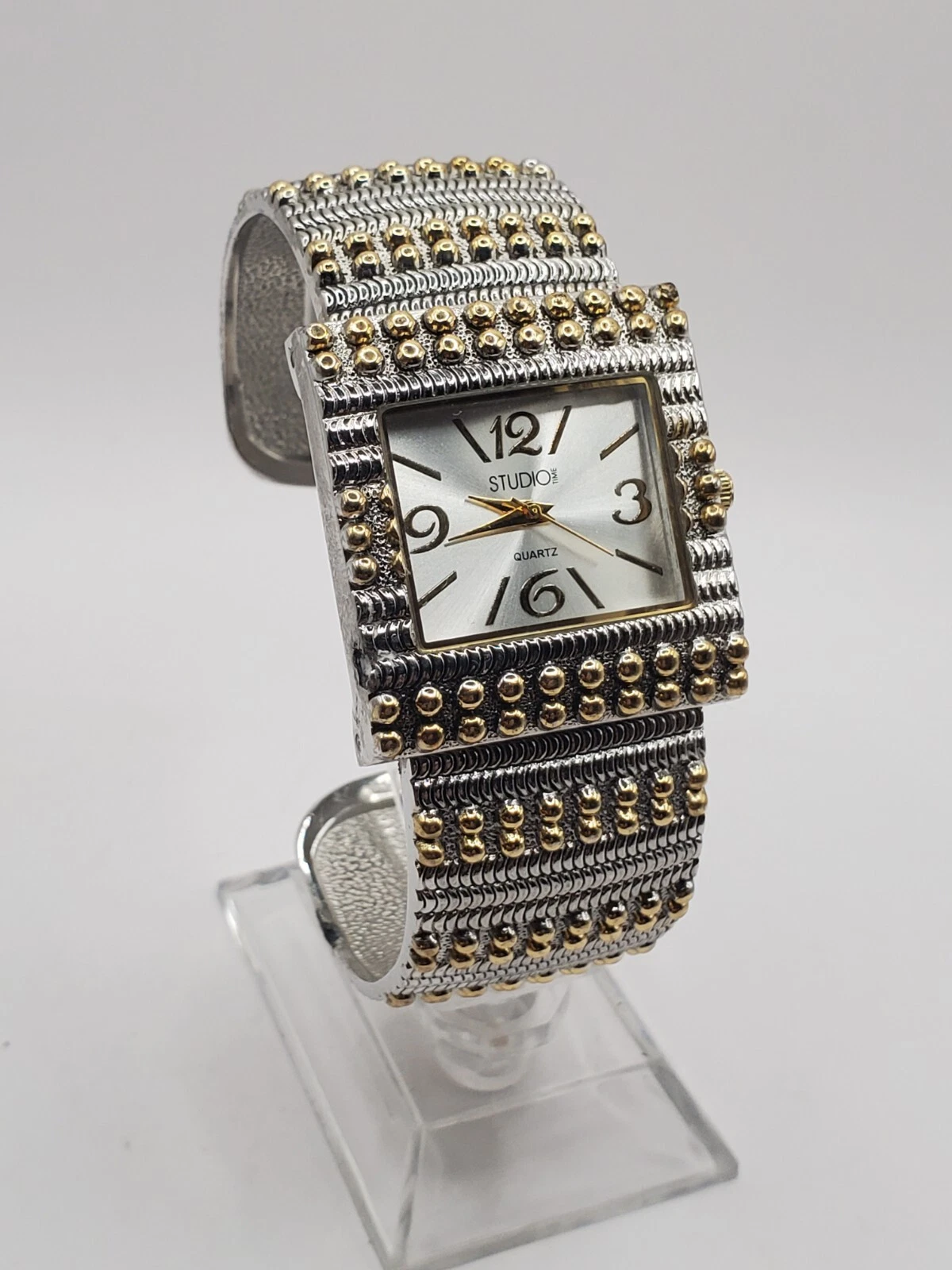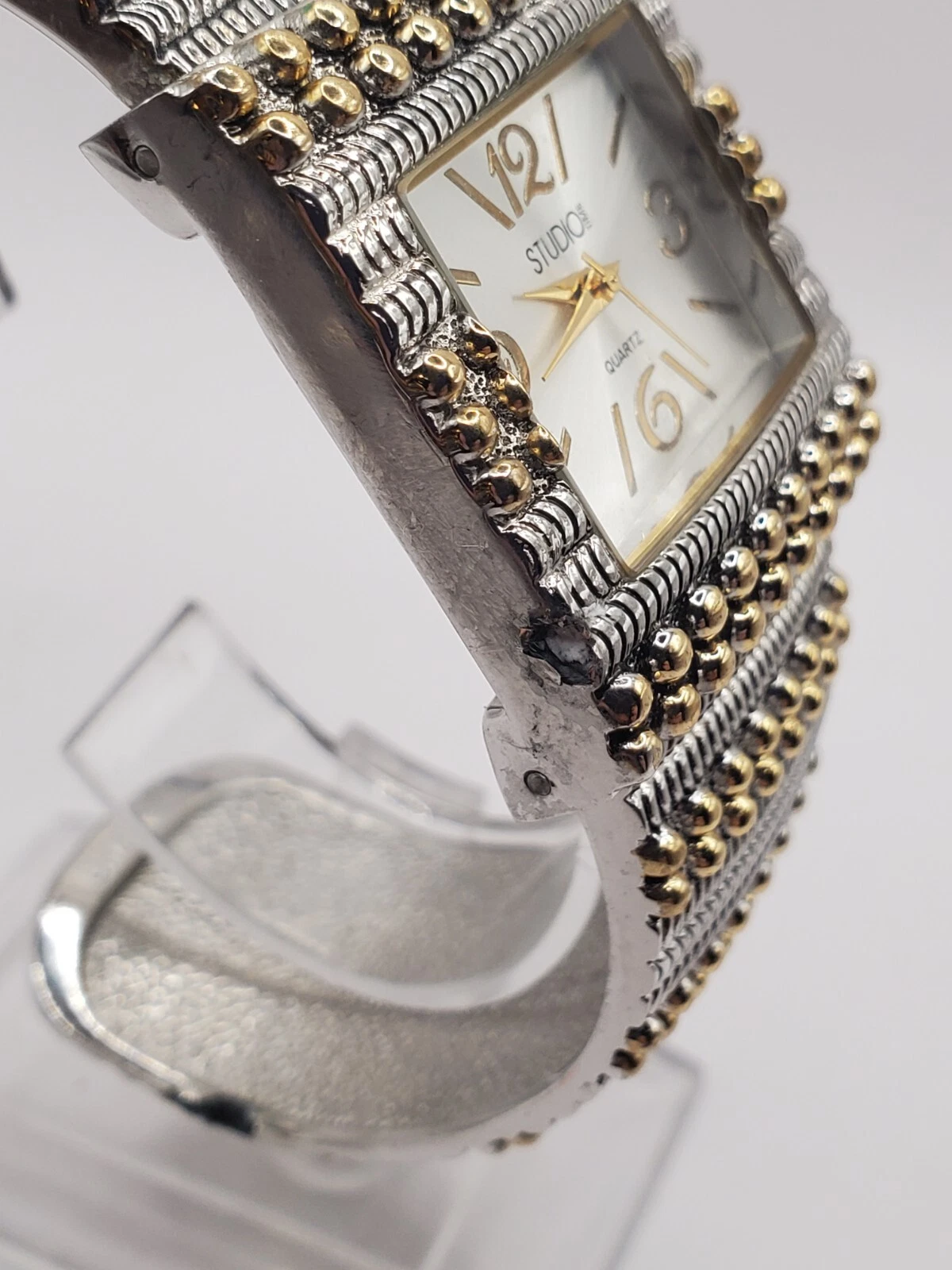 Studio Ladies Fashion Quartz Watch 31mm Square Silver/Gold Tone Cuff Bracelet