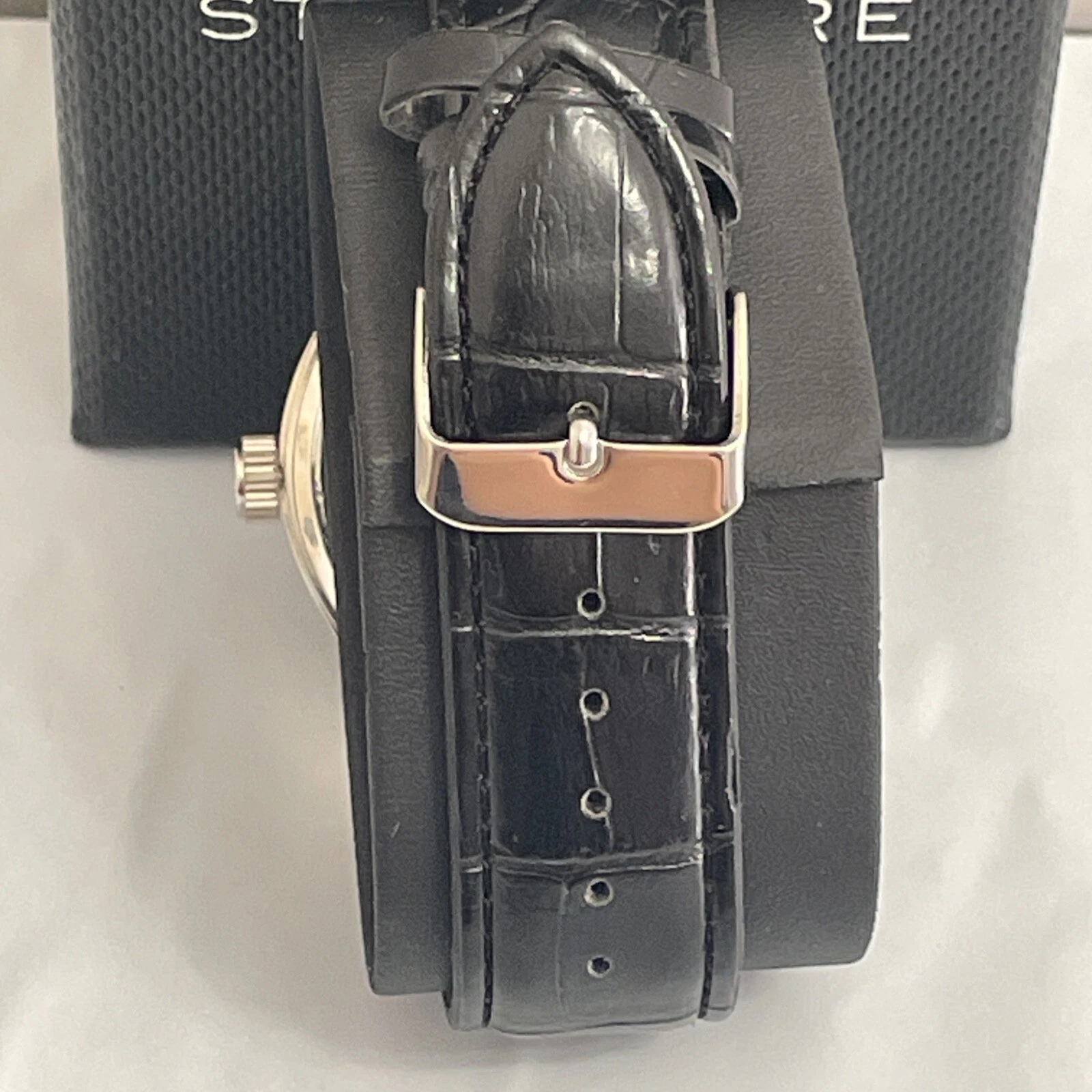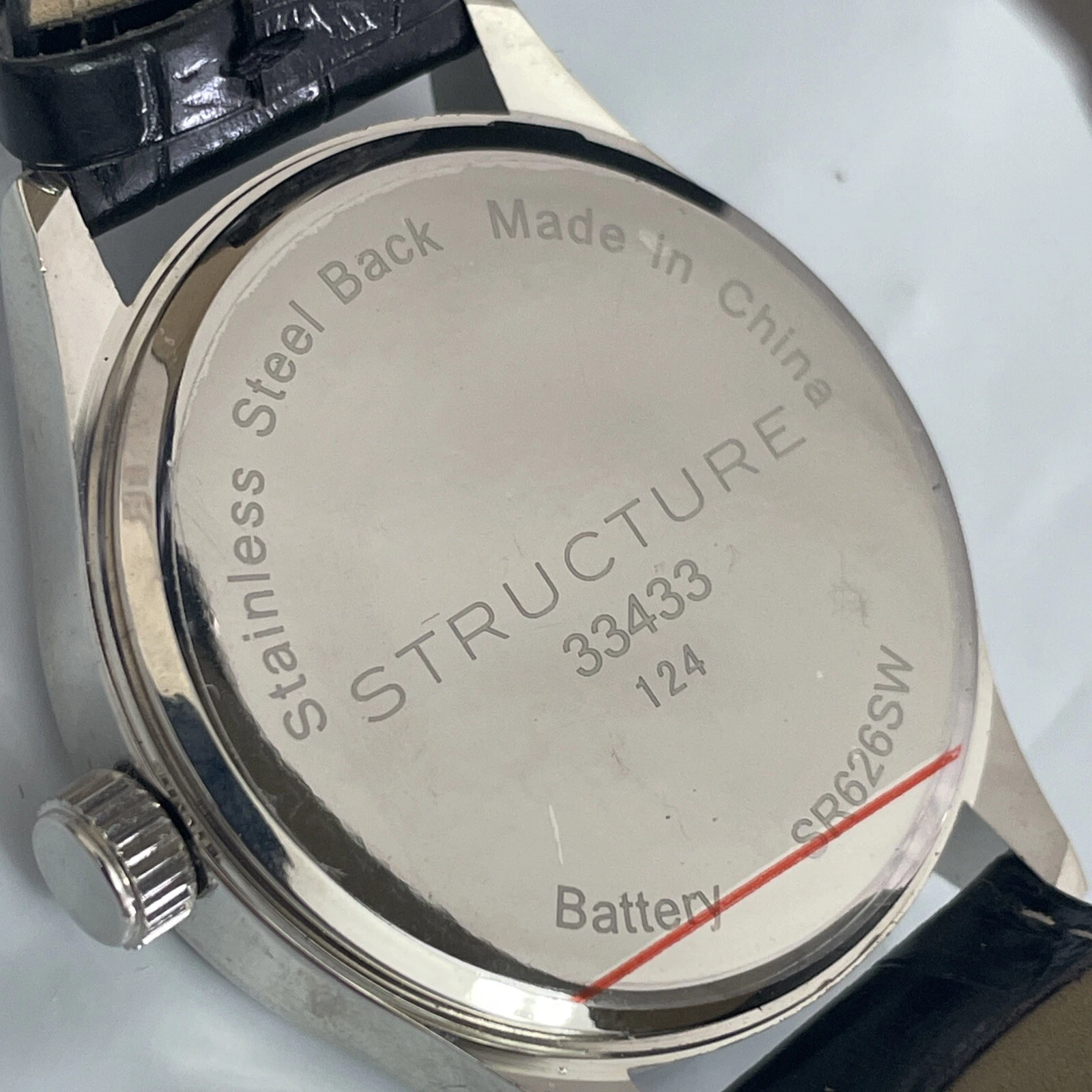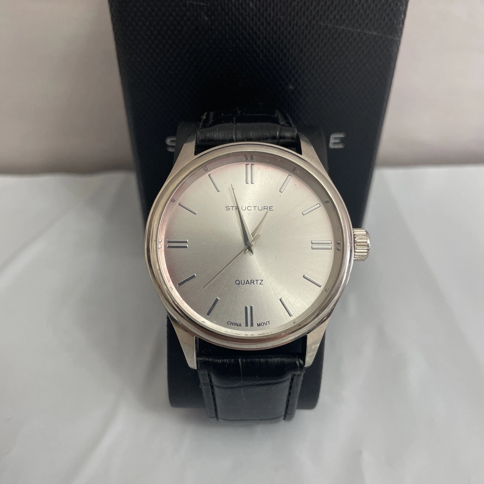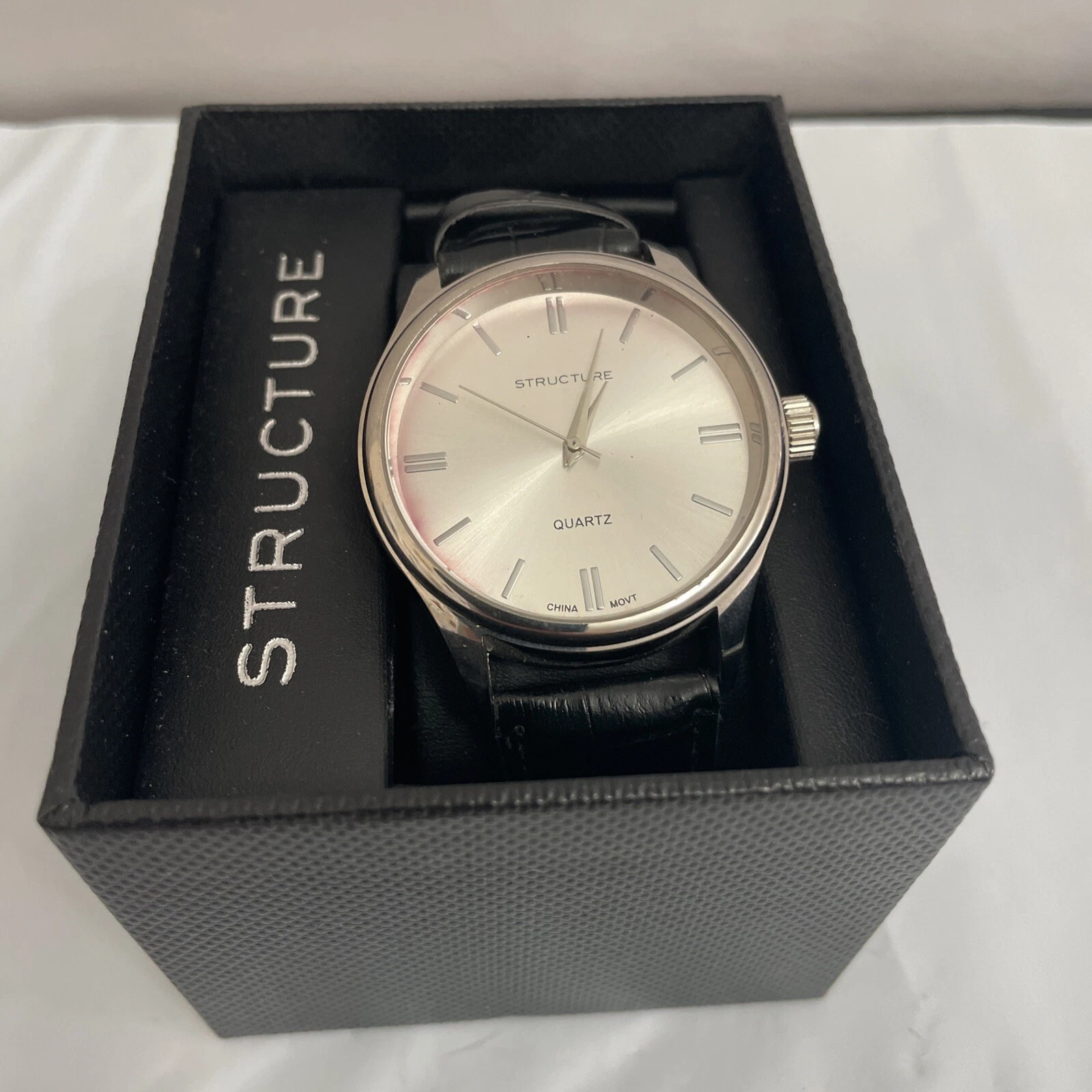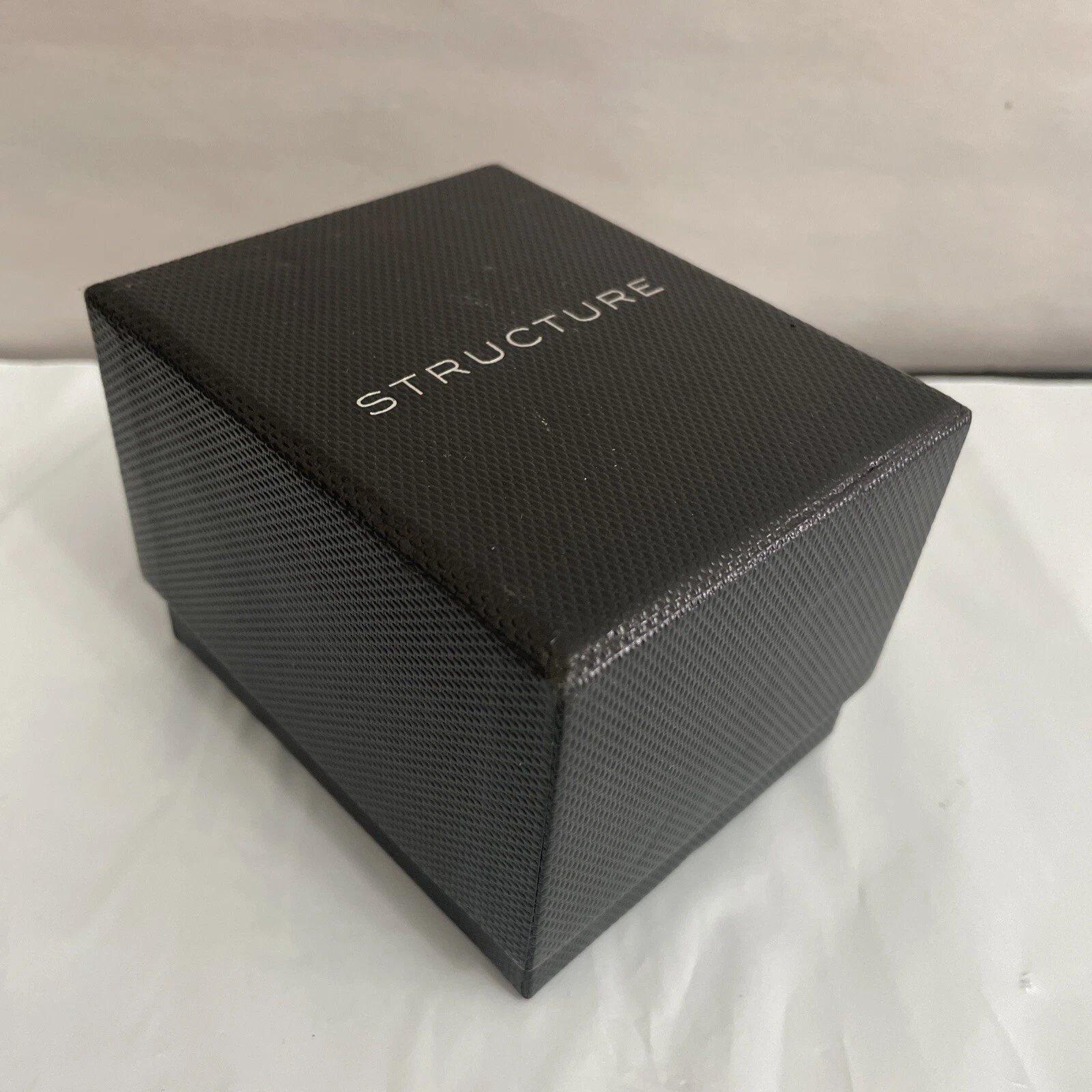 MEN'S STRUCTURE ANALOG QUARTZ WATCH SET BLACK LEATHER BAND ROUND DIAL