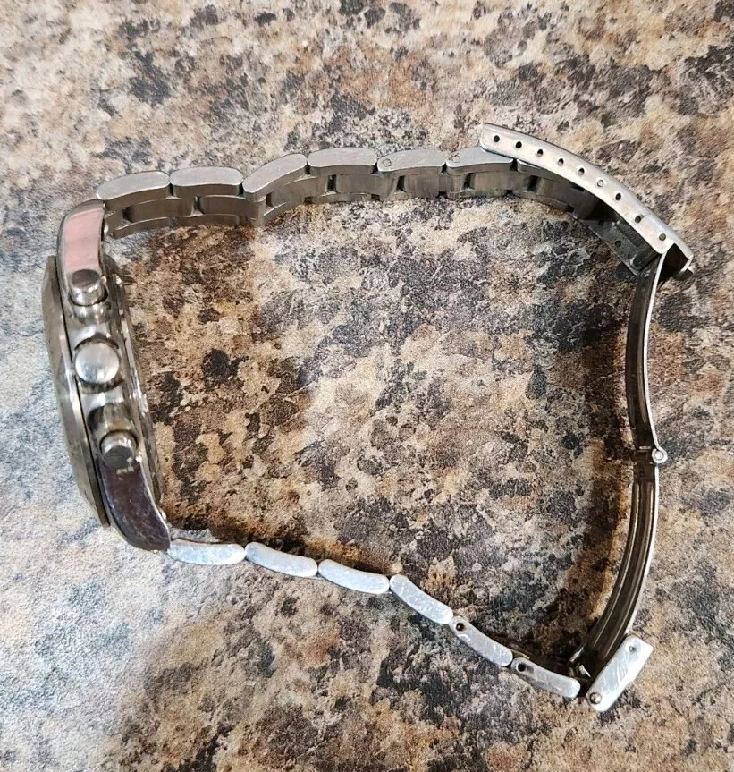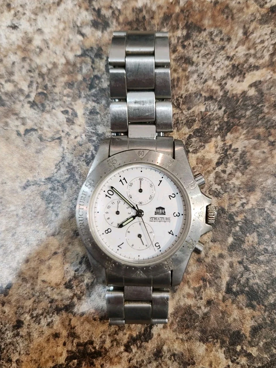 Vintage Structure Mens Chronograph Silver Tone Quartz Watch NEEDS BATTERY