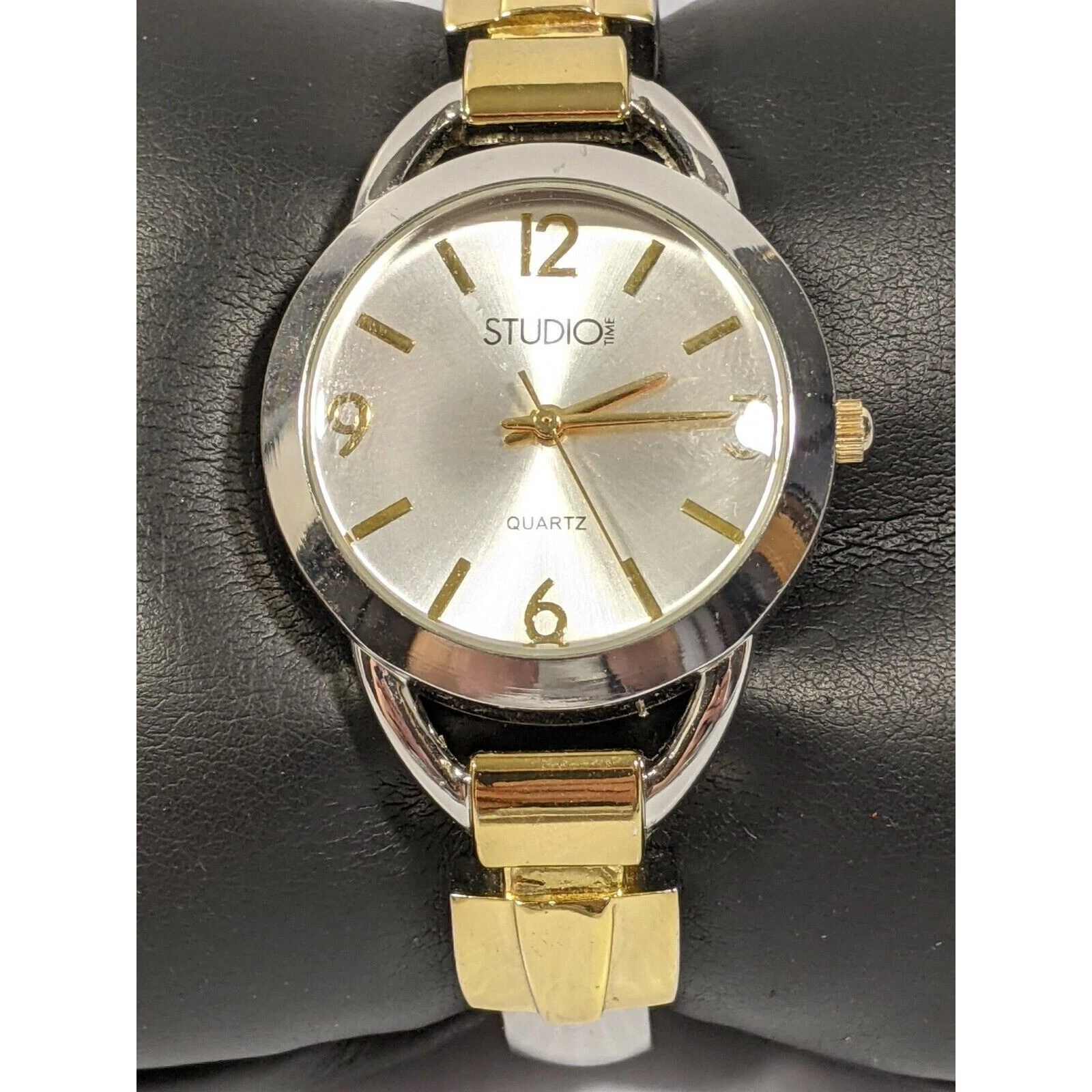 Studio Silver Tone Bar Hinge Bracelet Band Watch 6 Inch