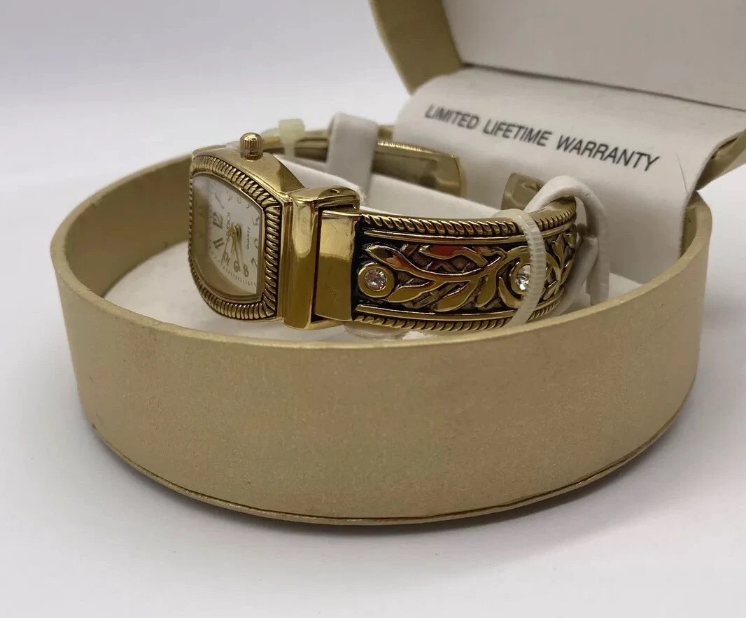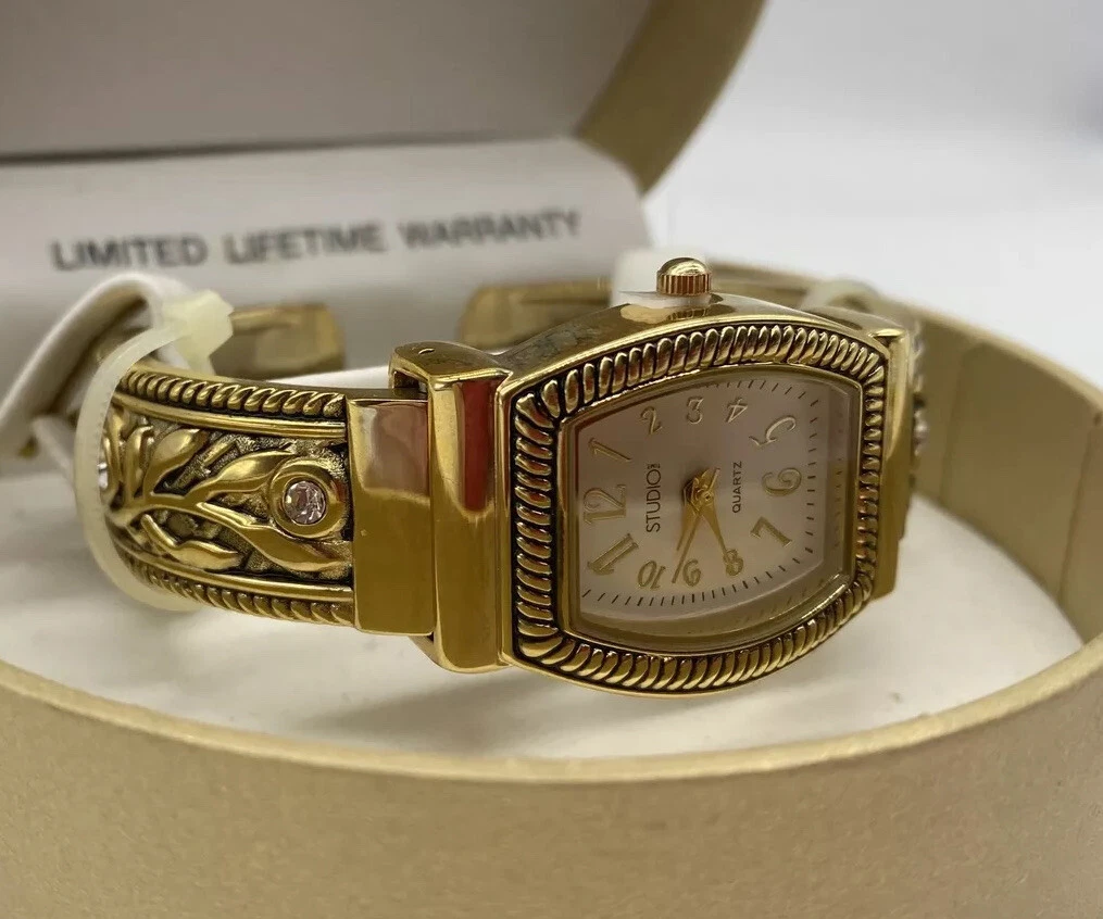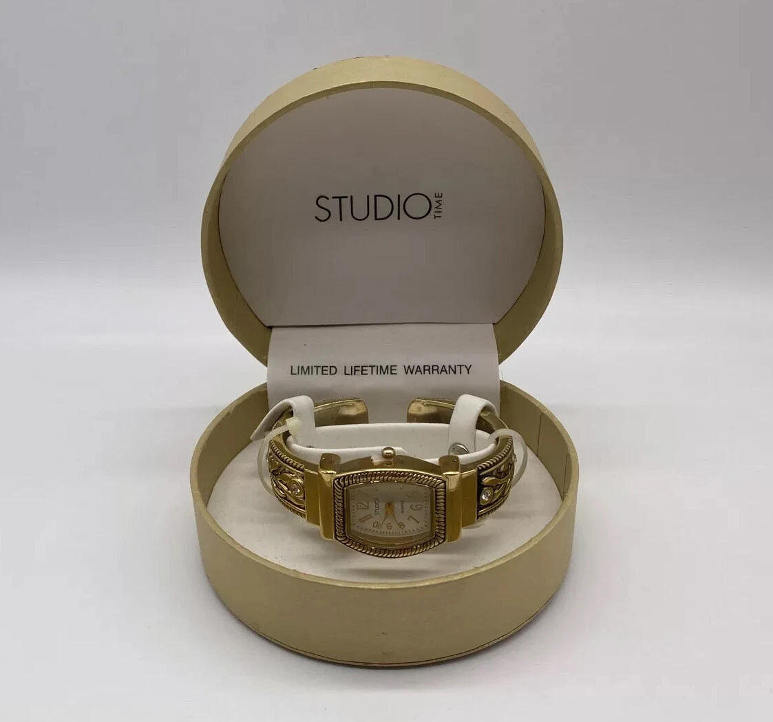 New Studio Time STD2738 Stainless Steel Gold Tone CZ Cuff Band Womens Watch NIB