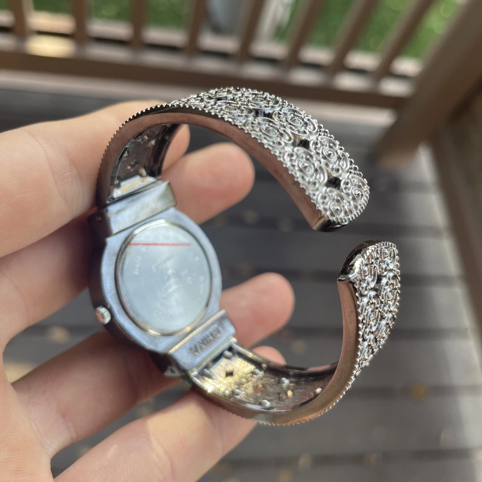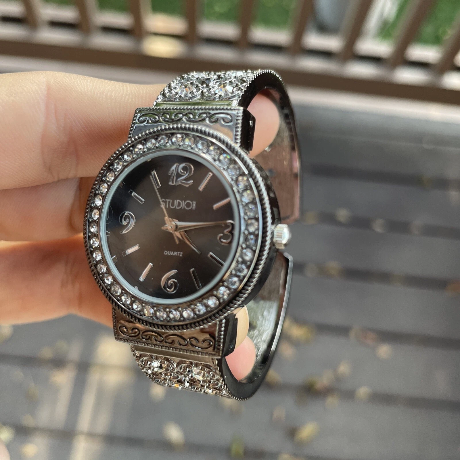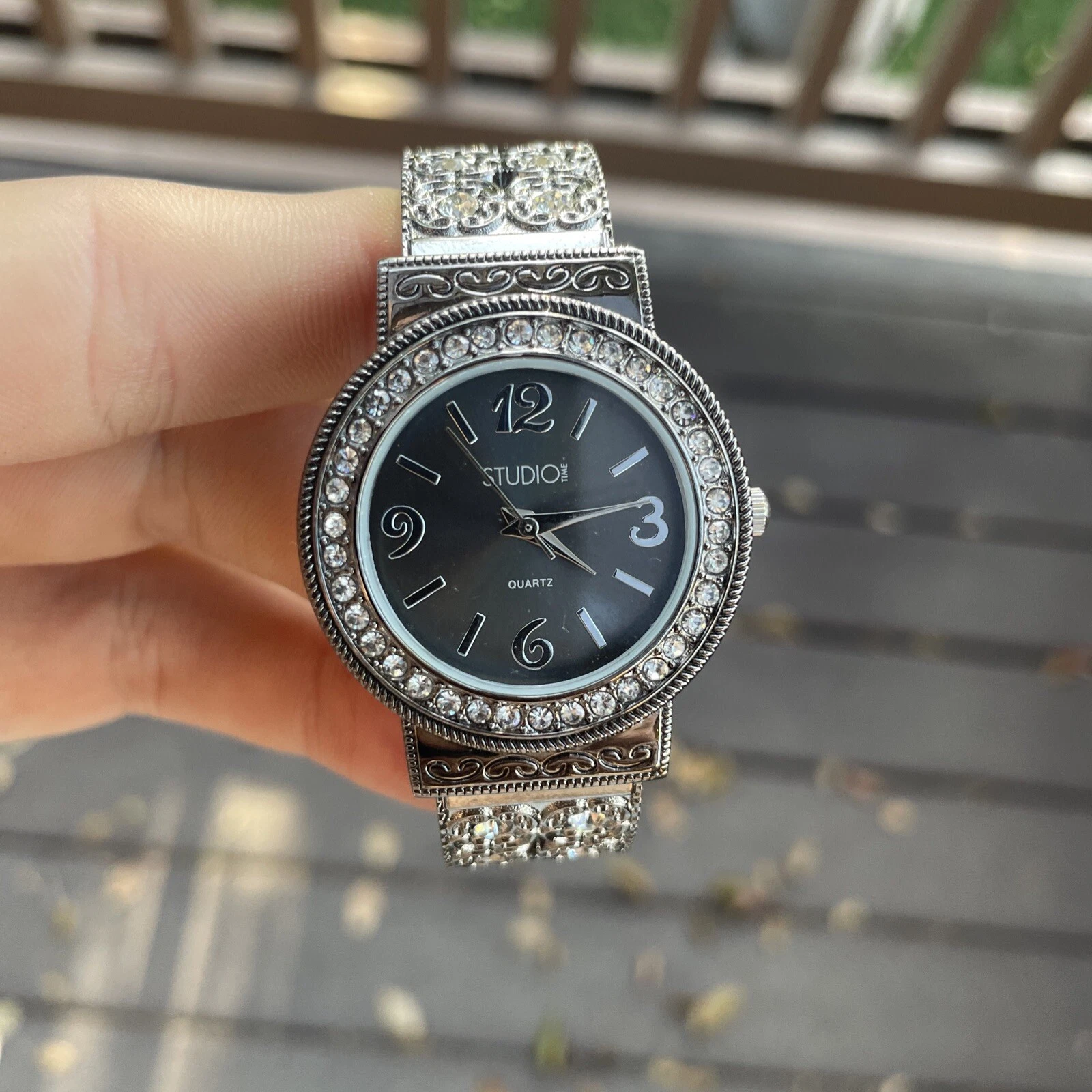 Ladies cute STUDIO bangle watch silver tone band and case with crystals STD4087T