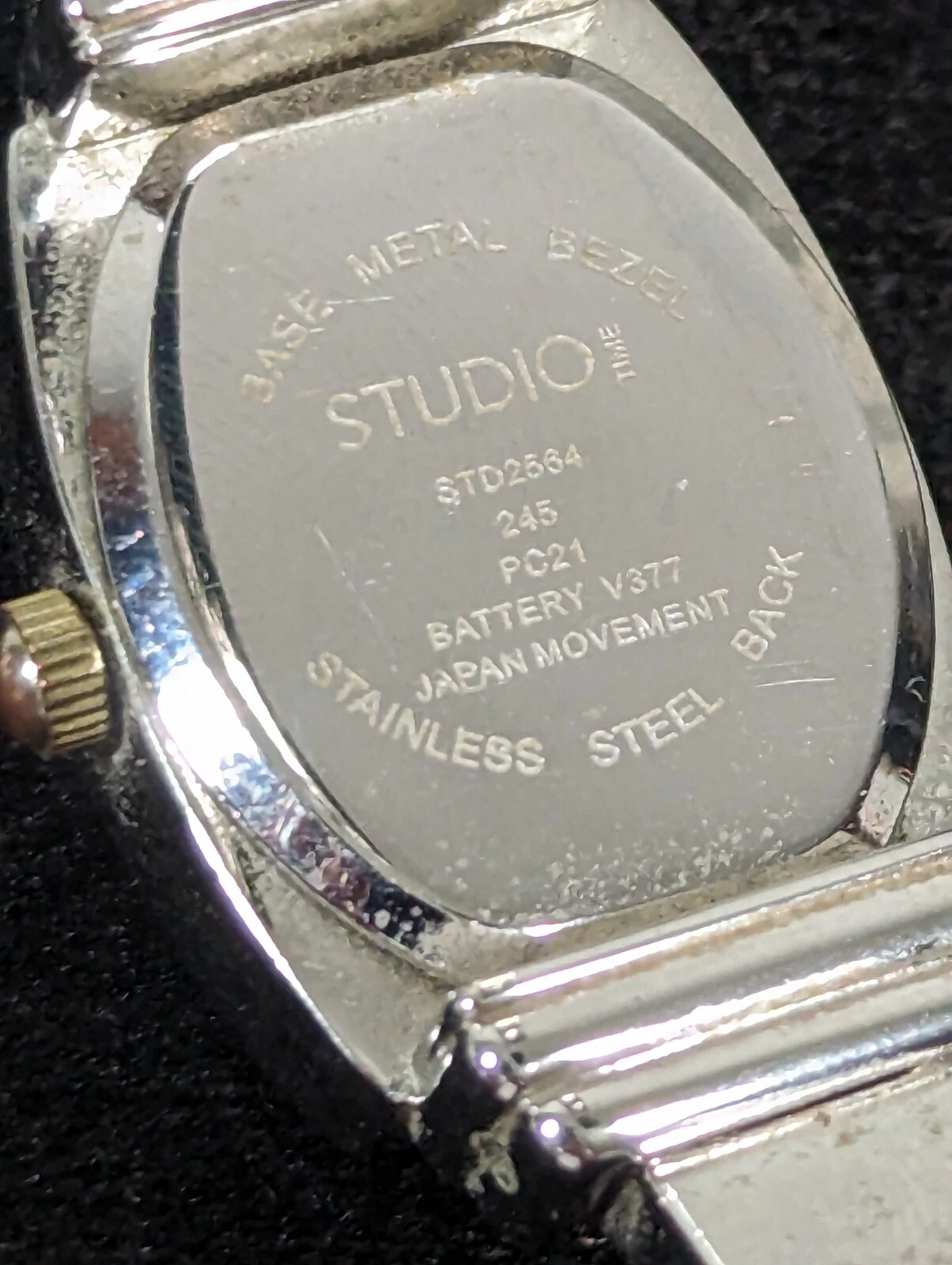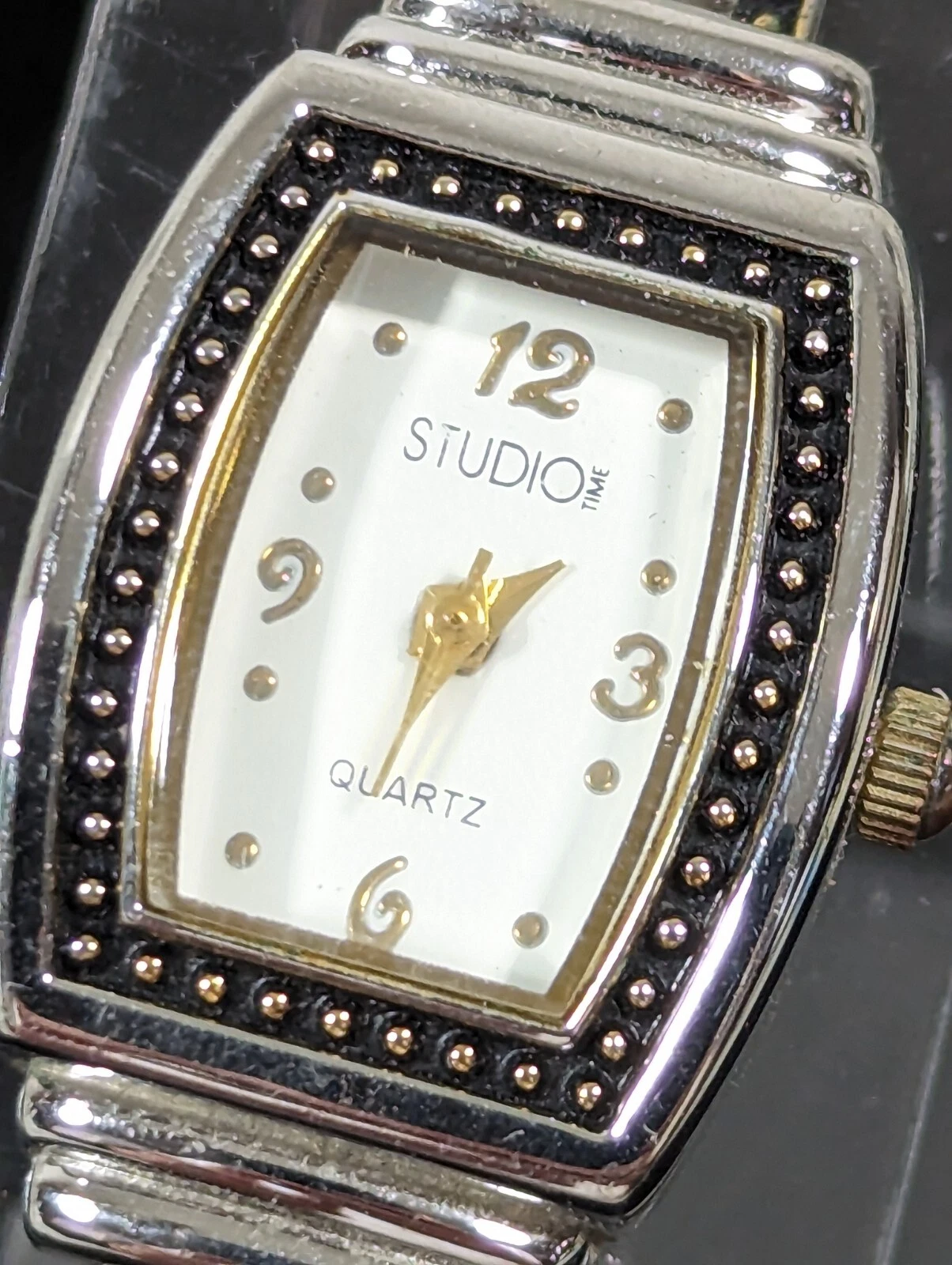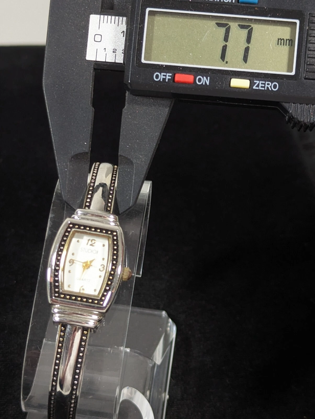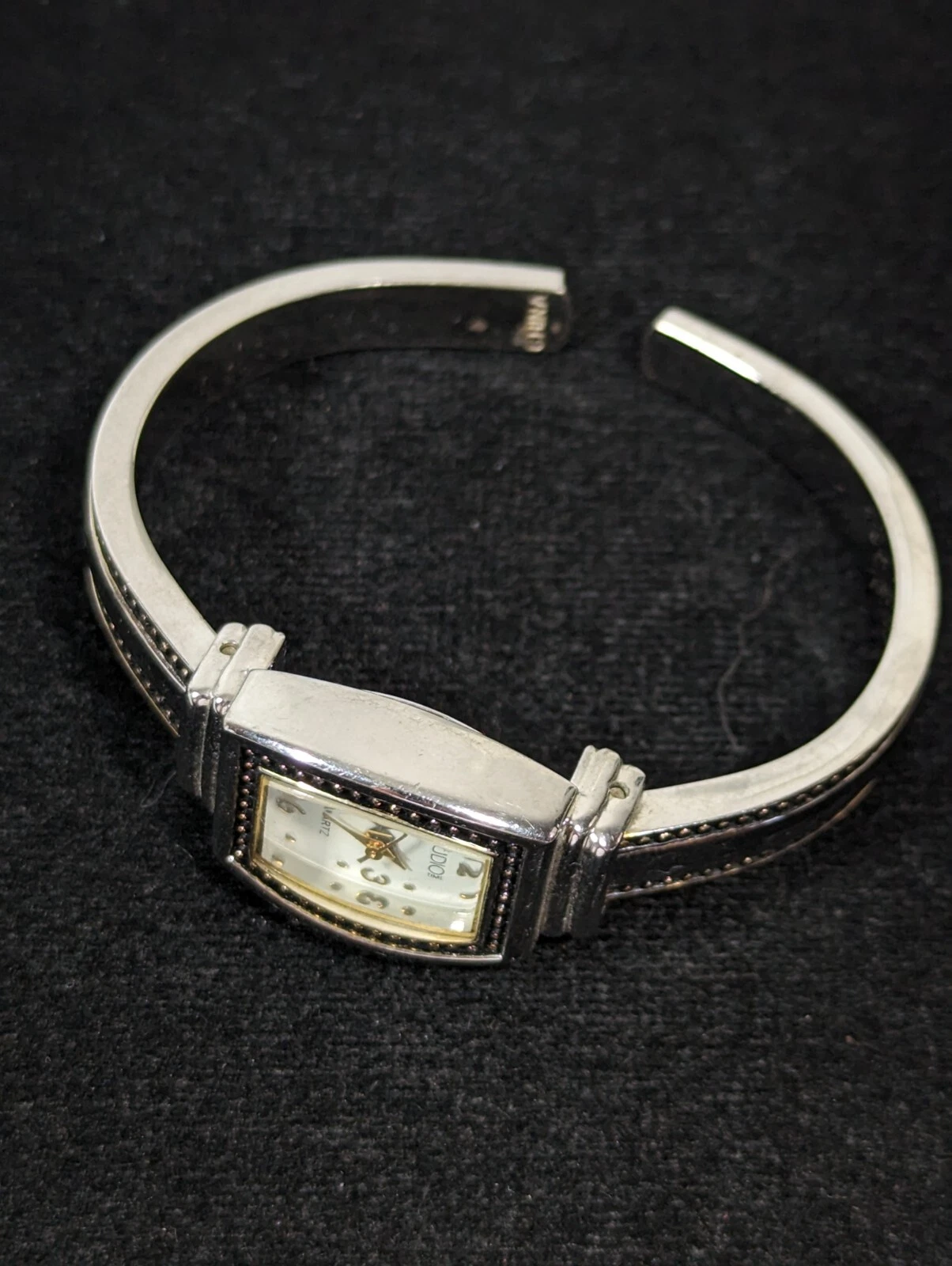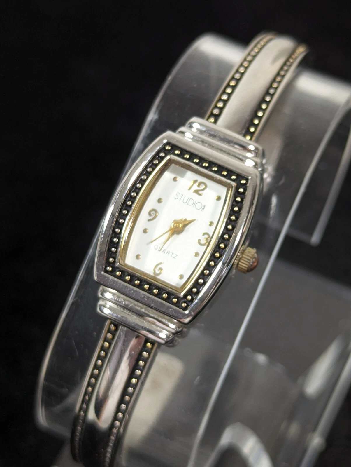 Studio Womans White Dial Silver Tone Hinge Open Cuff Bracelet Band Watch 6.5 In