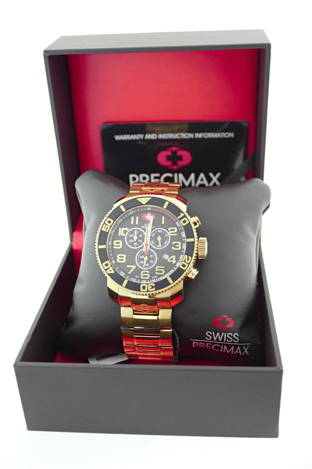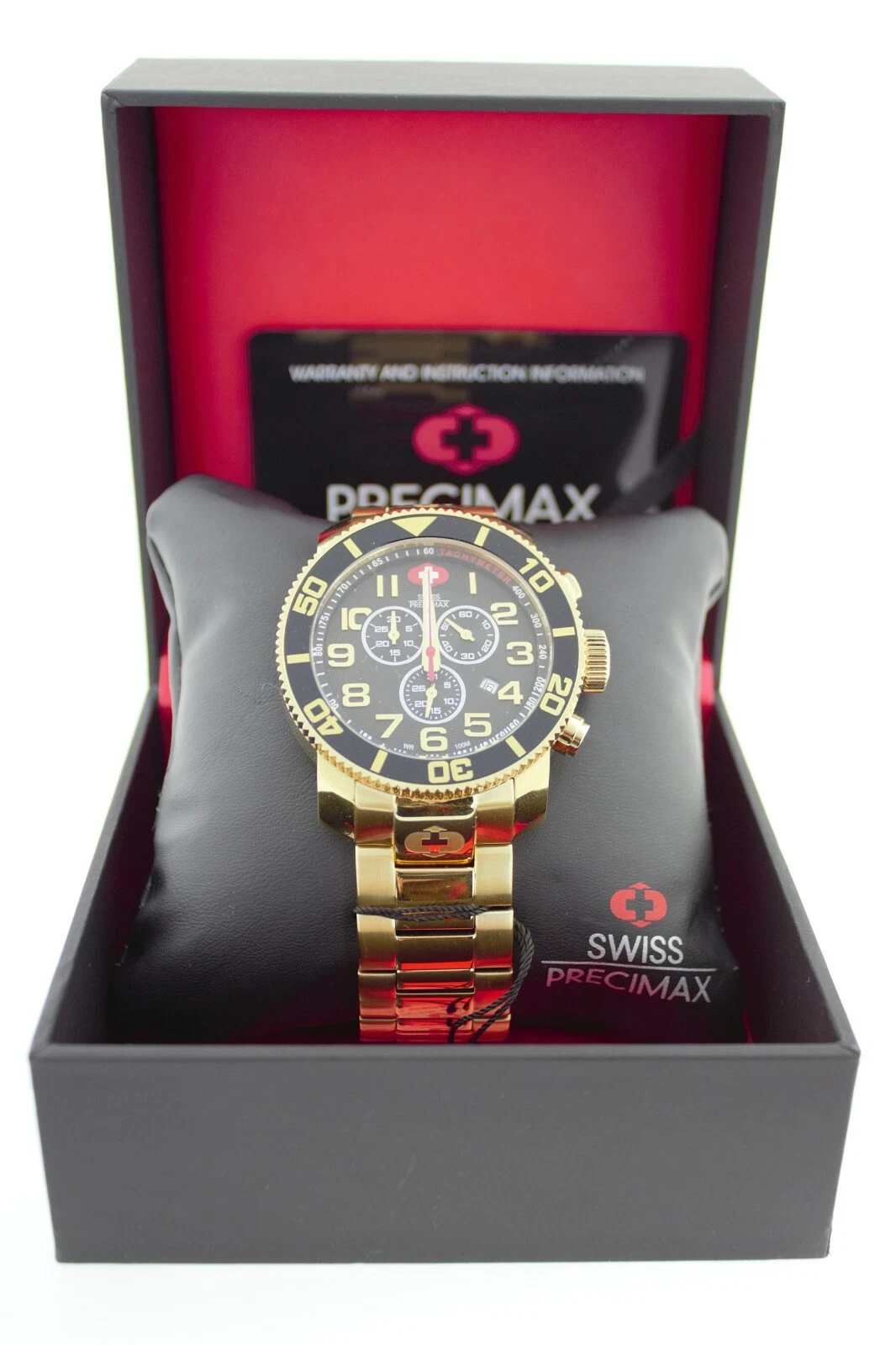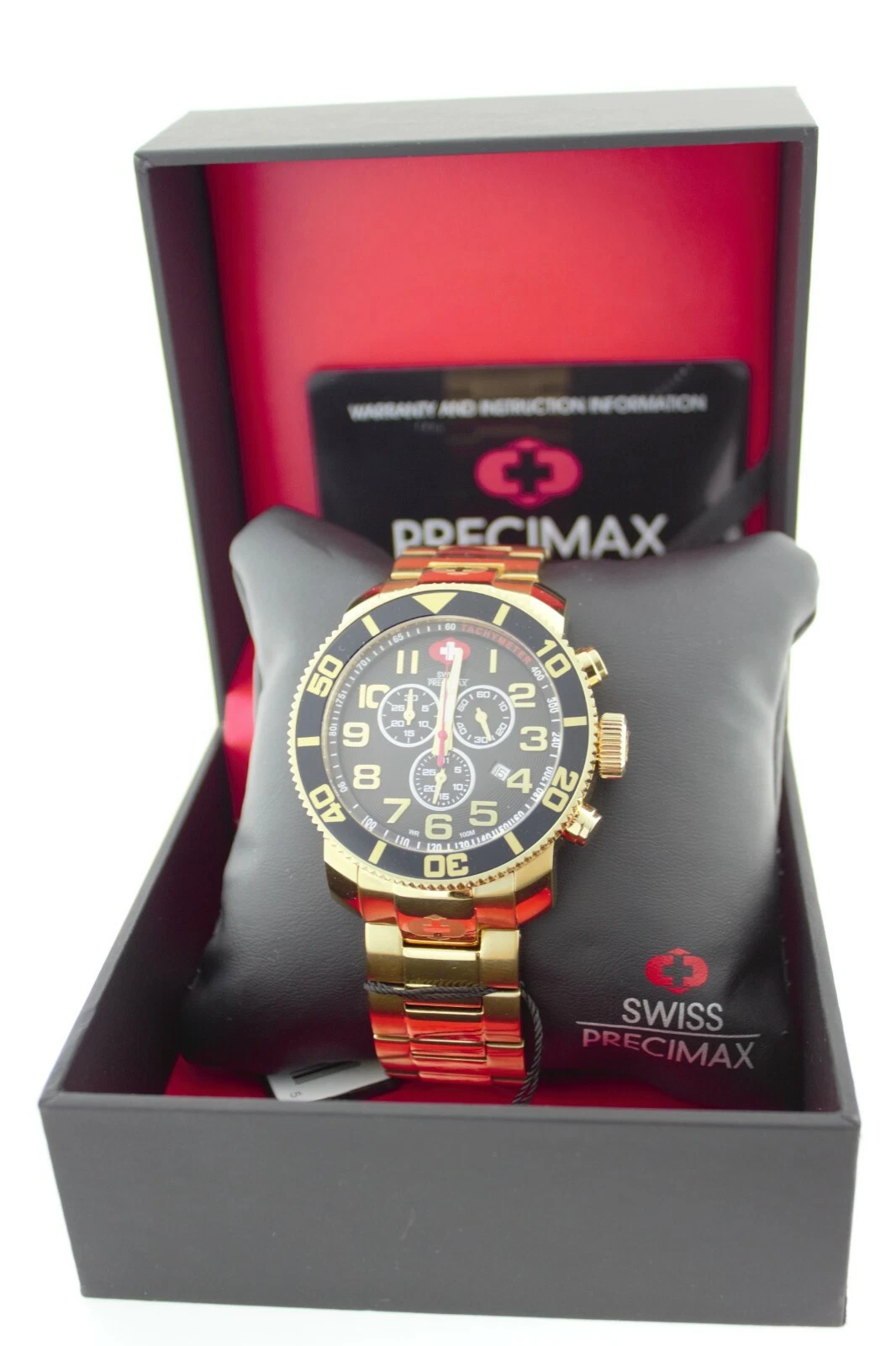 Swiss Precimax Men's Verto Pro SP13042 Black Dial with Gold Stainless Steel Band