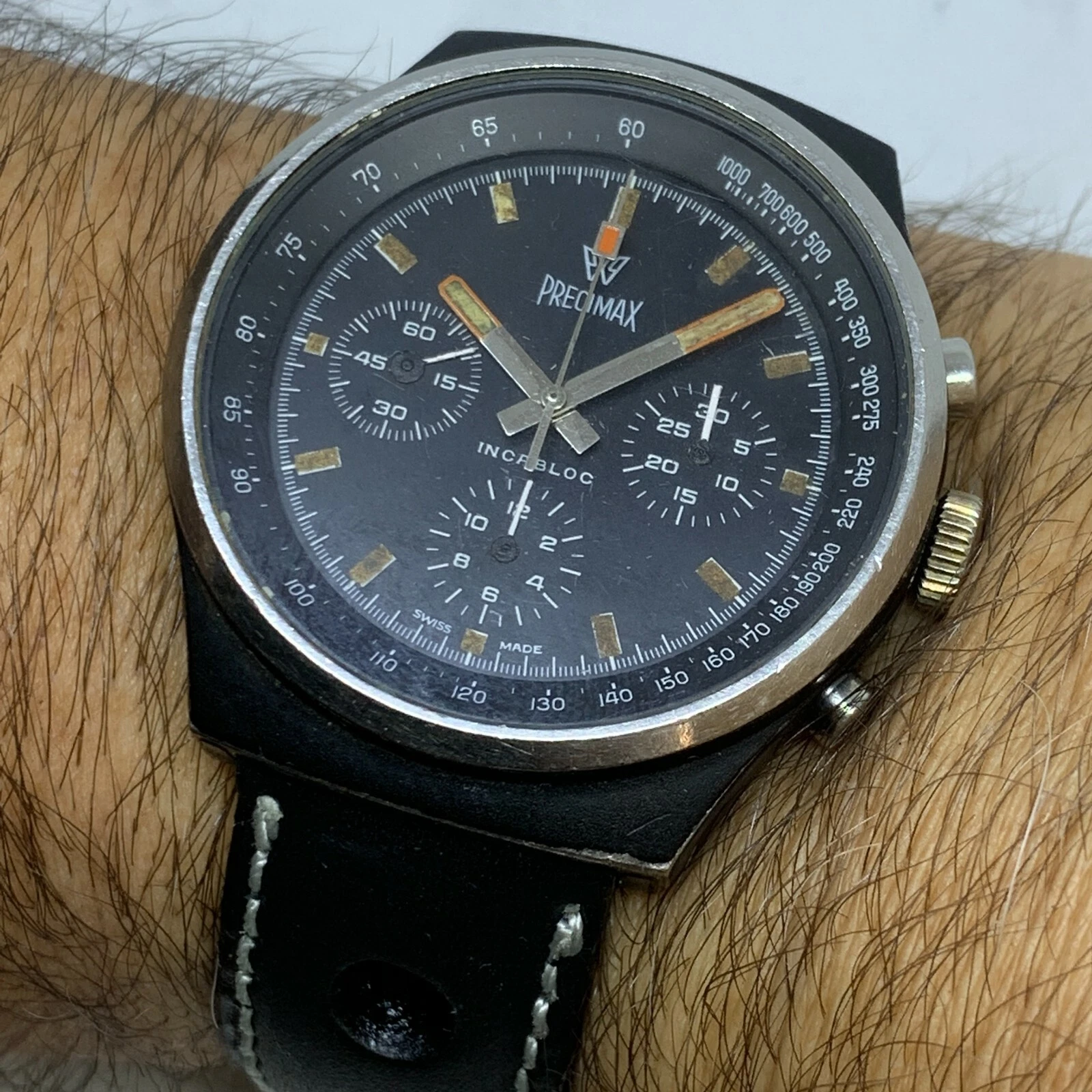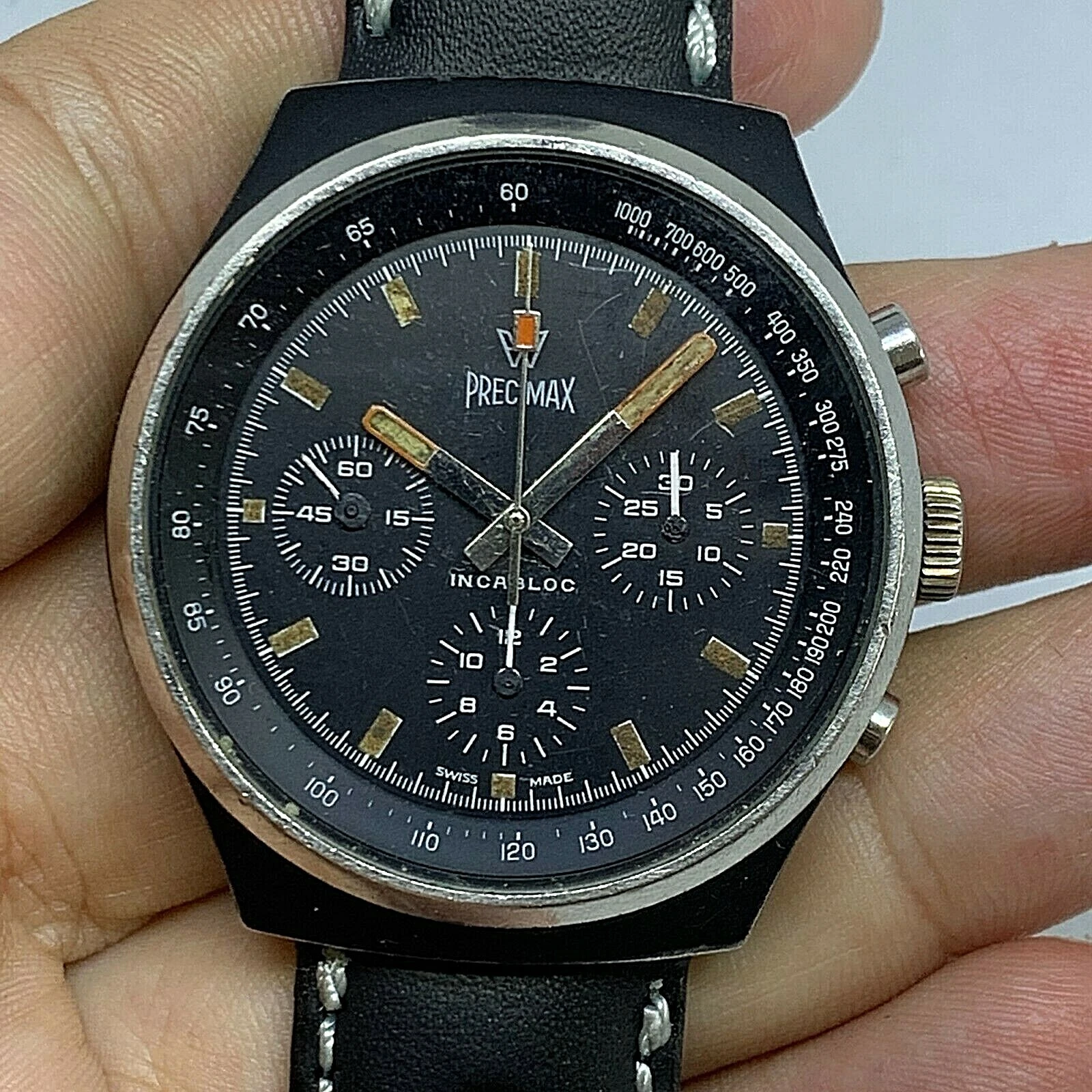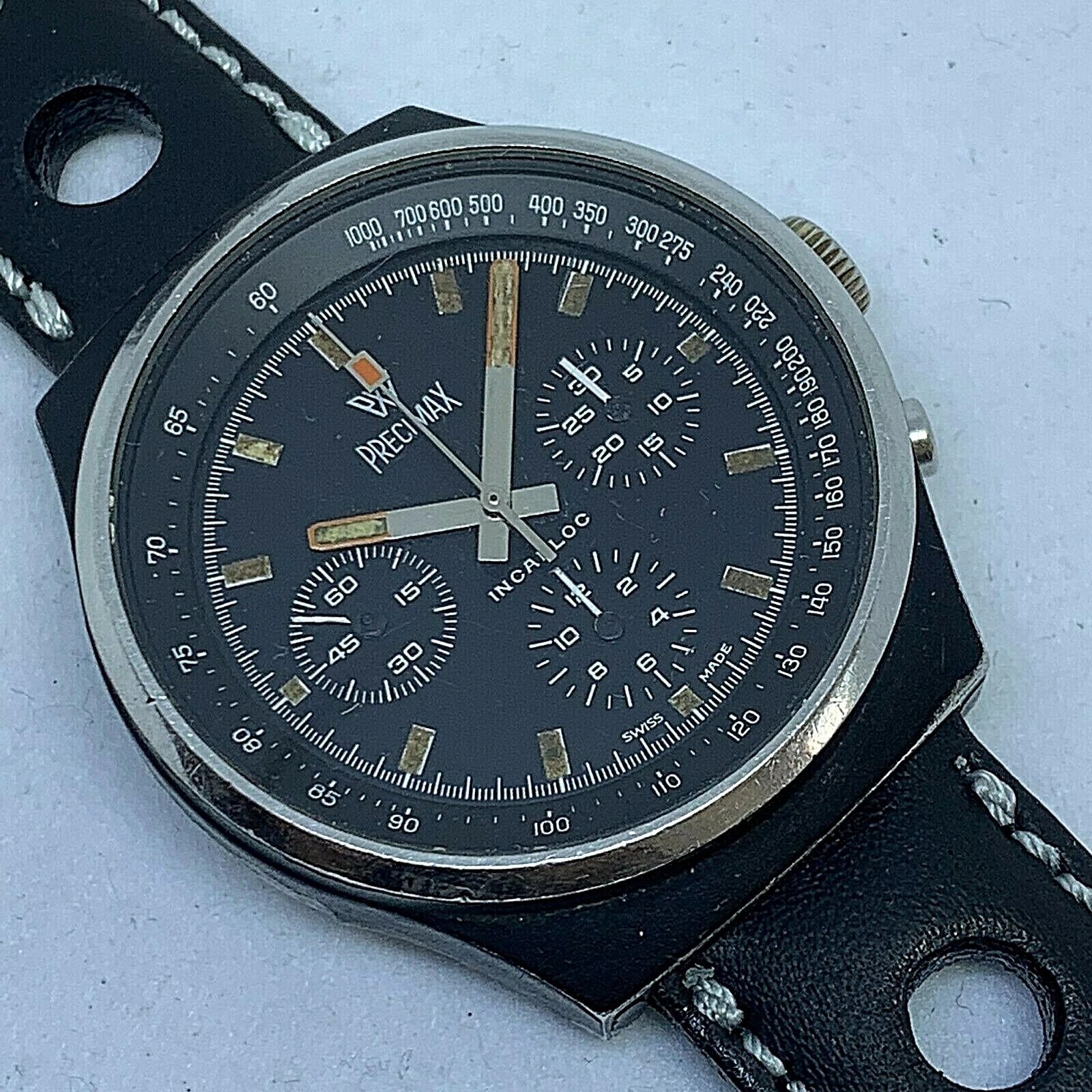 RARE VINTAGE PRECIMAX PVD BLACK MANUAL WIND CHRONOGRAPH VALJOUX 7736