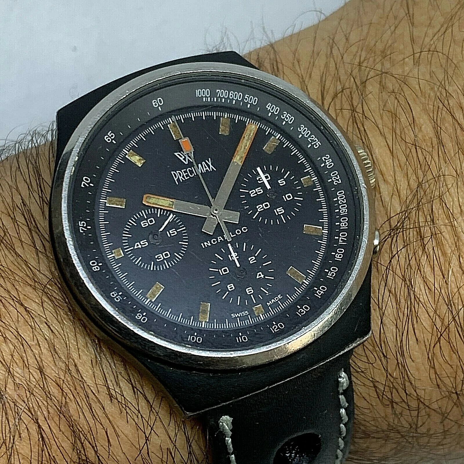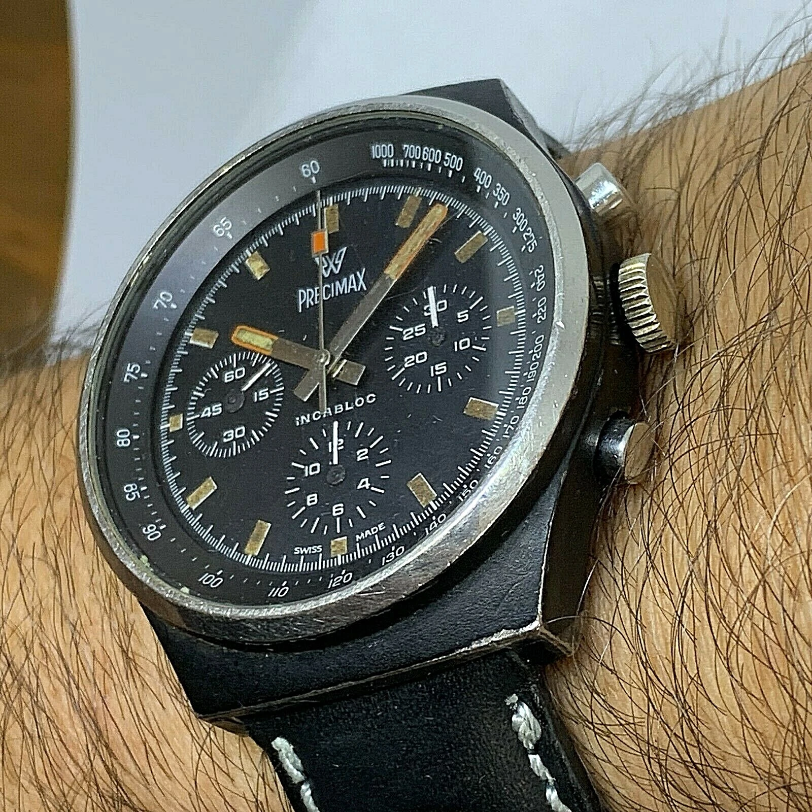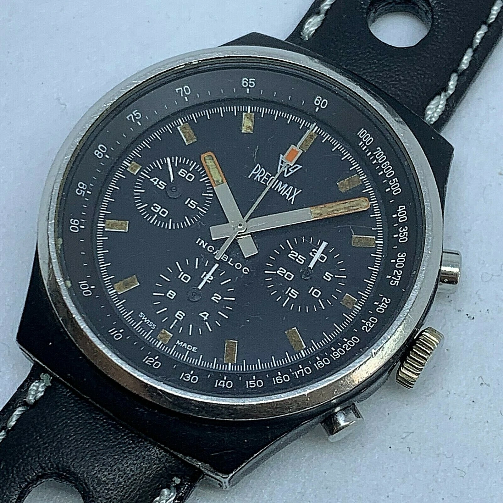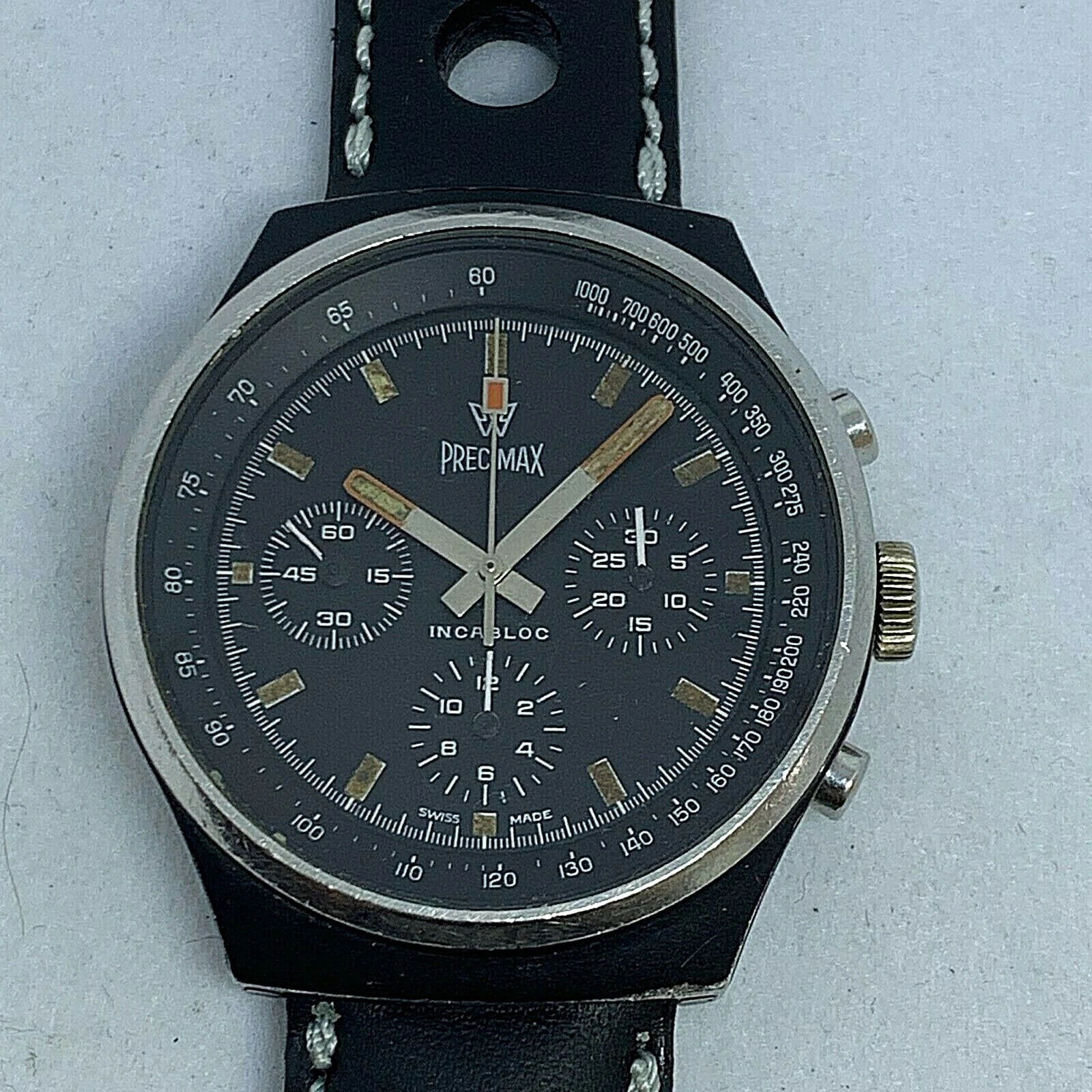 RARE VINTAGE PRECIMAX PVD BLACK MANUAL WIND CHRONOGRAPH VALJOUX 7736
