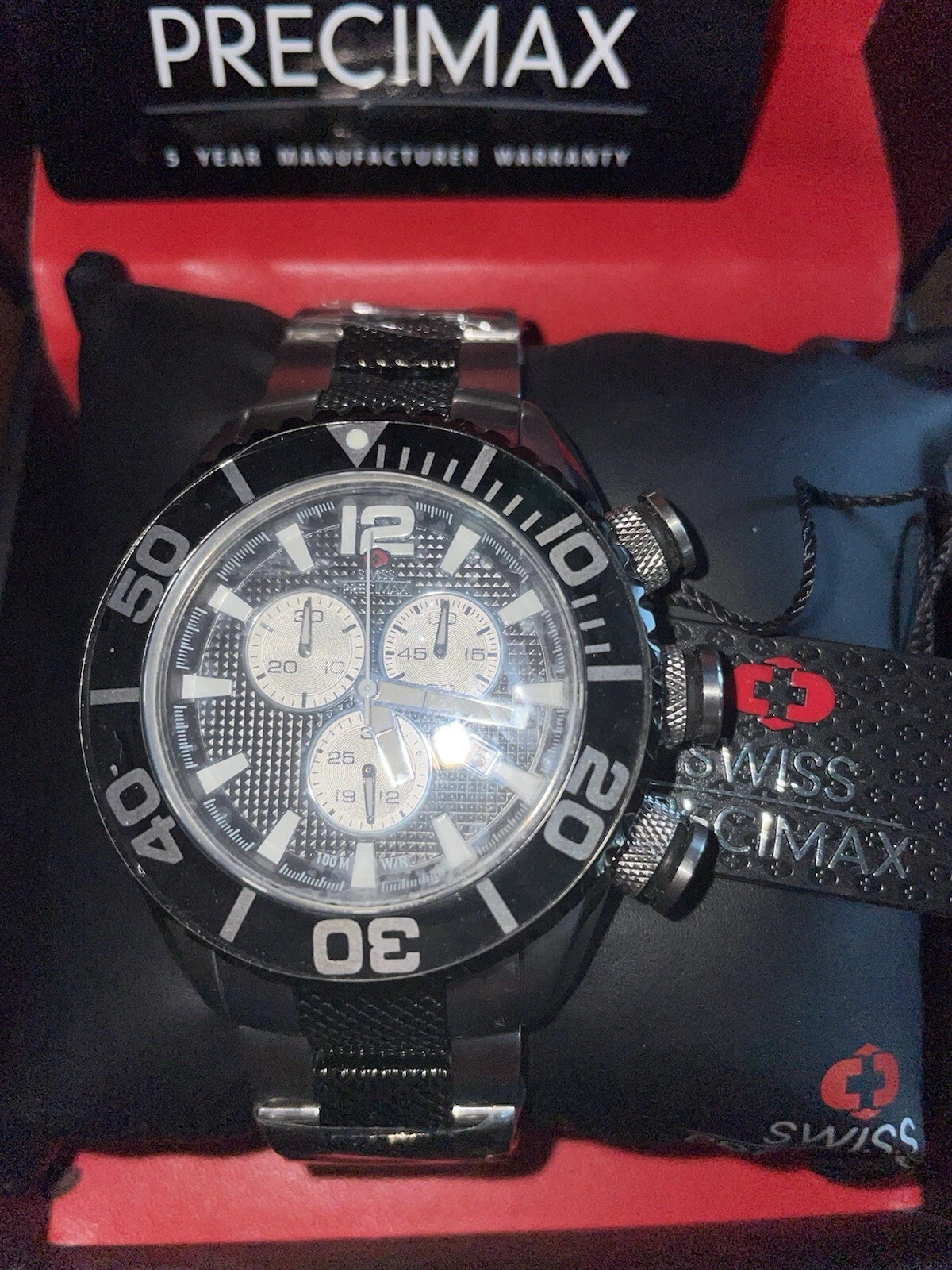 Swiss Precimax Black Dial Stainless Steel Model SP12163 New Watch Org.box Papers