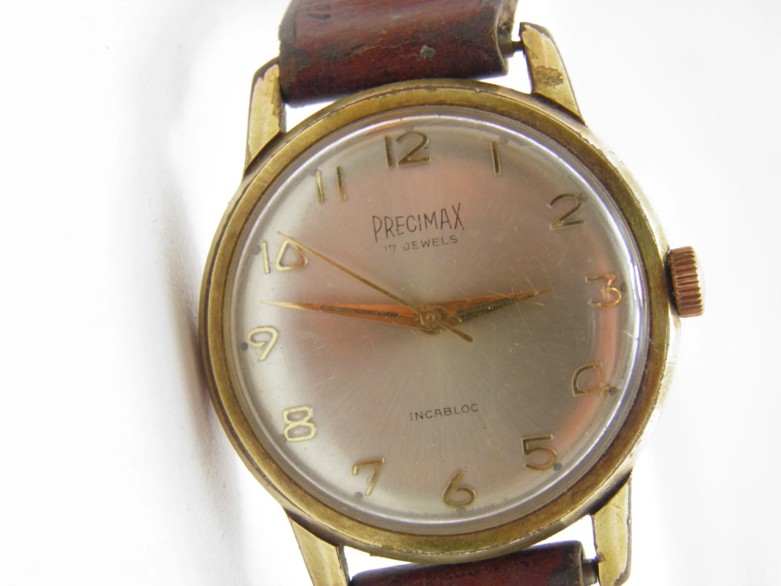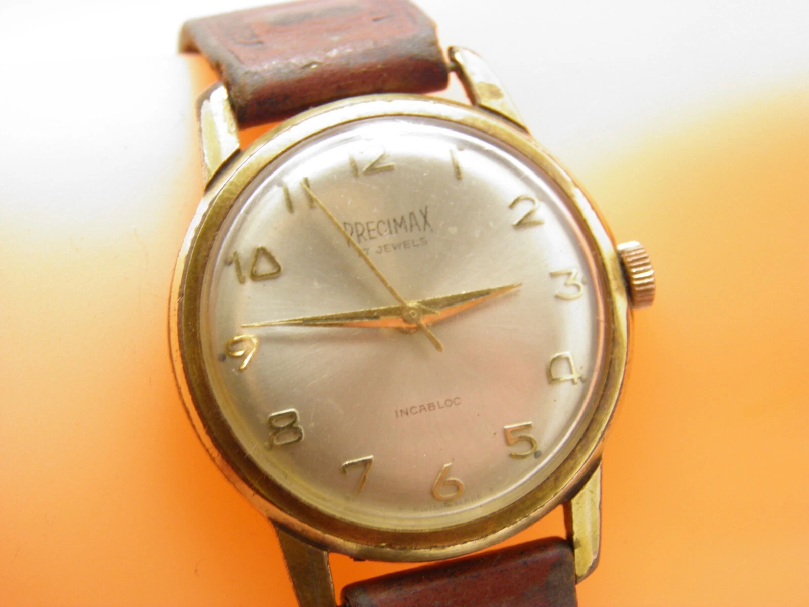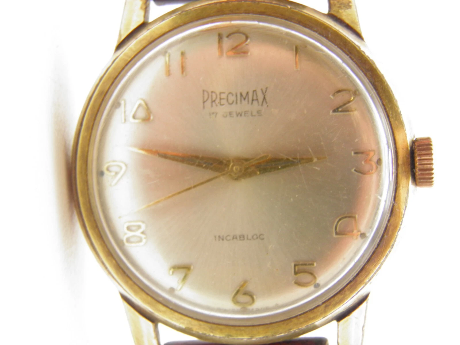 Vintage Precimax Gold Wristwatch 17 Jewels Swiss ETA c1950s Working Condition