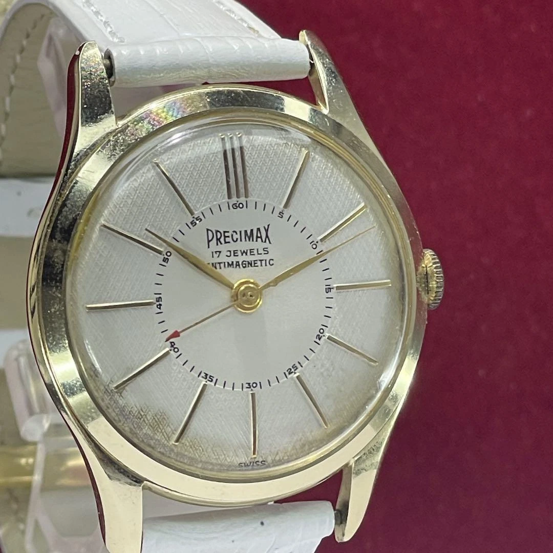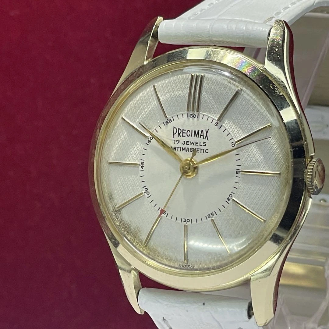 PRECIMAX MANUAL WIND SWISS-MADE 17 JEWELS MEN'S WRISTWATCH ANTIQUE 60S ROUND