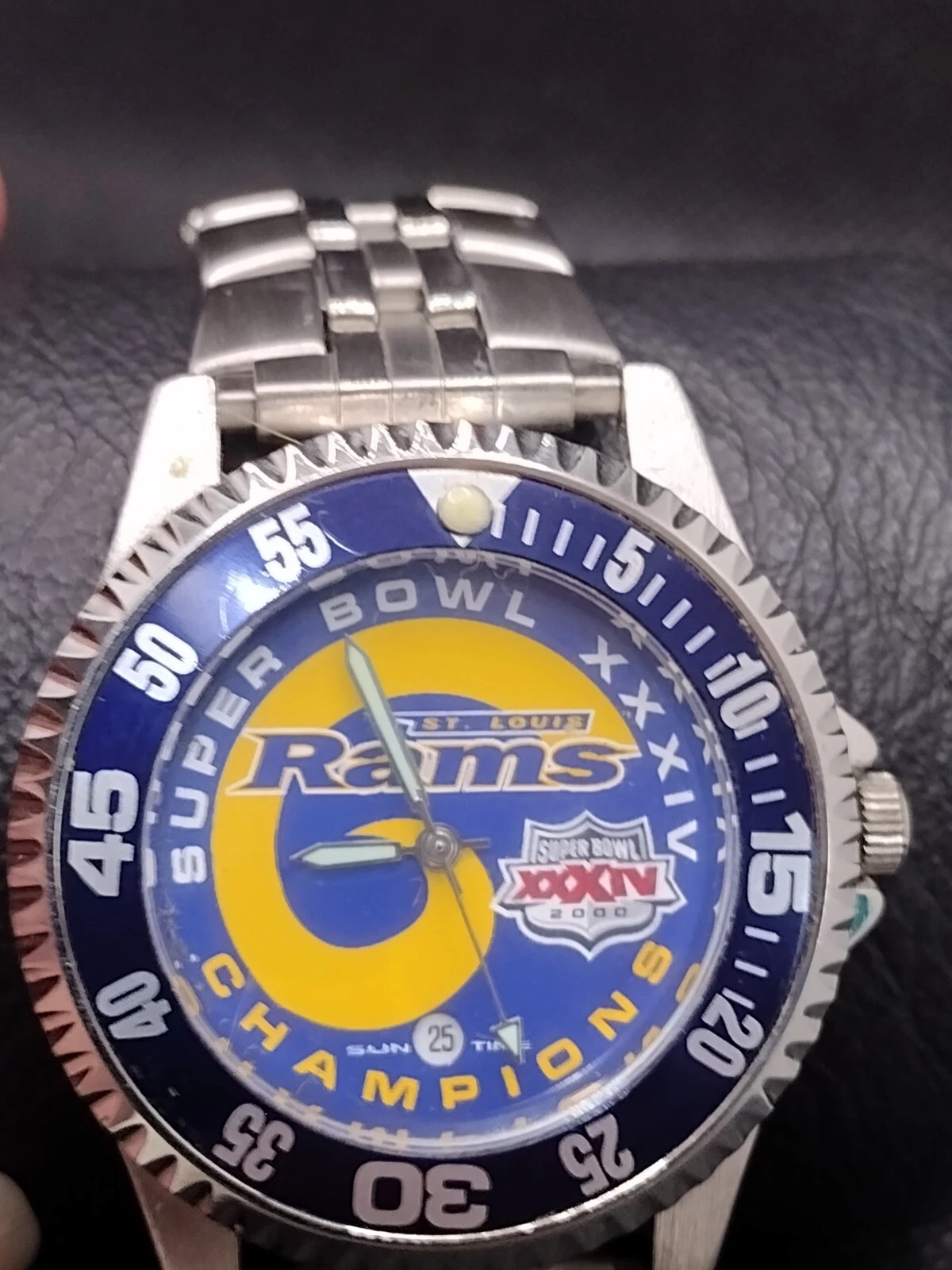 Mens Sun Time NFLP Super Bowl XXXIV 34 Champions St Louis Rams Analog Watch F9