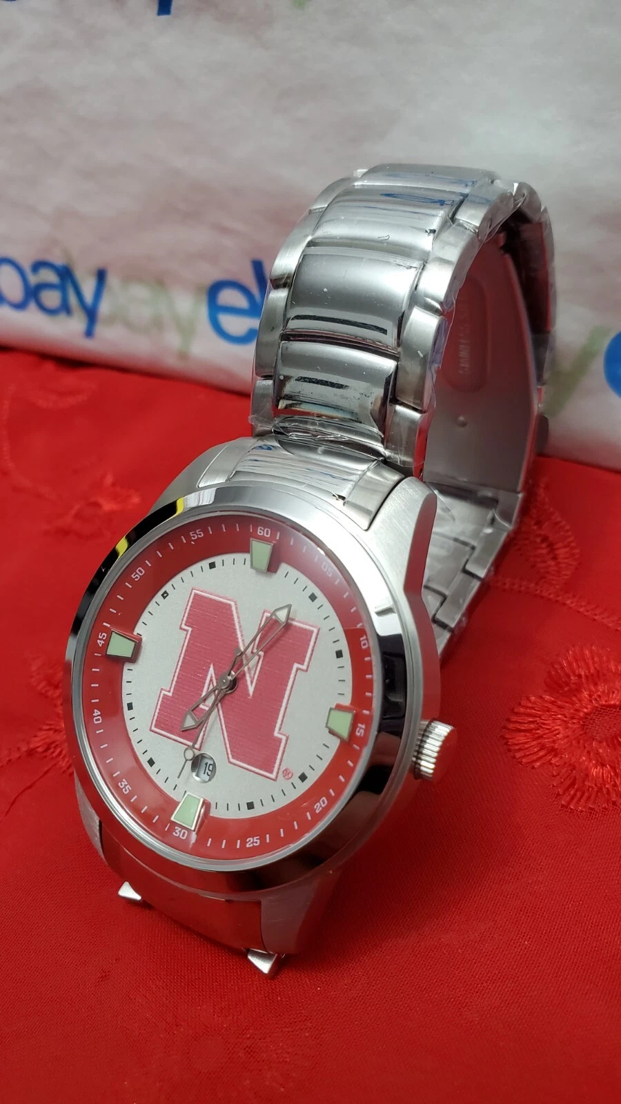 SunTime Men's Collegiate Titan Stainless Steel Watch - Nebraska Cornhuskers