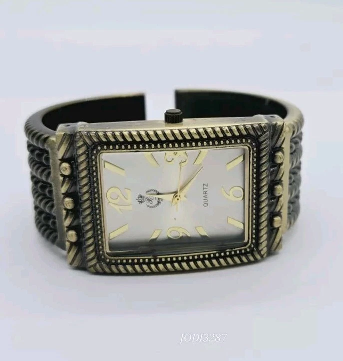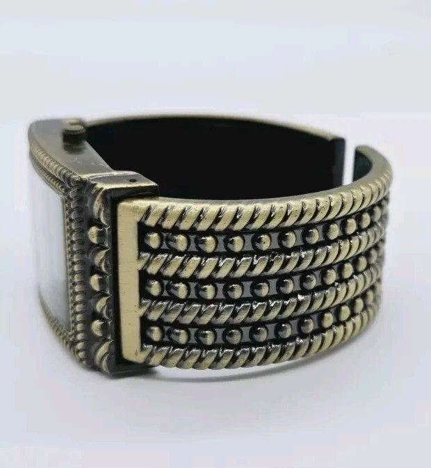 Premier Designs Watch Women Gold Tone Hinged Open Cuff New Battery Bracelet Band