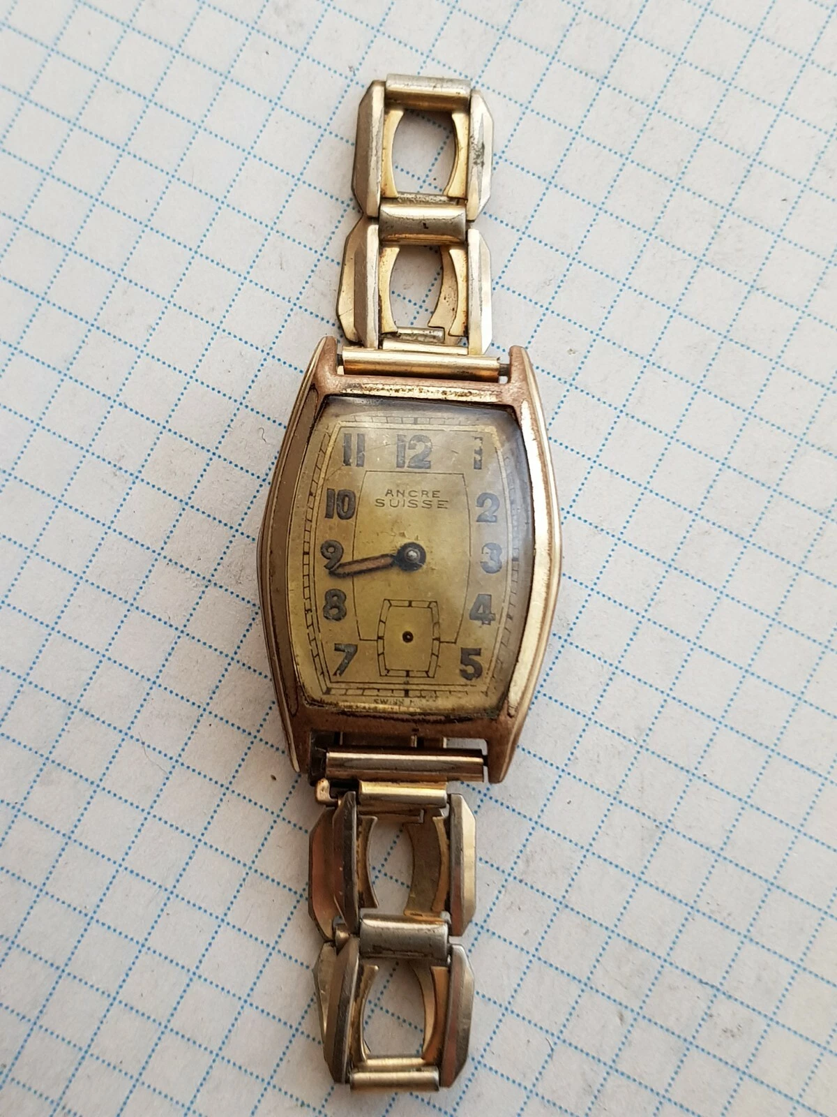 Vintage Old Watch Ancre SUISSE SWISS MILLITARI WATCH Gold Plated Case Spare Pats