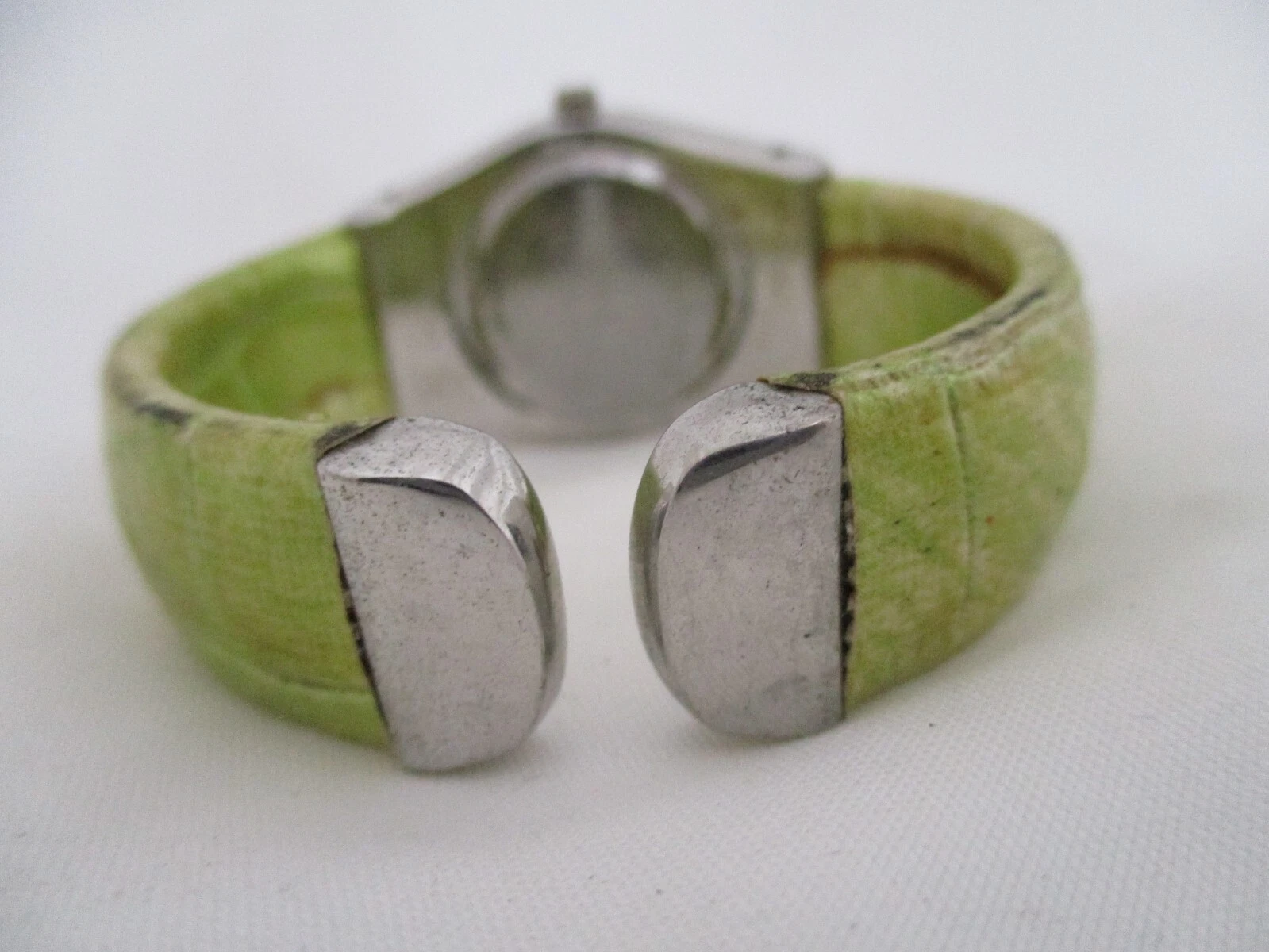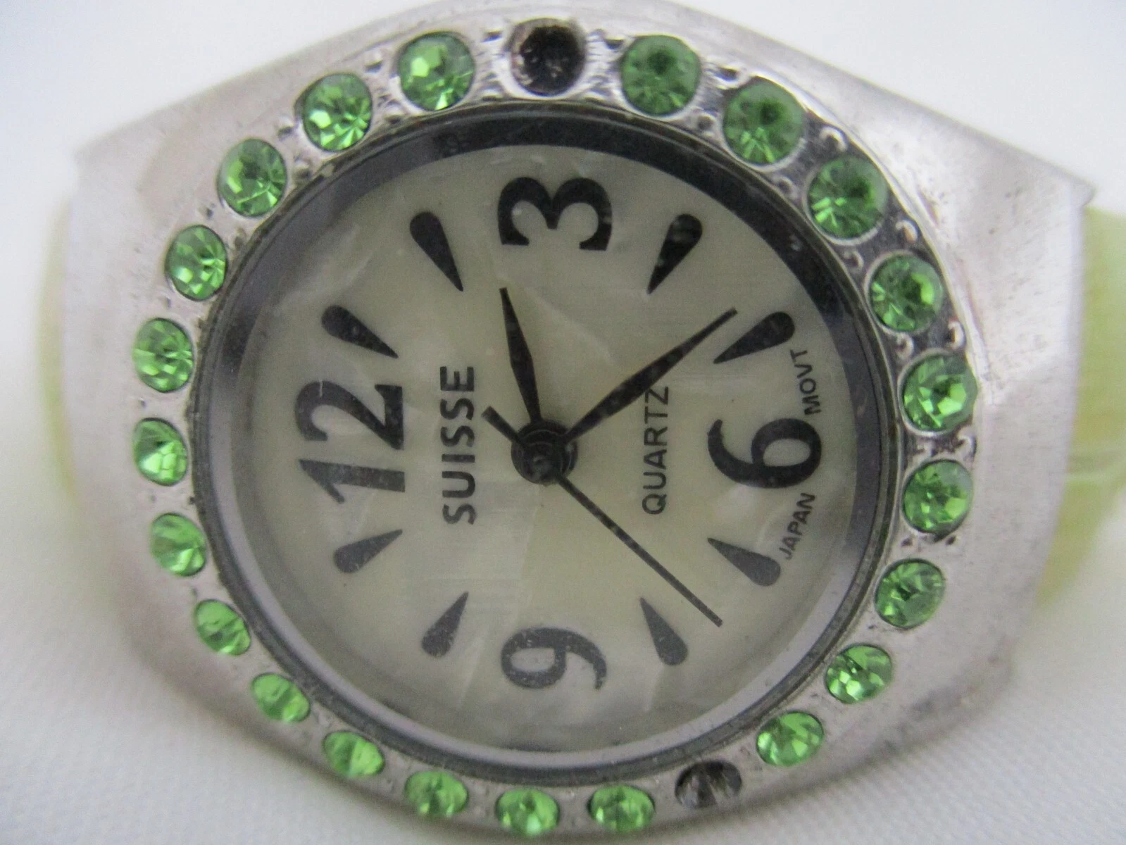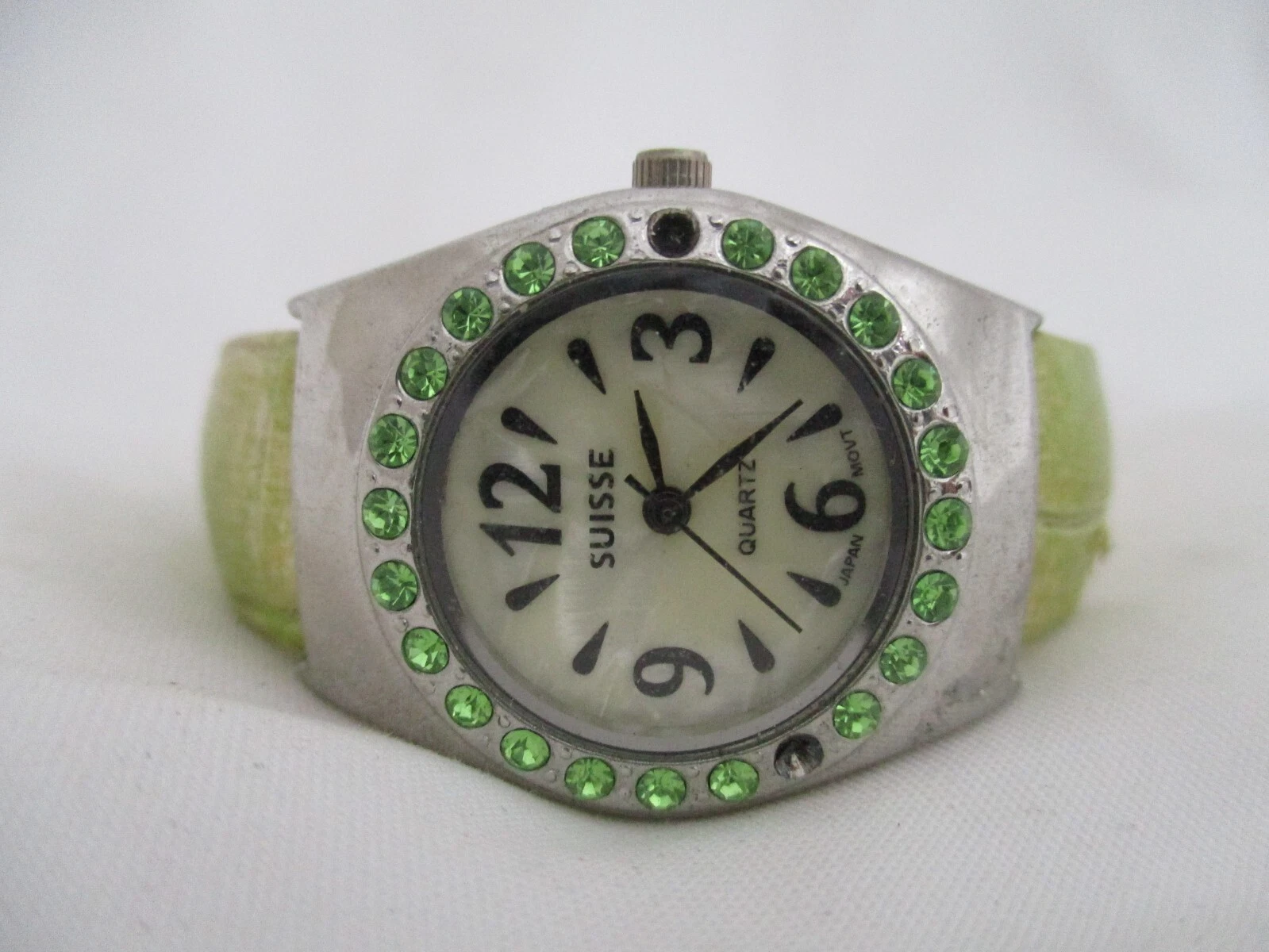 Suisse Analog Wristwatch Green Cuff Band Round Face Rhinestones