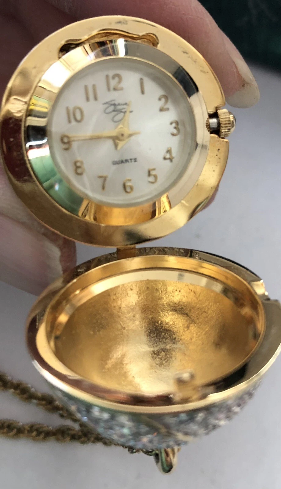 Vintage Suzanne Somers Dome Jeweled Watch For Necklace In Box