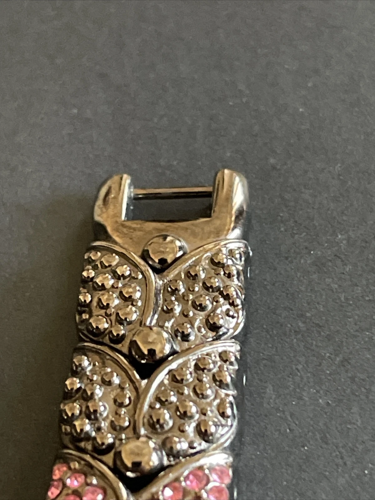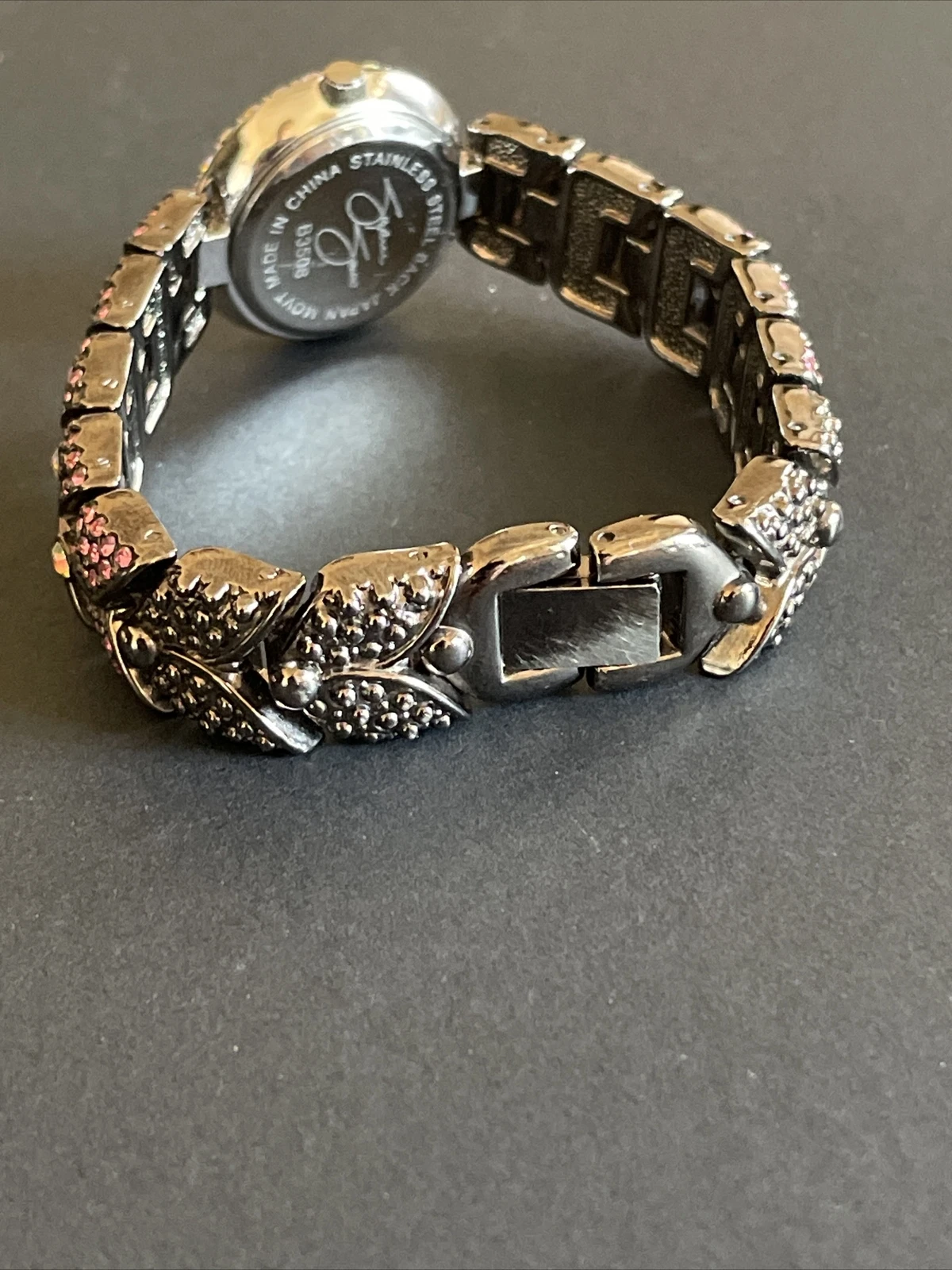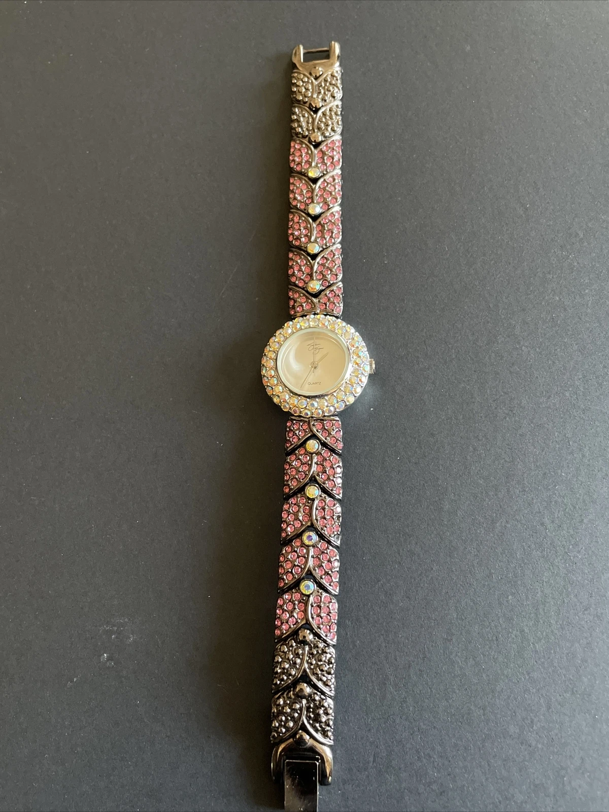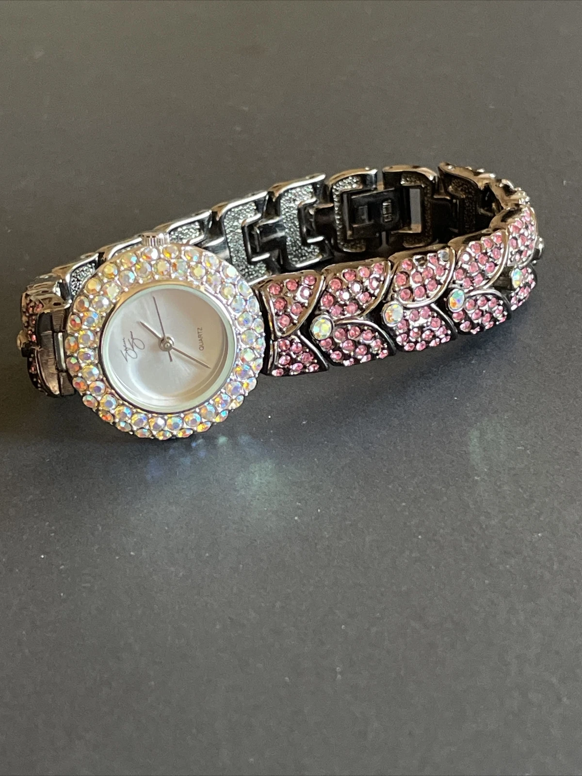 Suzanne Somers Crystal Watch Round Aurora Borealis Rhinestone Bezel Floral Pink