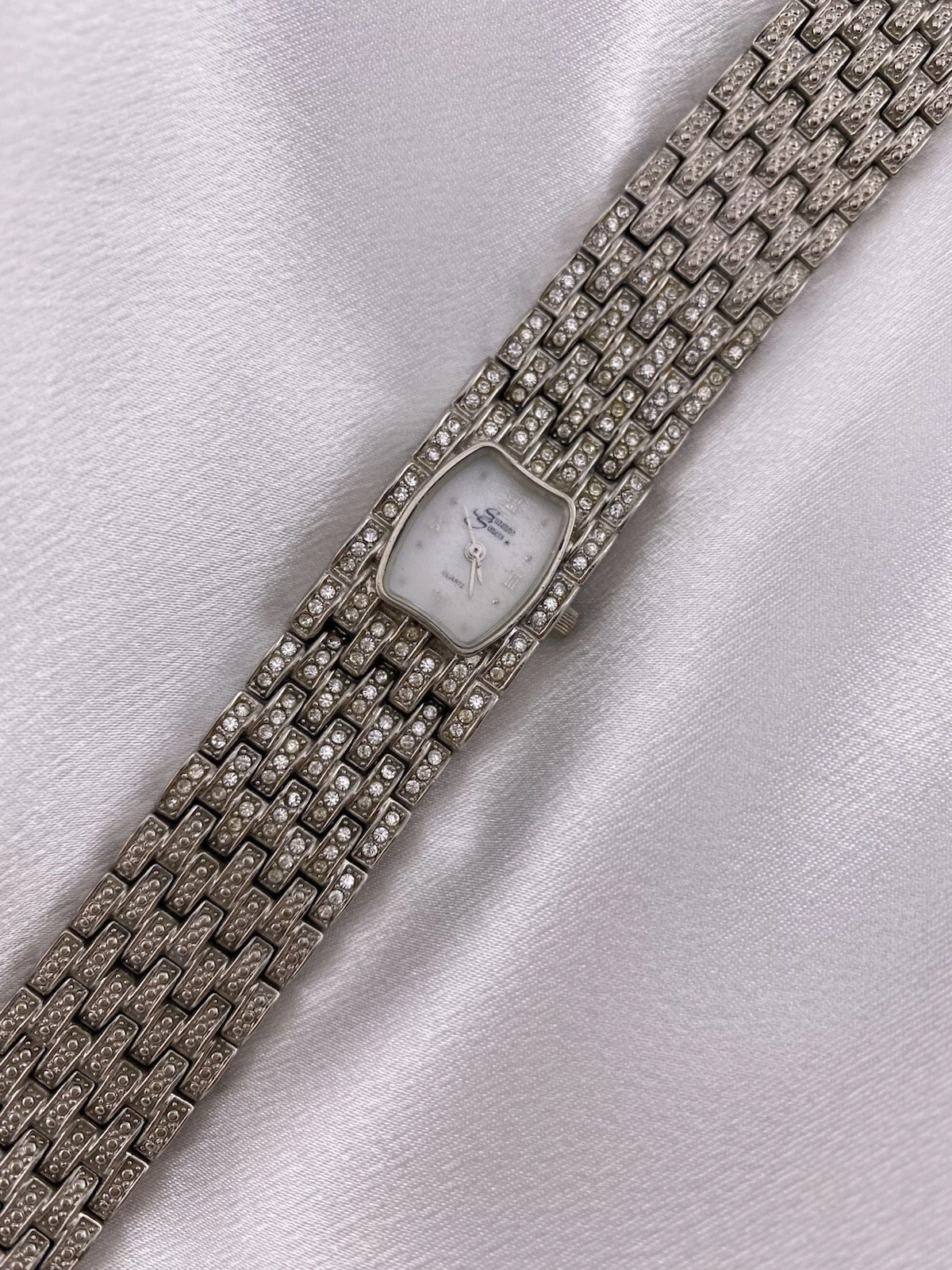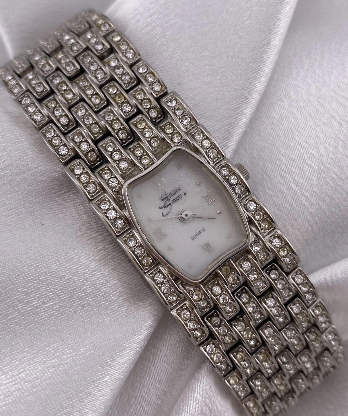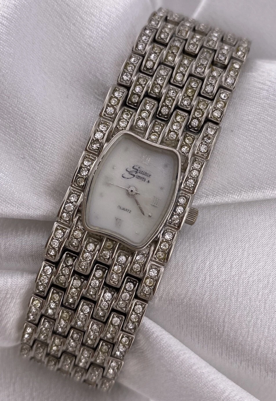 Vintage Suzanne Somers Crystal Embellished Wide Bracelet Watch Cocktail Classy