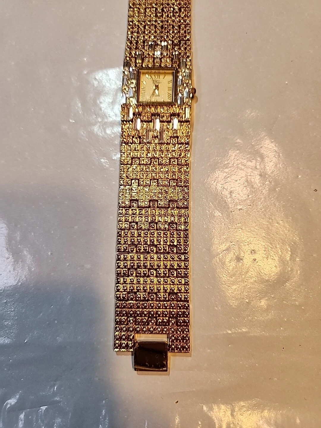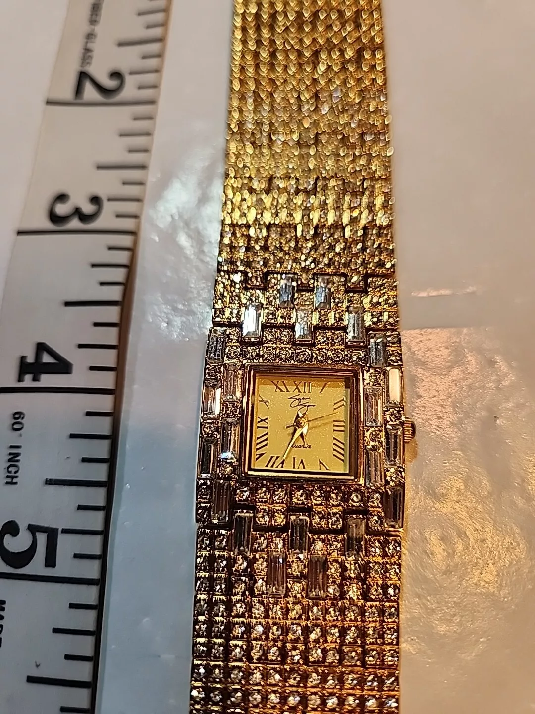 Suzanne Somers Gold Tone Ladies Quartz Watch bracelet Rhinestone B1302 New Batt
