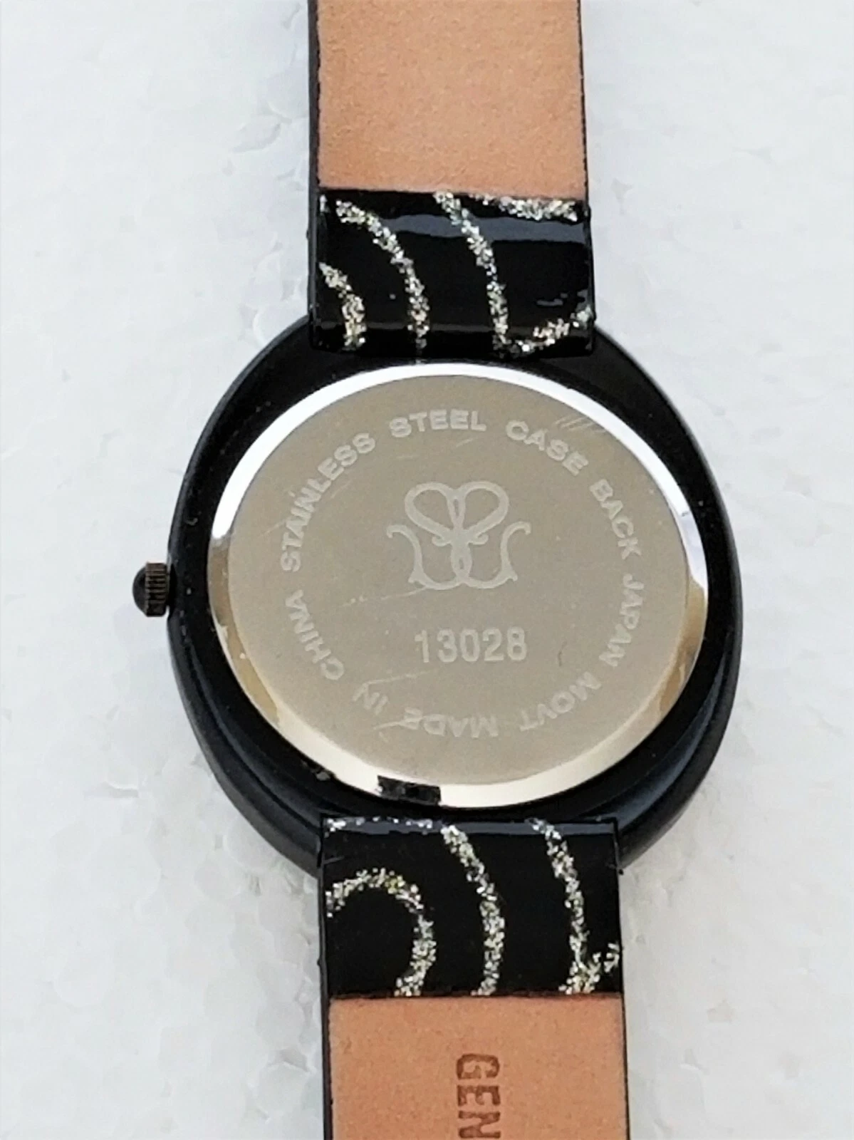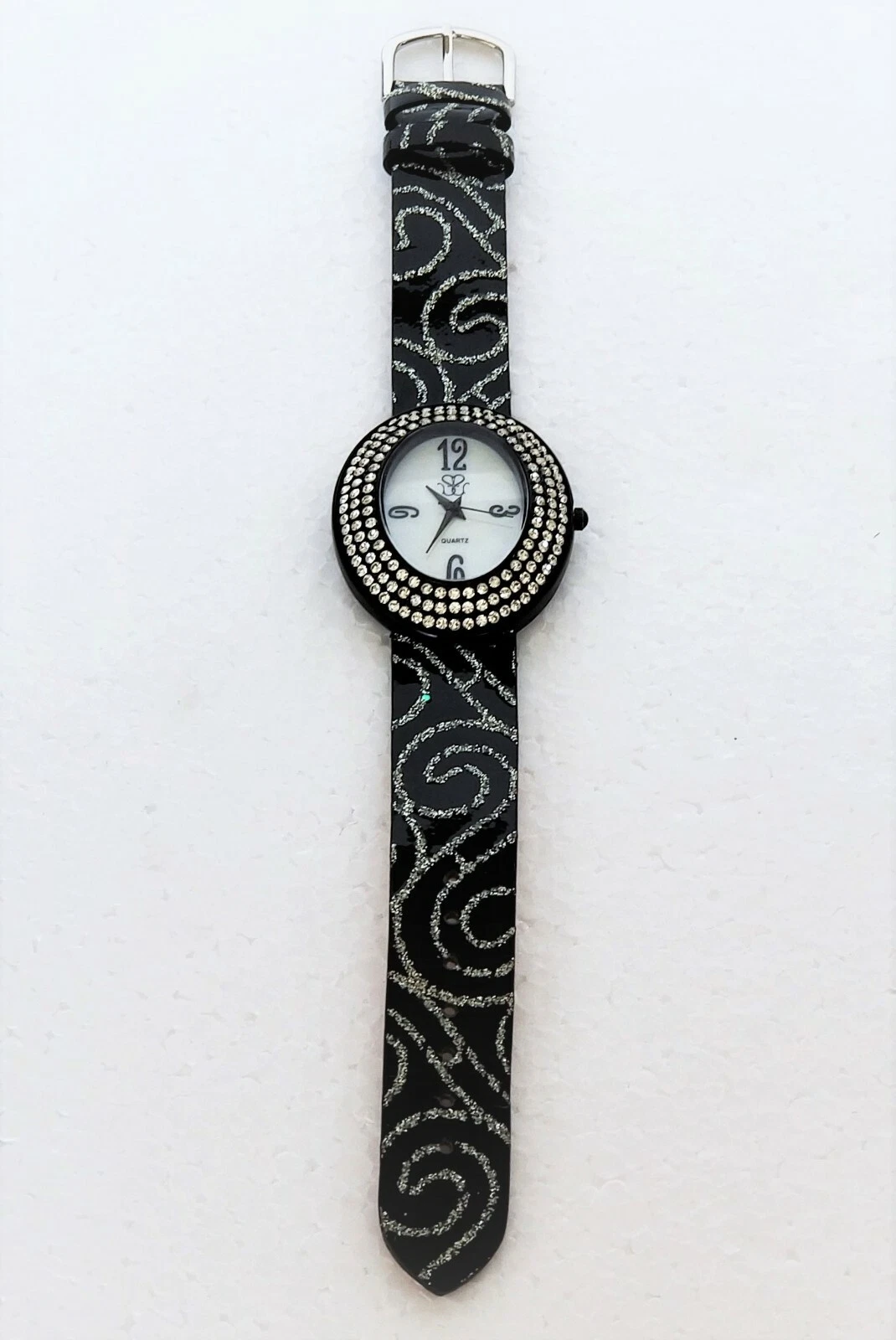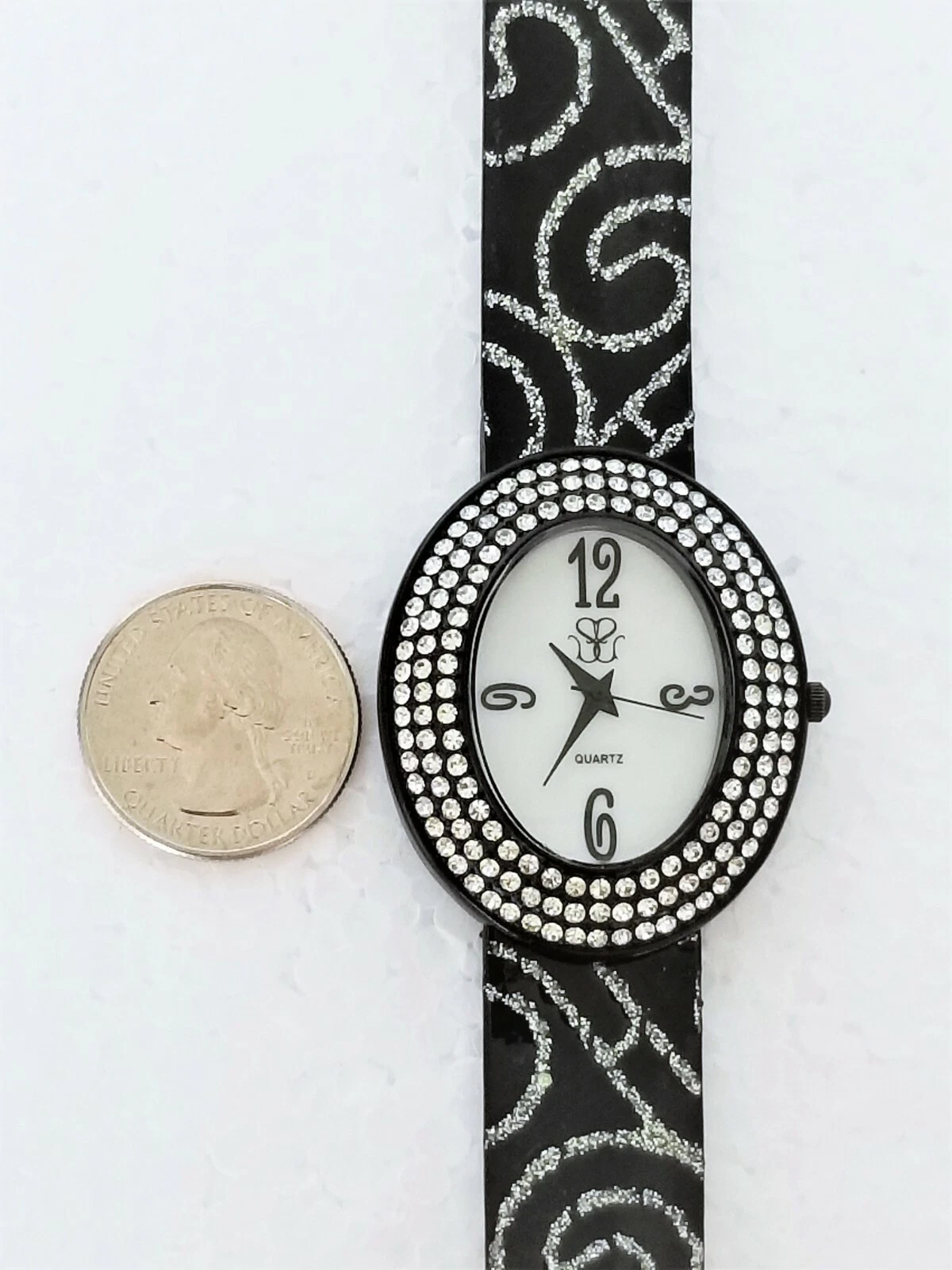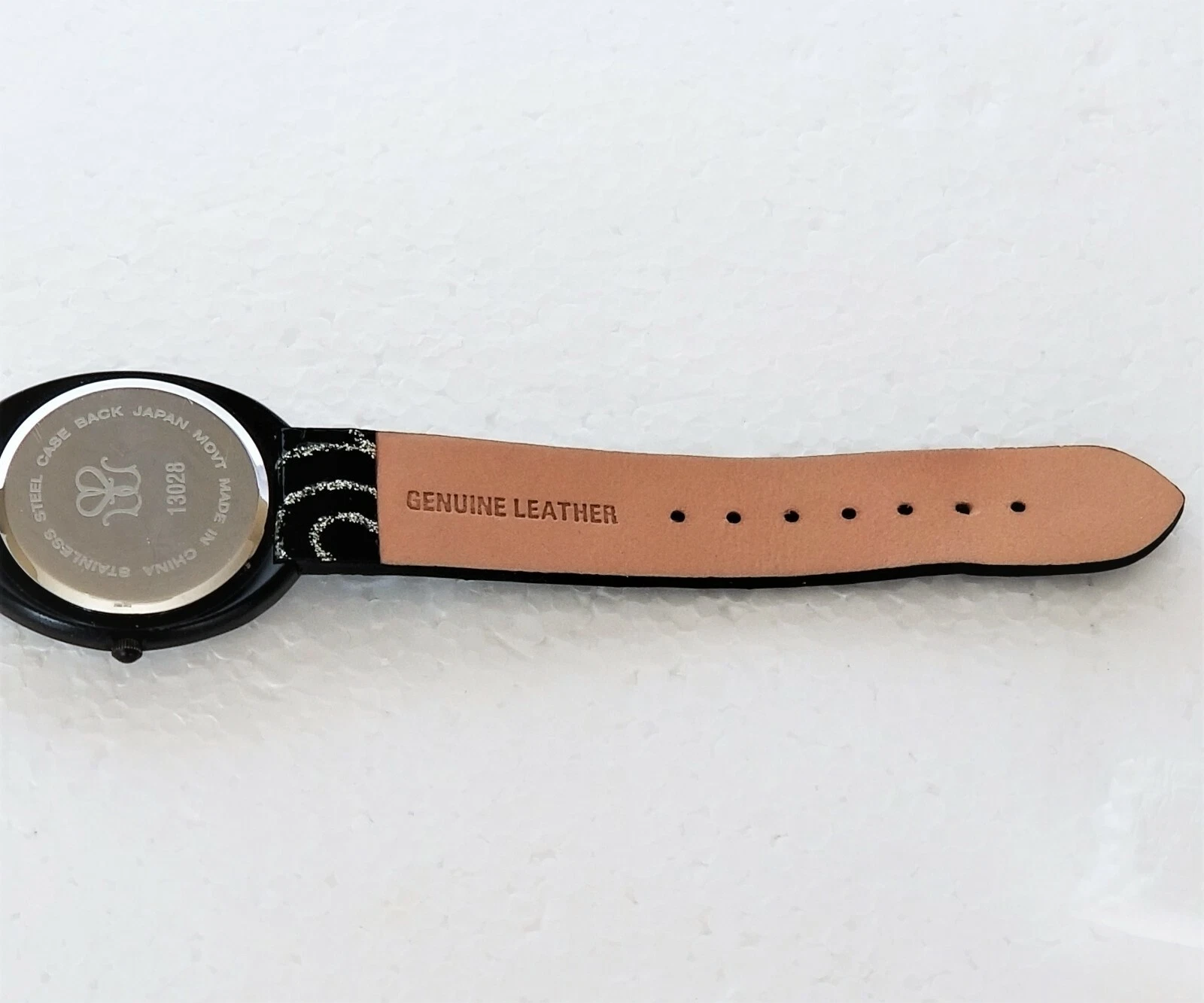 Suzanne Somers Watch Wristwatch Womens Black Leather Silver Accents Crystals