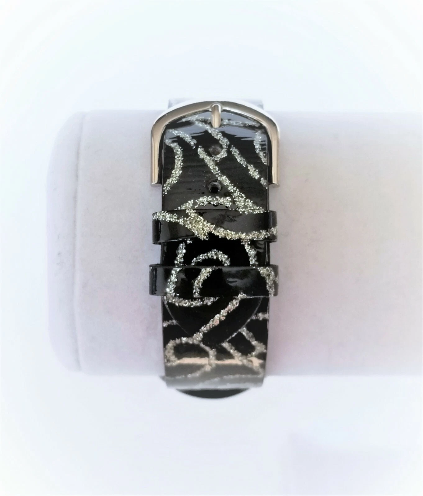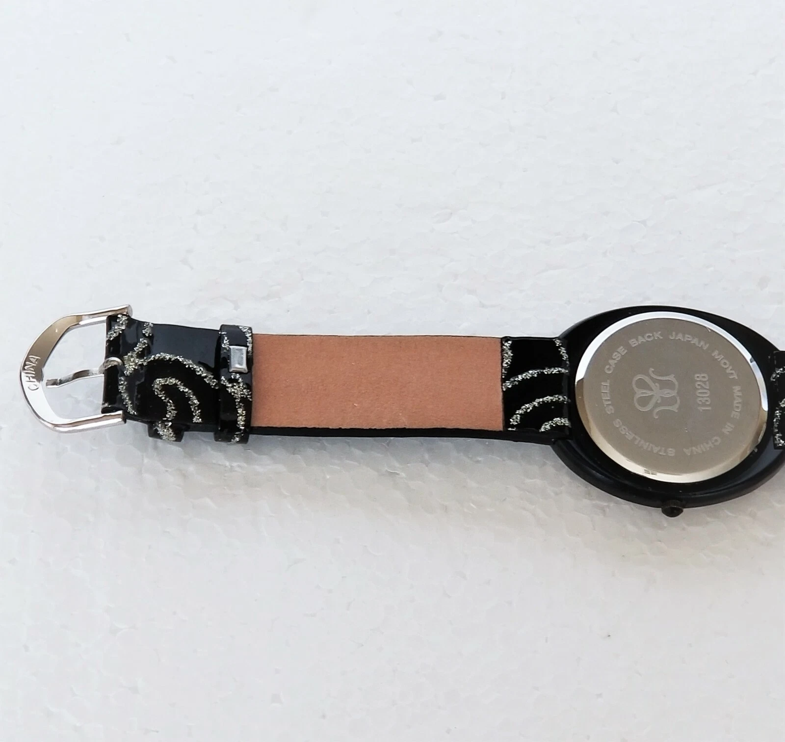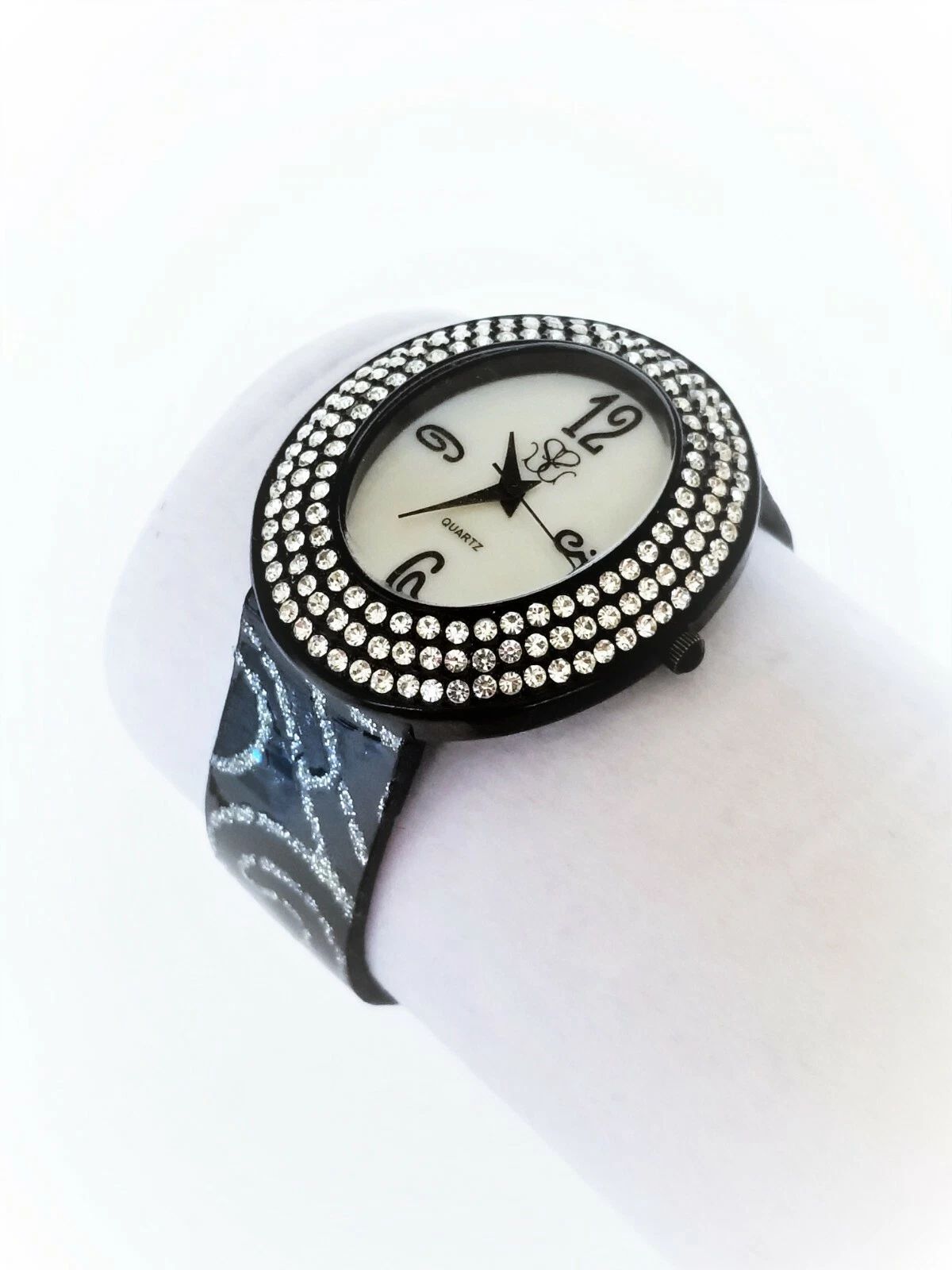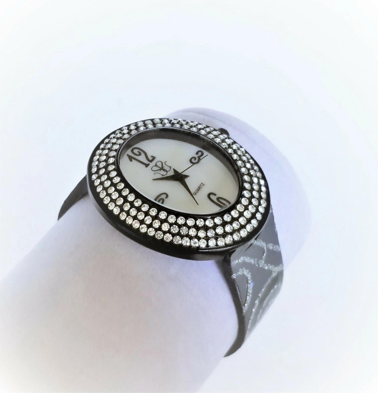 Suzanne Somers Watch Wristwatch Womens Black Leather Silver Accents Crystals